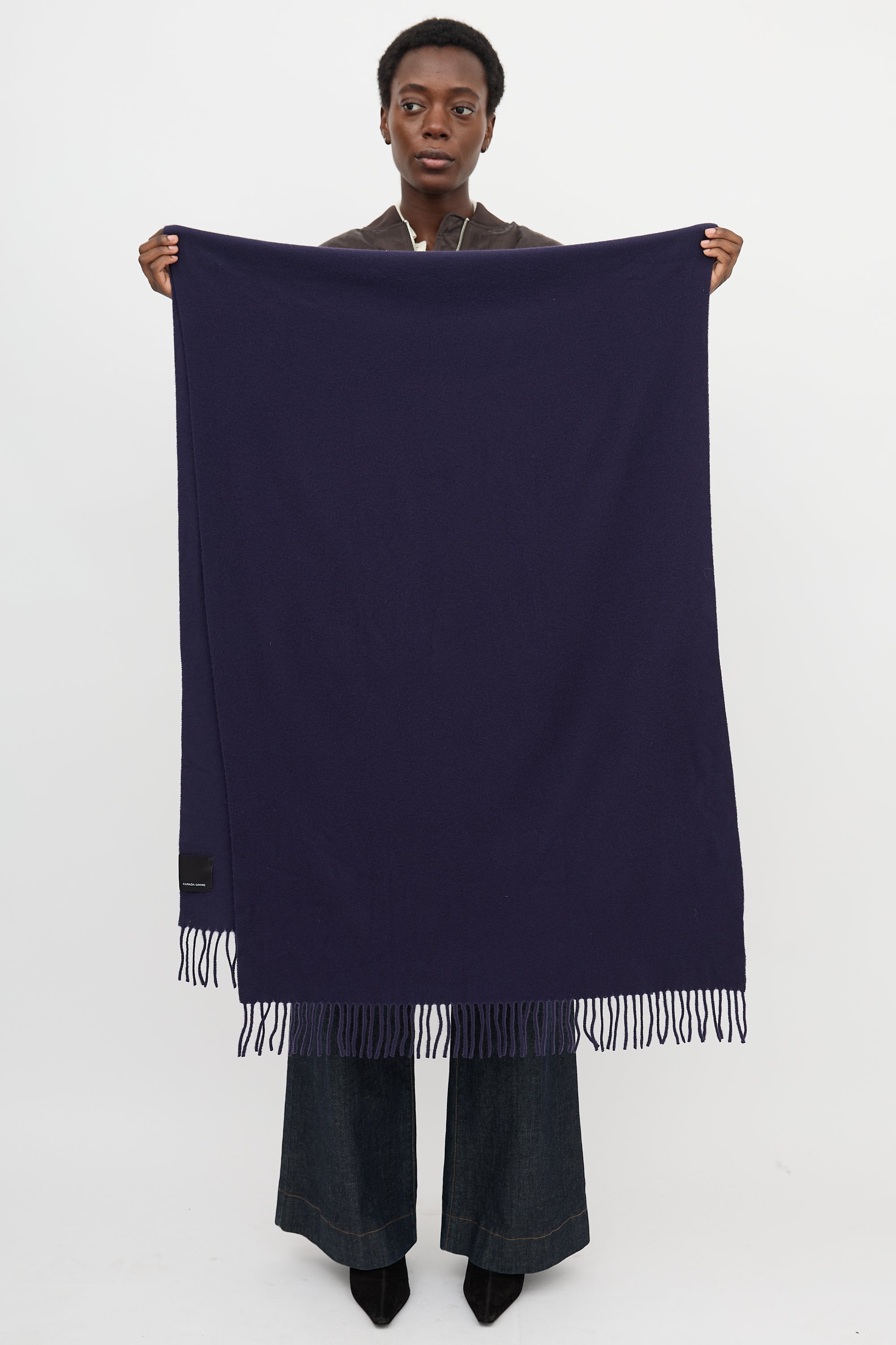 Pre-owned Canada Goose navy wool scarf featuring logo tab at bottom corner and fringe trim.
