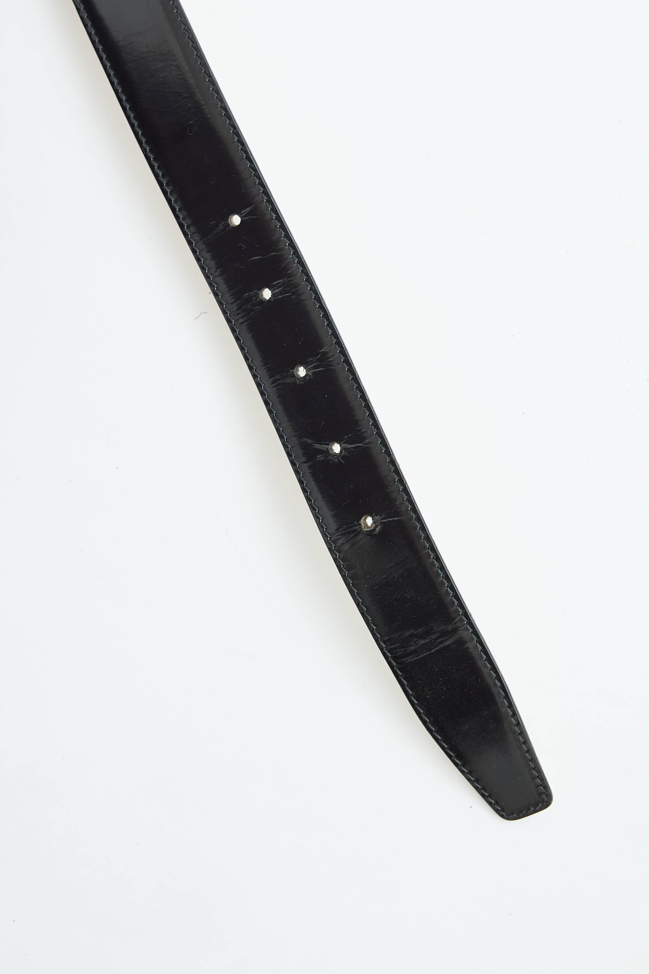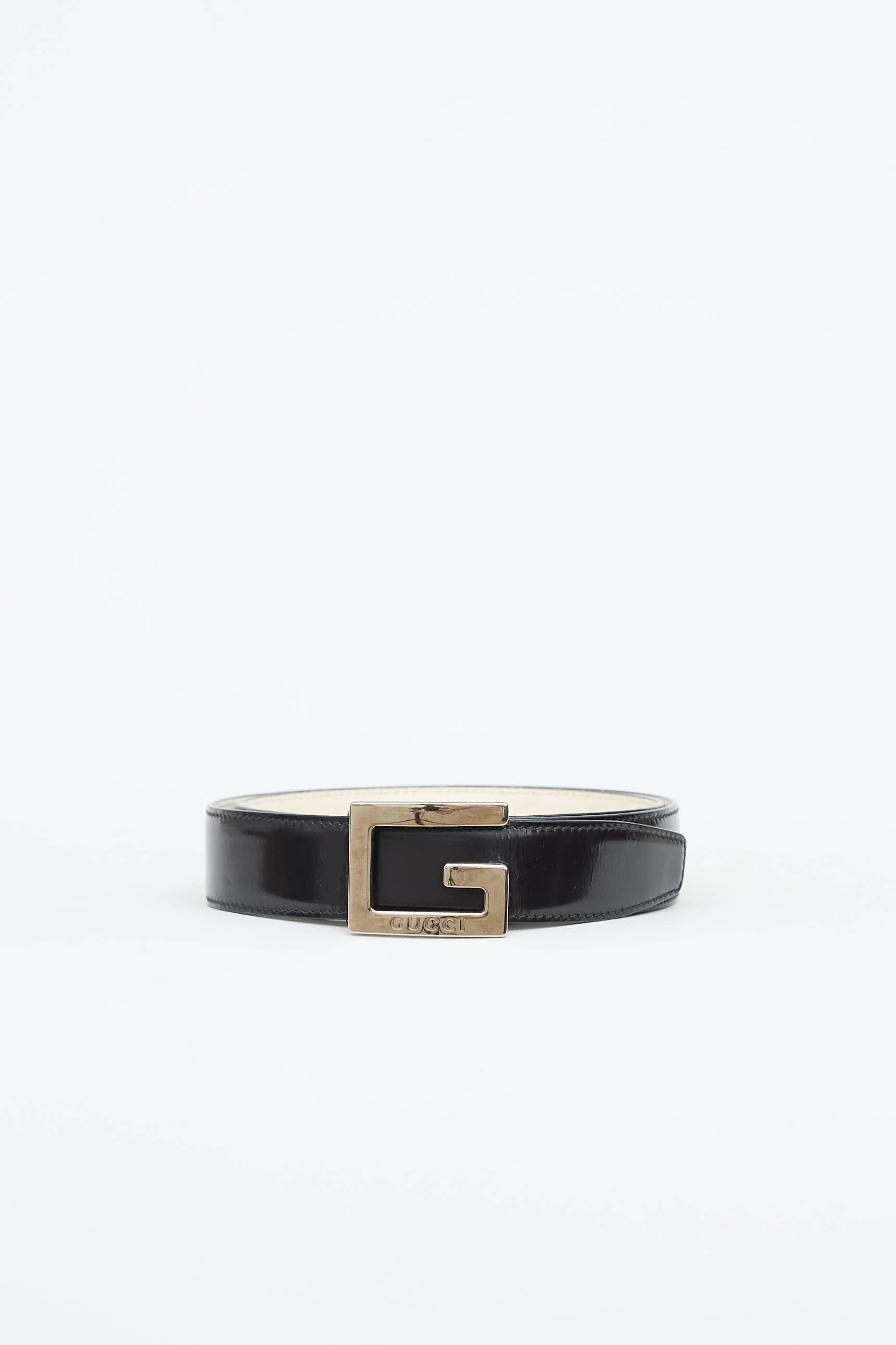 Pre-owned Gucci leather belt featuring silver tone G logo at front and push peg closure.