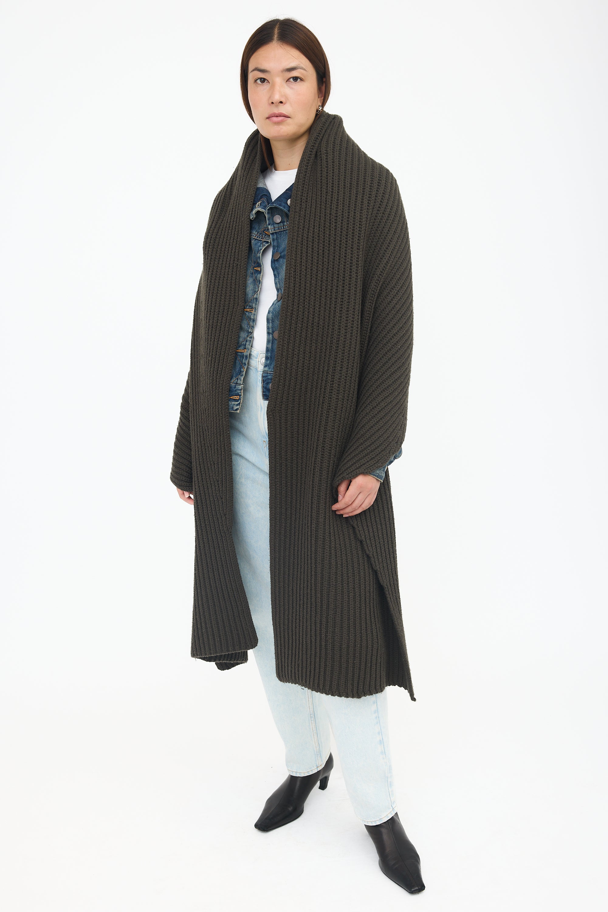 Pre-owned Haider Ackermann green wool oversized shawl featuring one scallopped edge and diagonal ribbing.