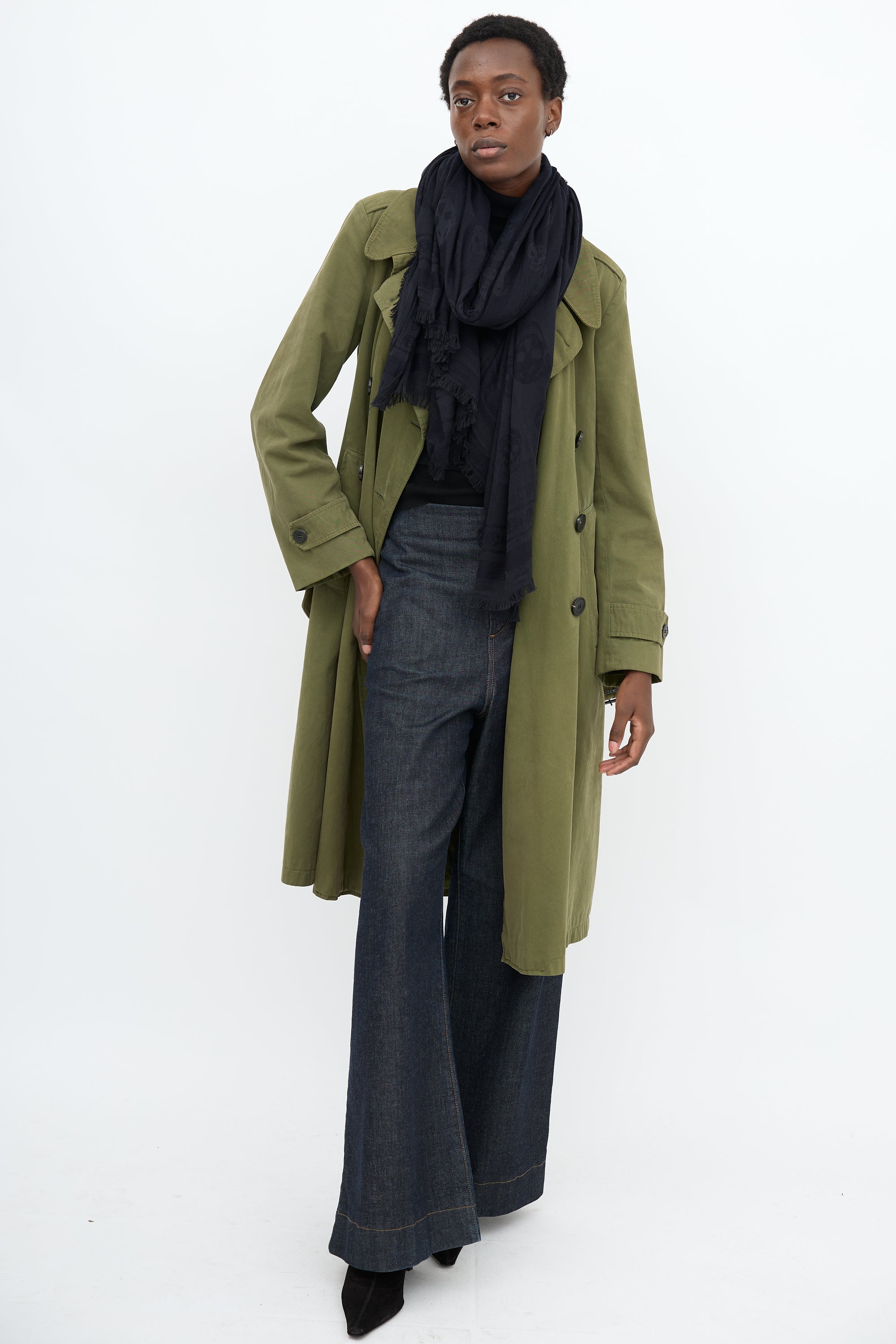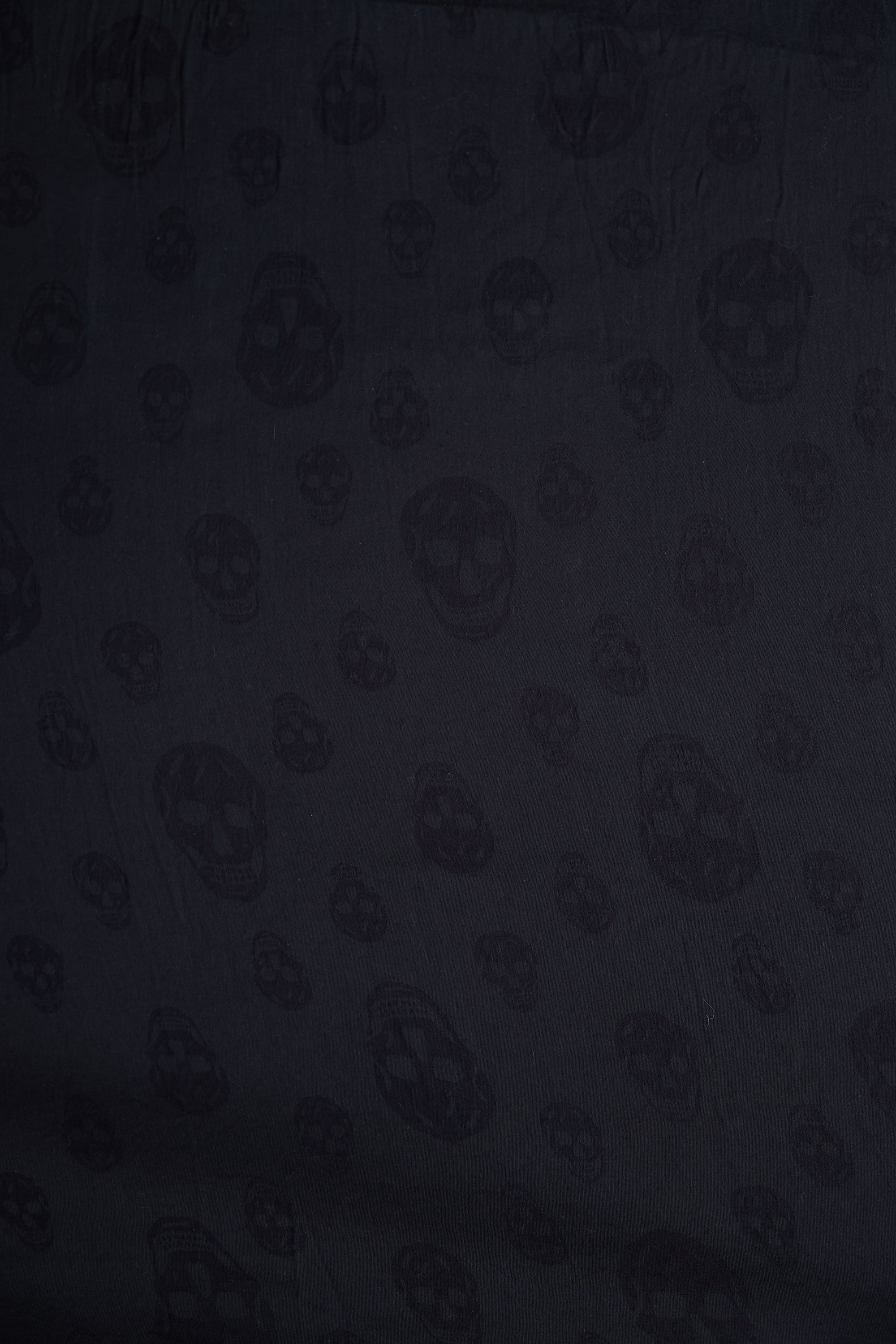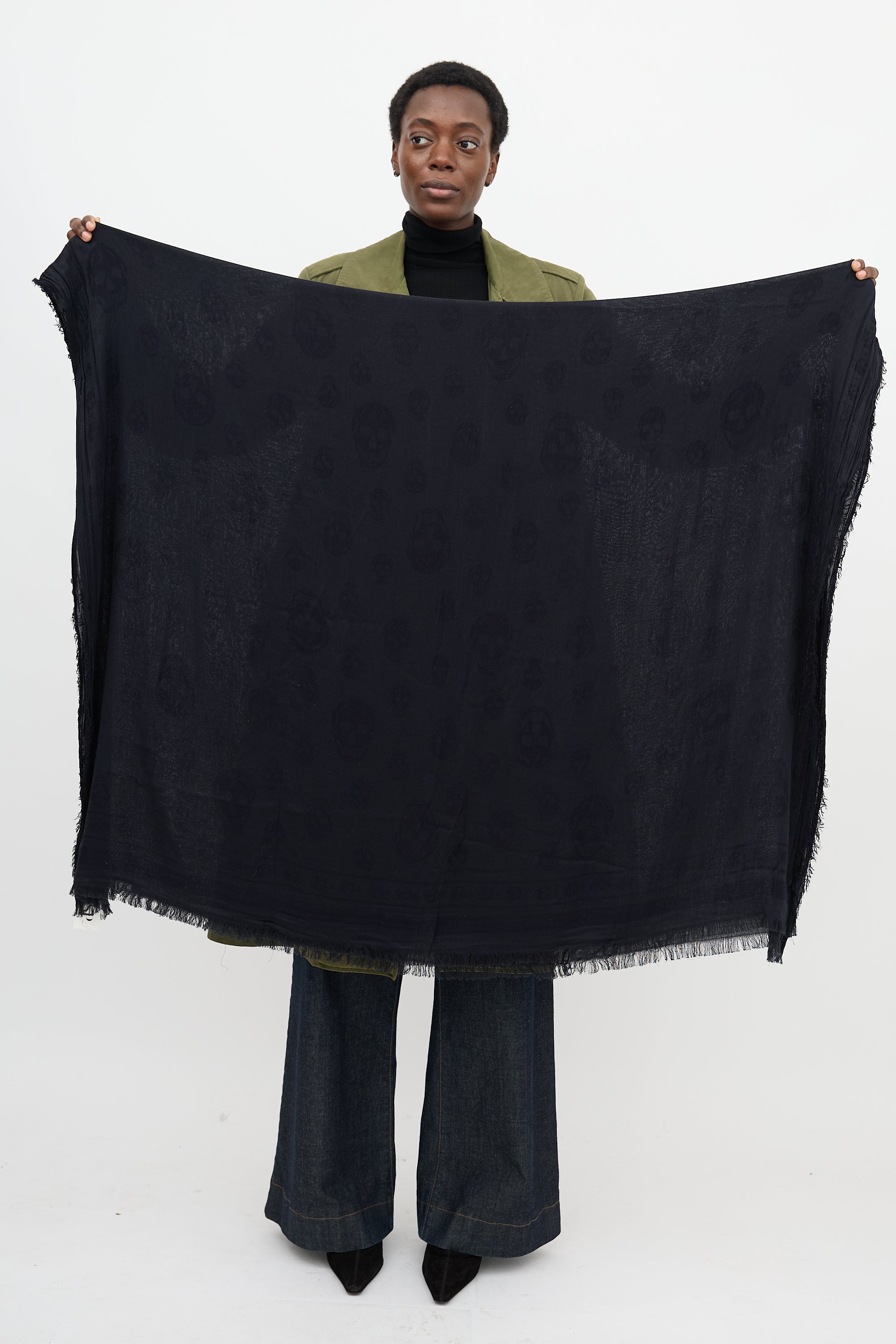 Pre-owned Alexander McQueen black scarf featuring a signature tonal skull pattern and fringe trim.