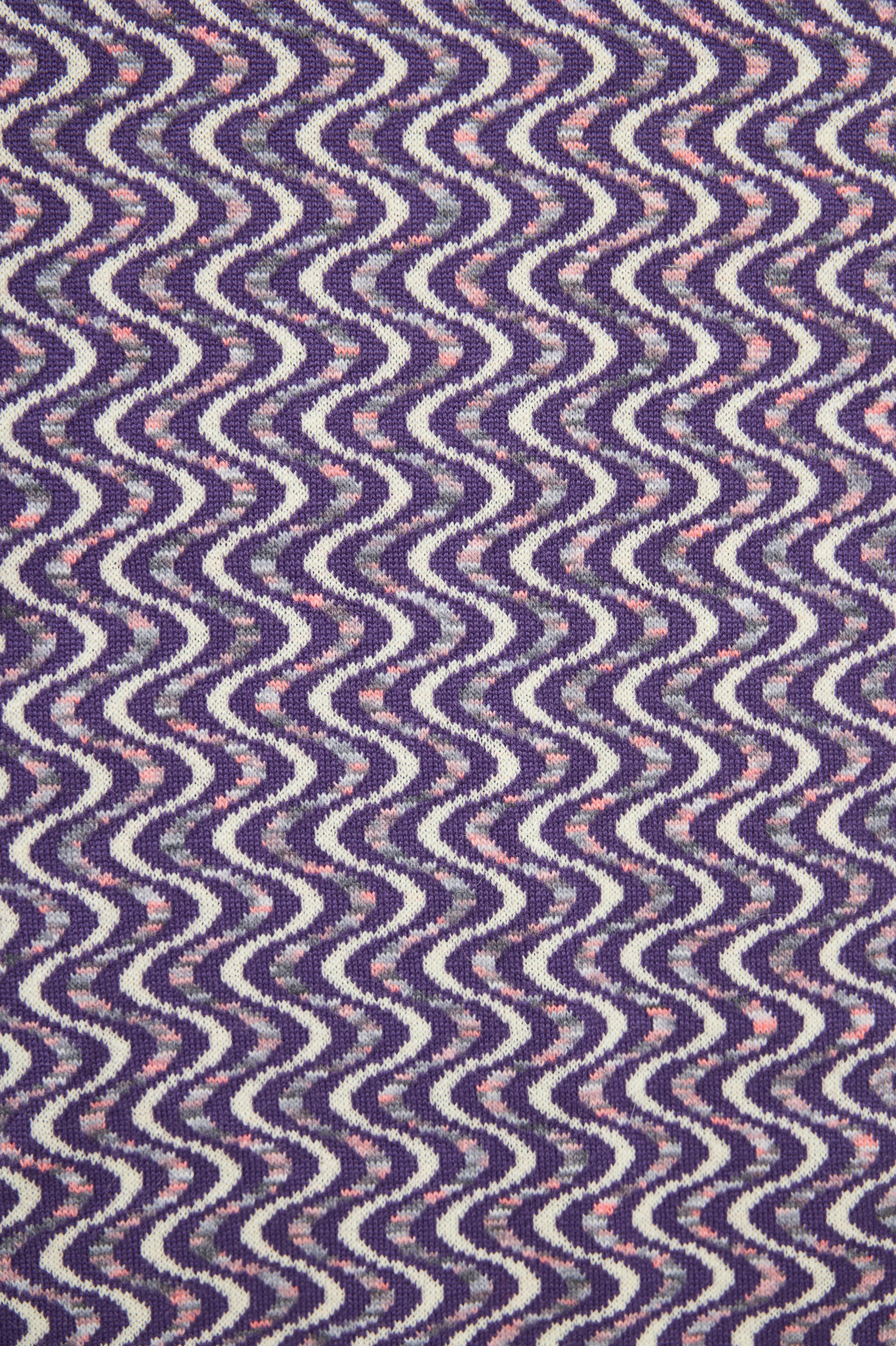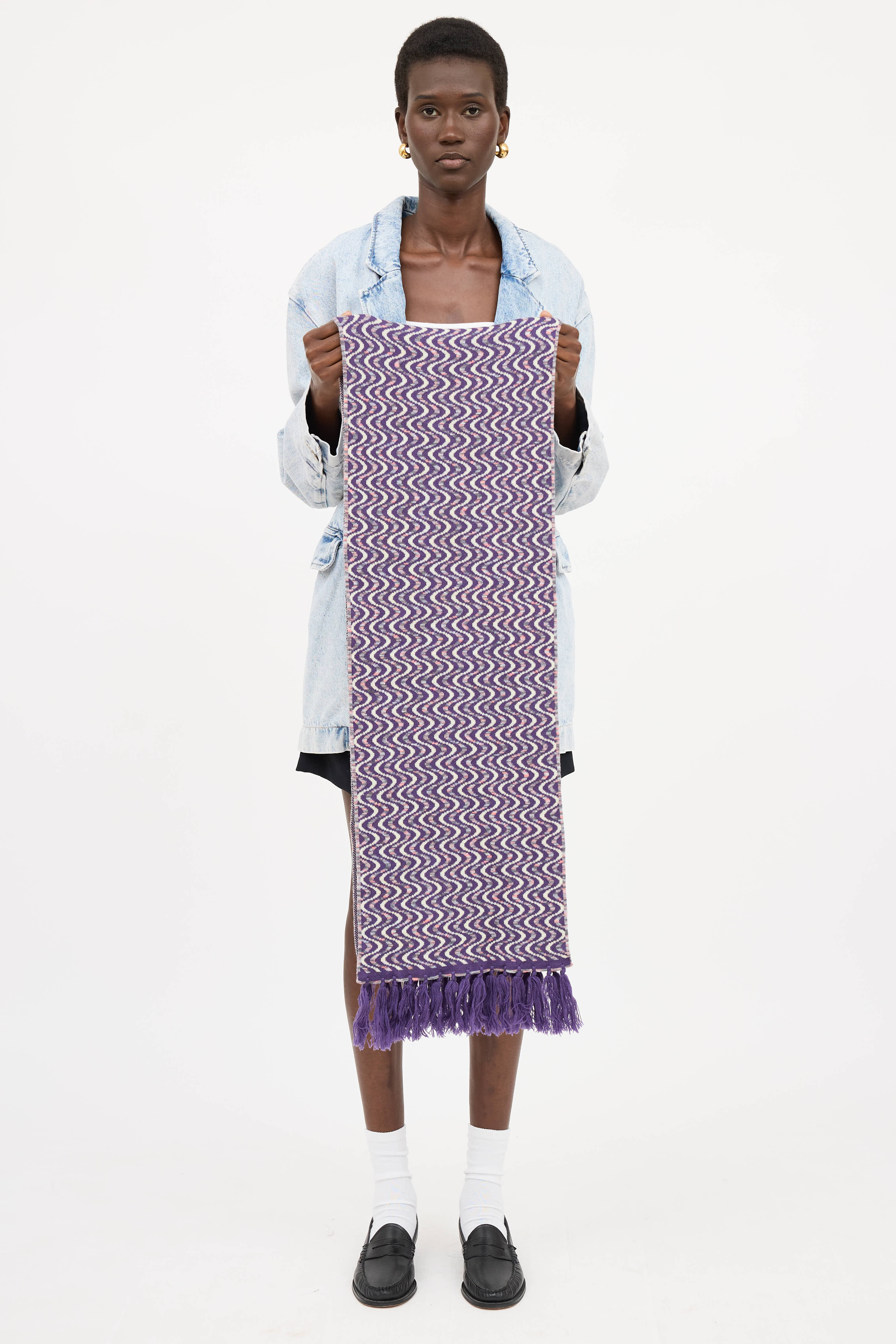 Pre-owned Missoni purple wool scarf featuring a multicolour wavy geometric pattern throughout, and knotted fringe hem.