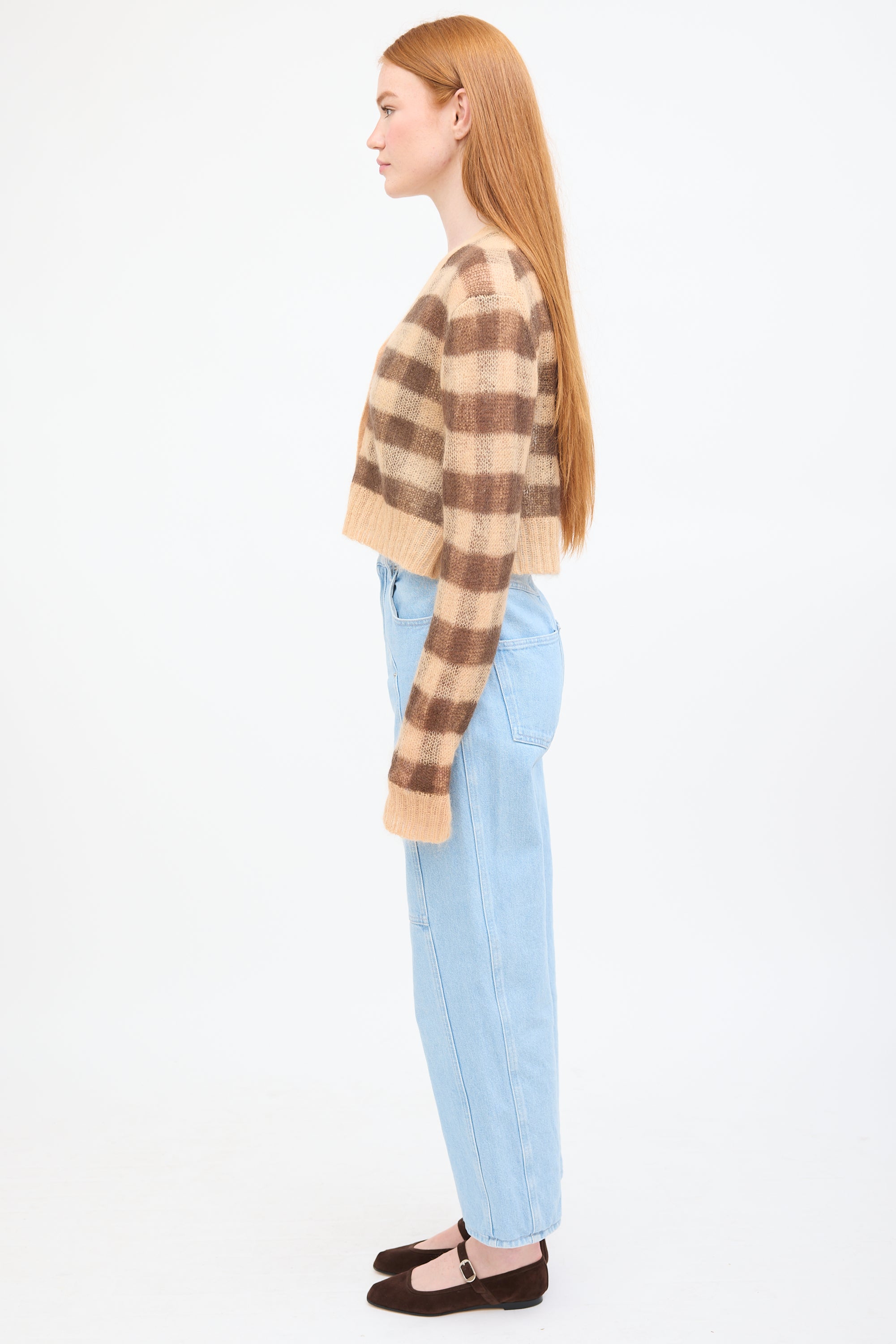 Beige & Brown Mohair Cropped Cardigan Large Size Guide
