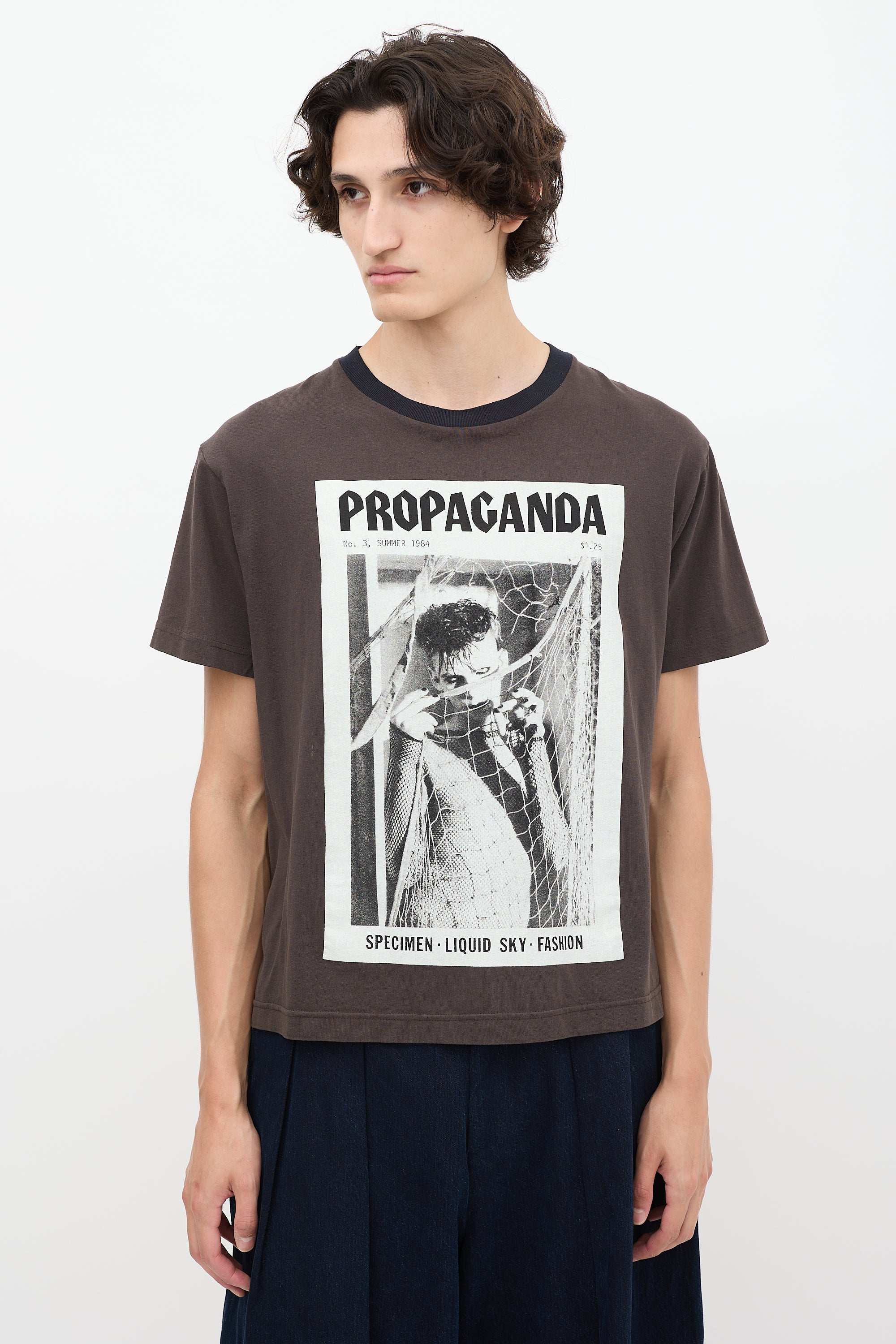 Brown & Multicolour Propaganda Graphic T-Shirt Medium Size Guide