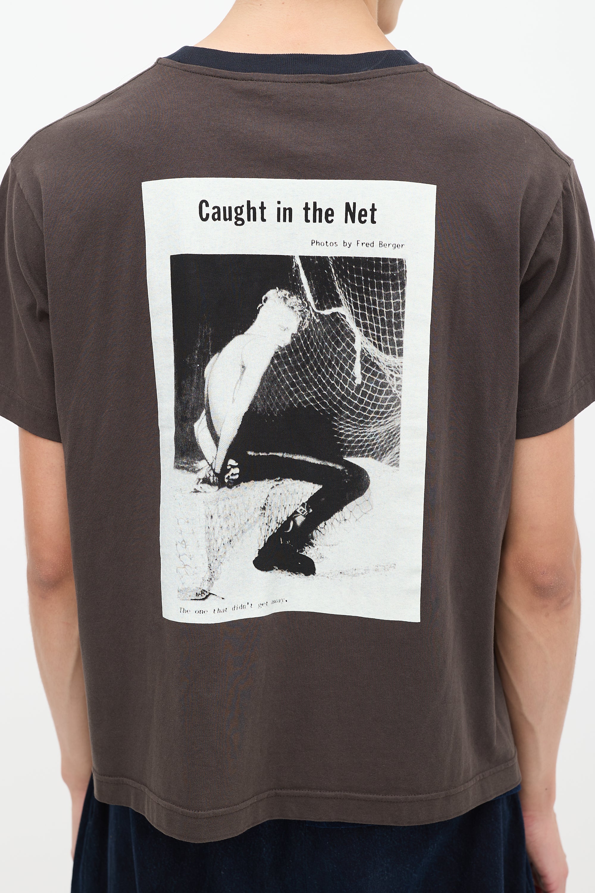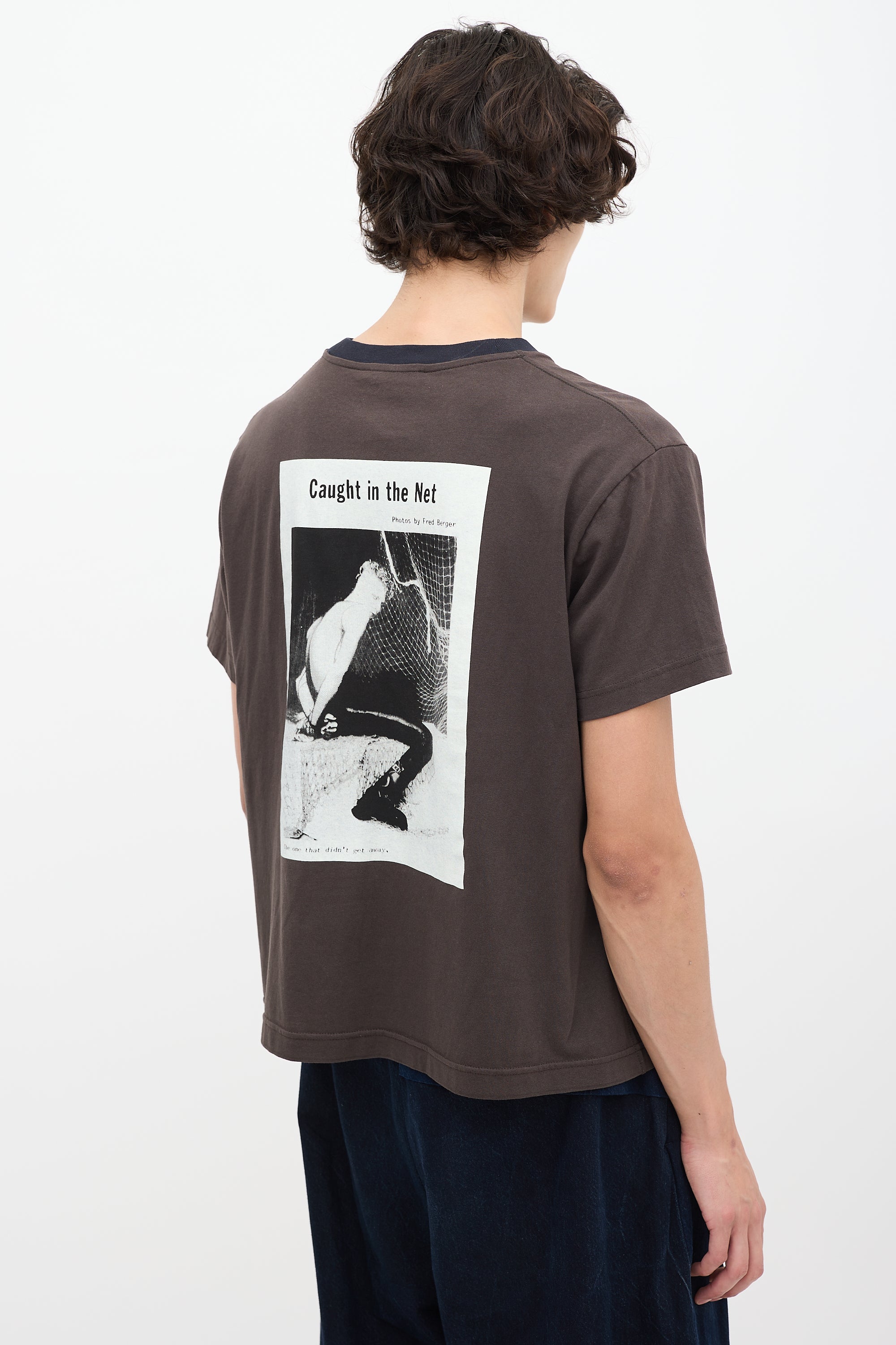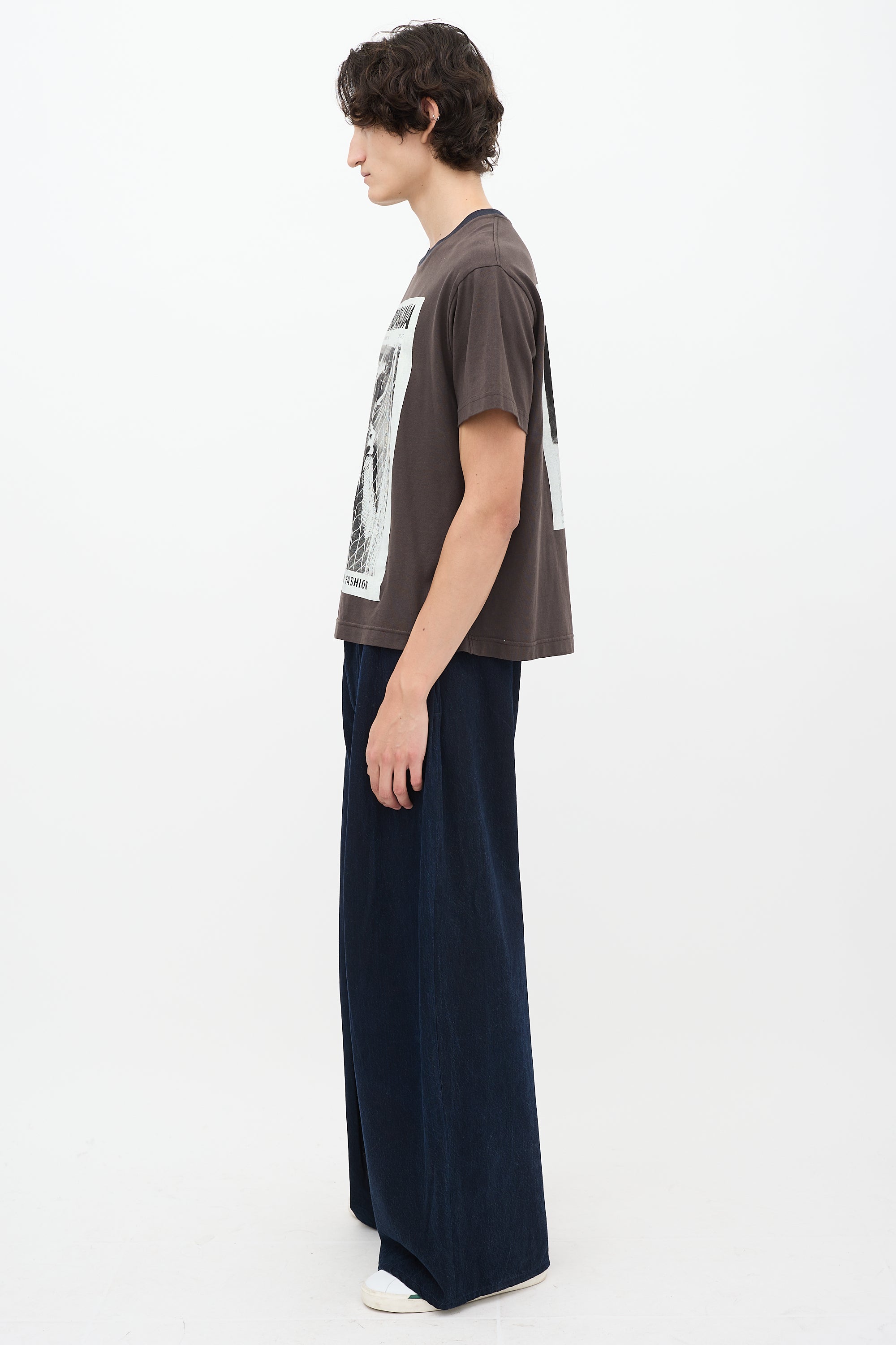 Pre-owned Acne Studios X Propaganda Magazine brown and multicolour T-shirt featuring a contrasting round neckline, monochrome graphic front and back, even hem and short sleeves.