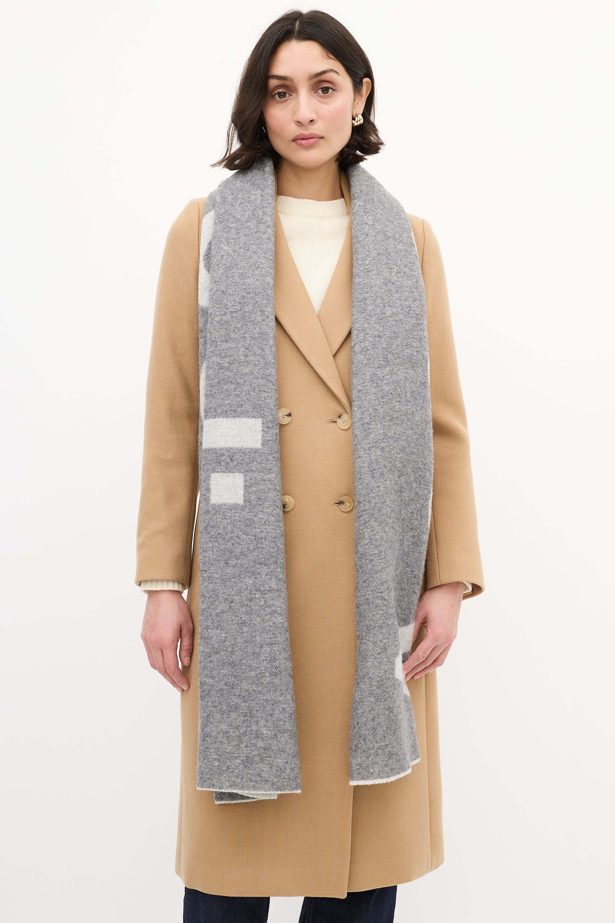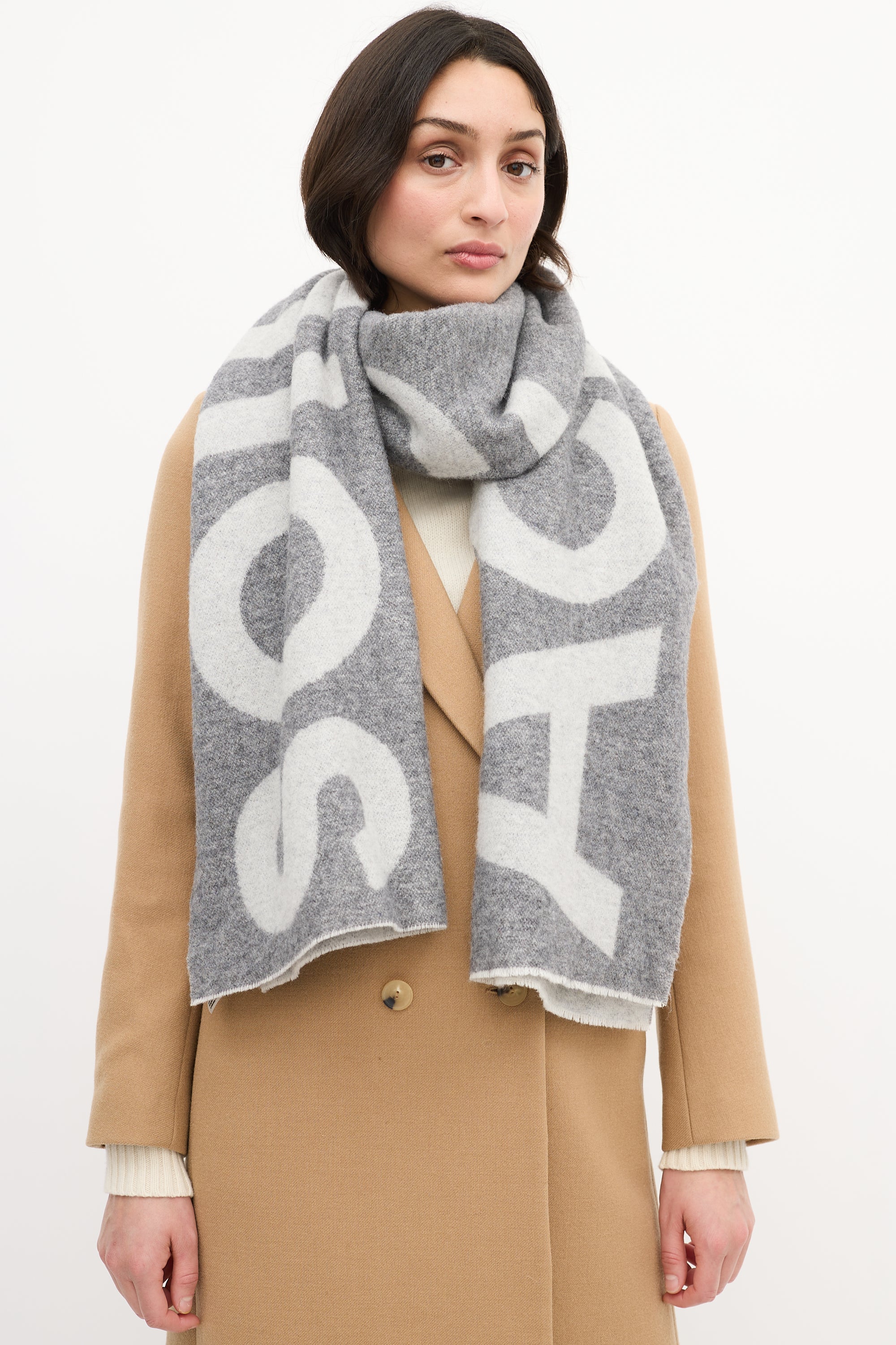 Grey Two Tone Wool Logo Scarf