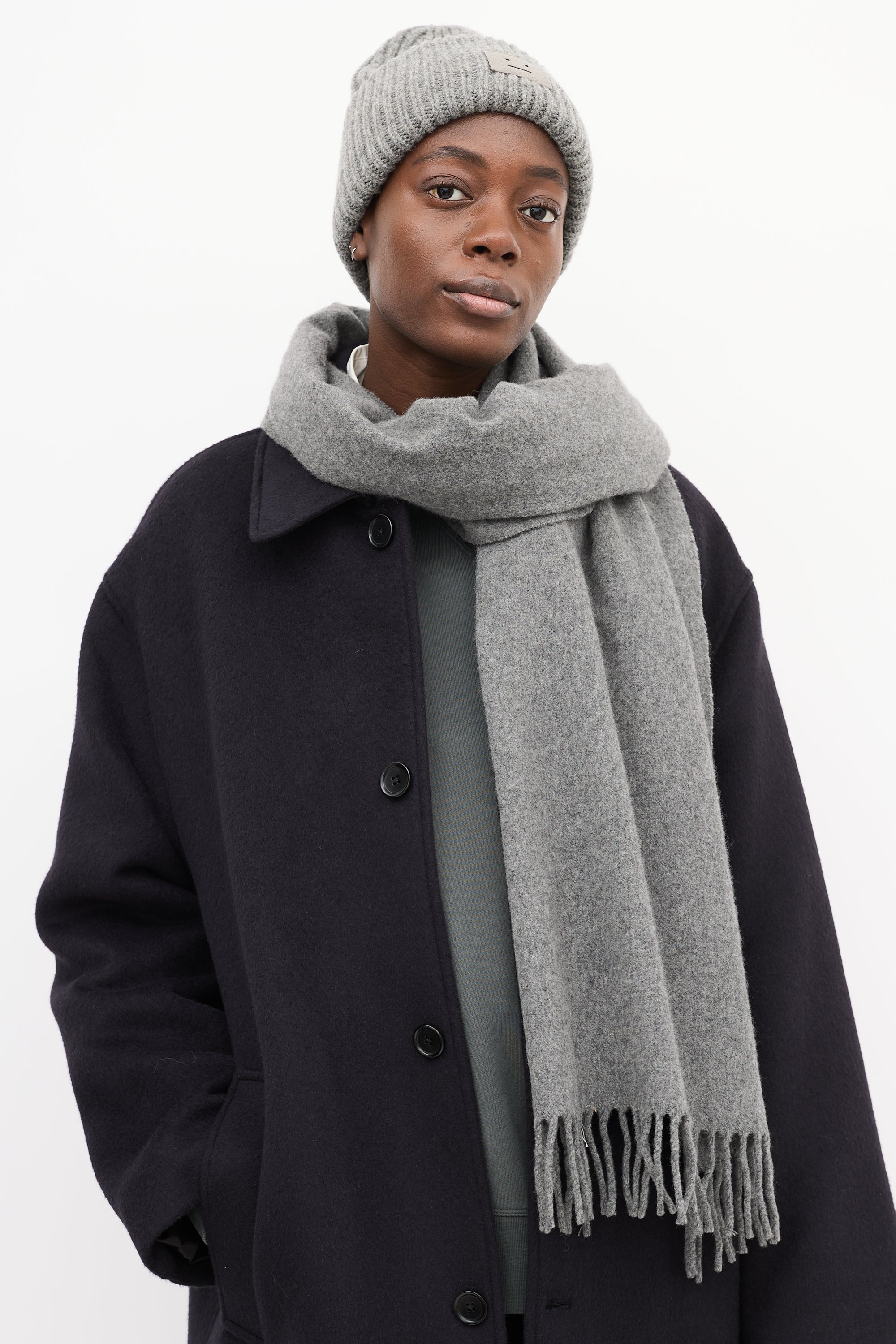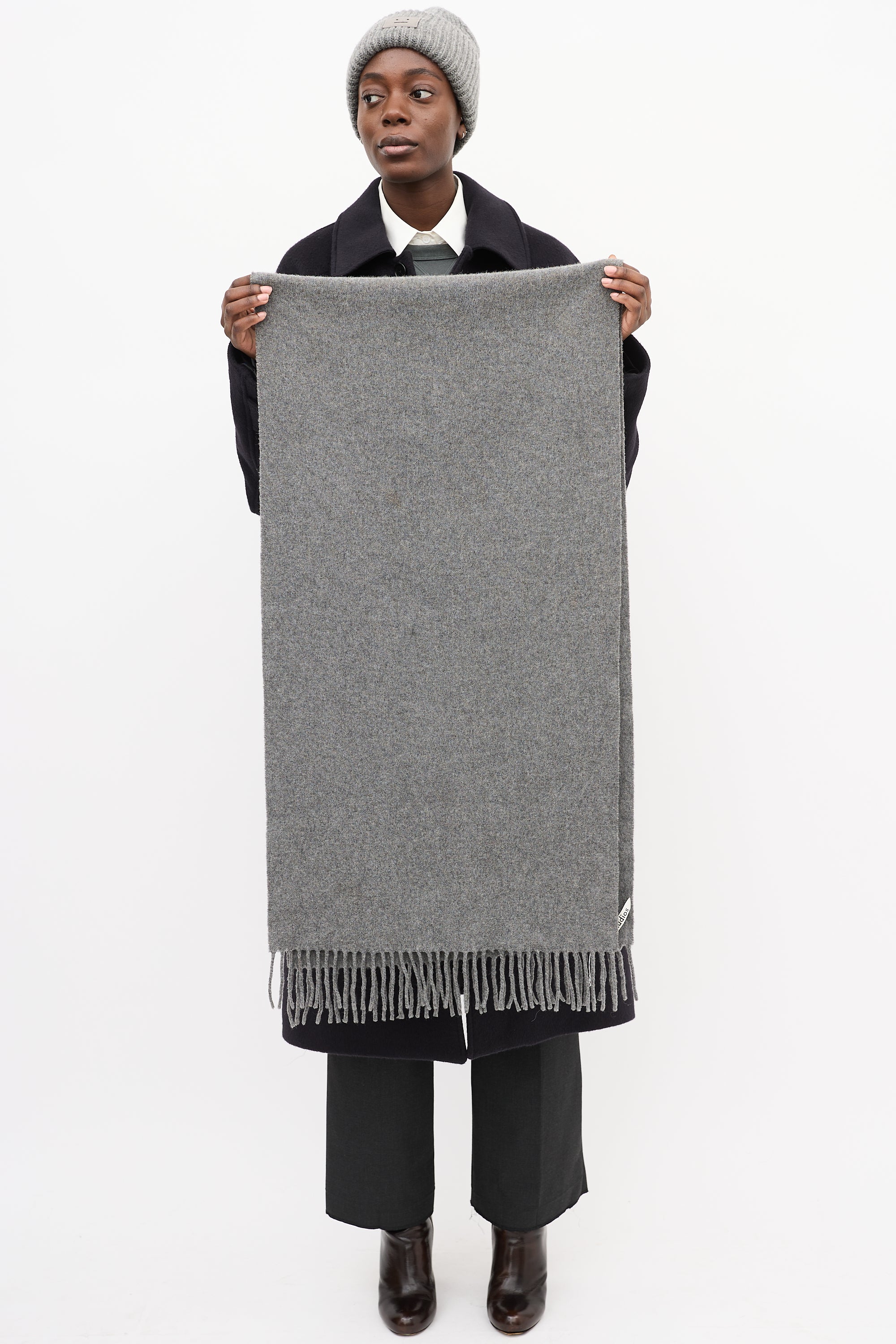 Pre-owned Acne Studios grey wool scarf featuring logo tag and fringe hem.
