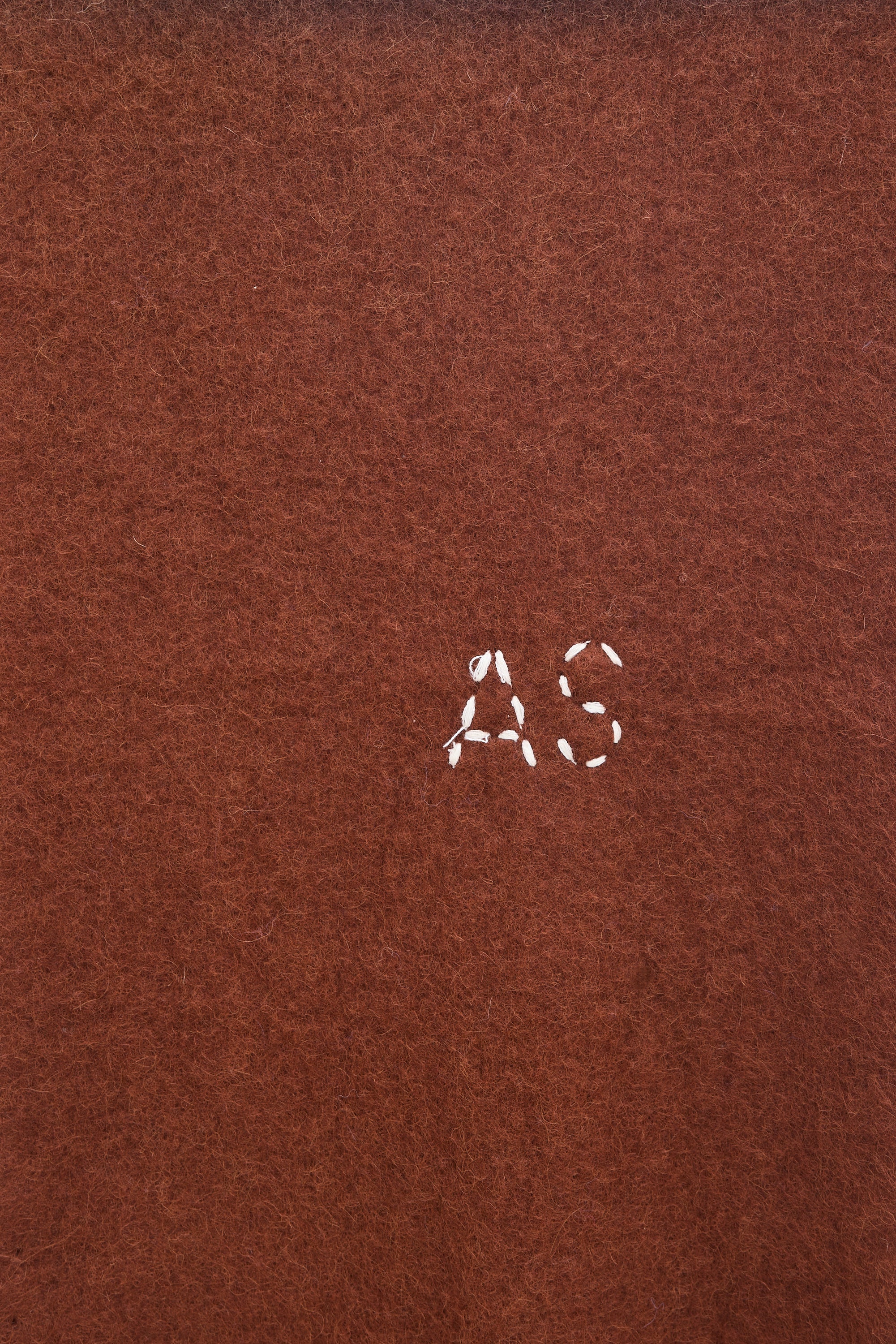 Pre-owned Acne Studios navy and brown ombré mohair wool scarf featuring white embroidered logo and fringe hem.