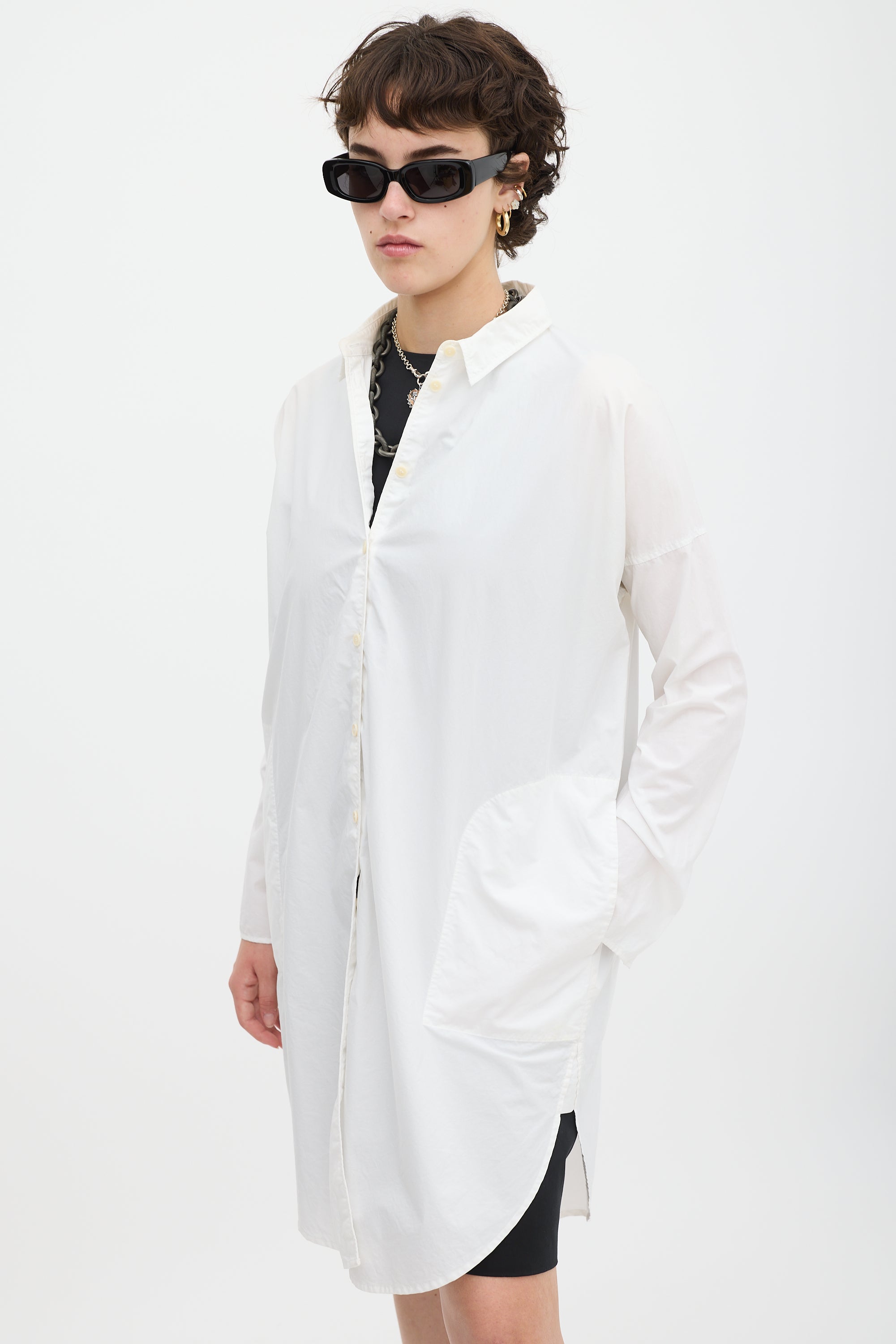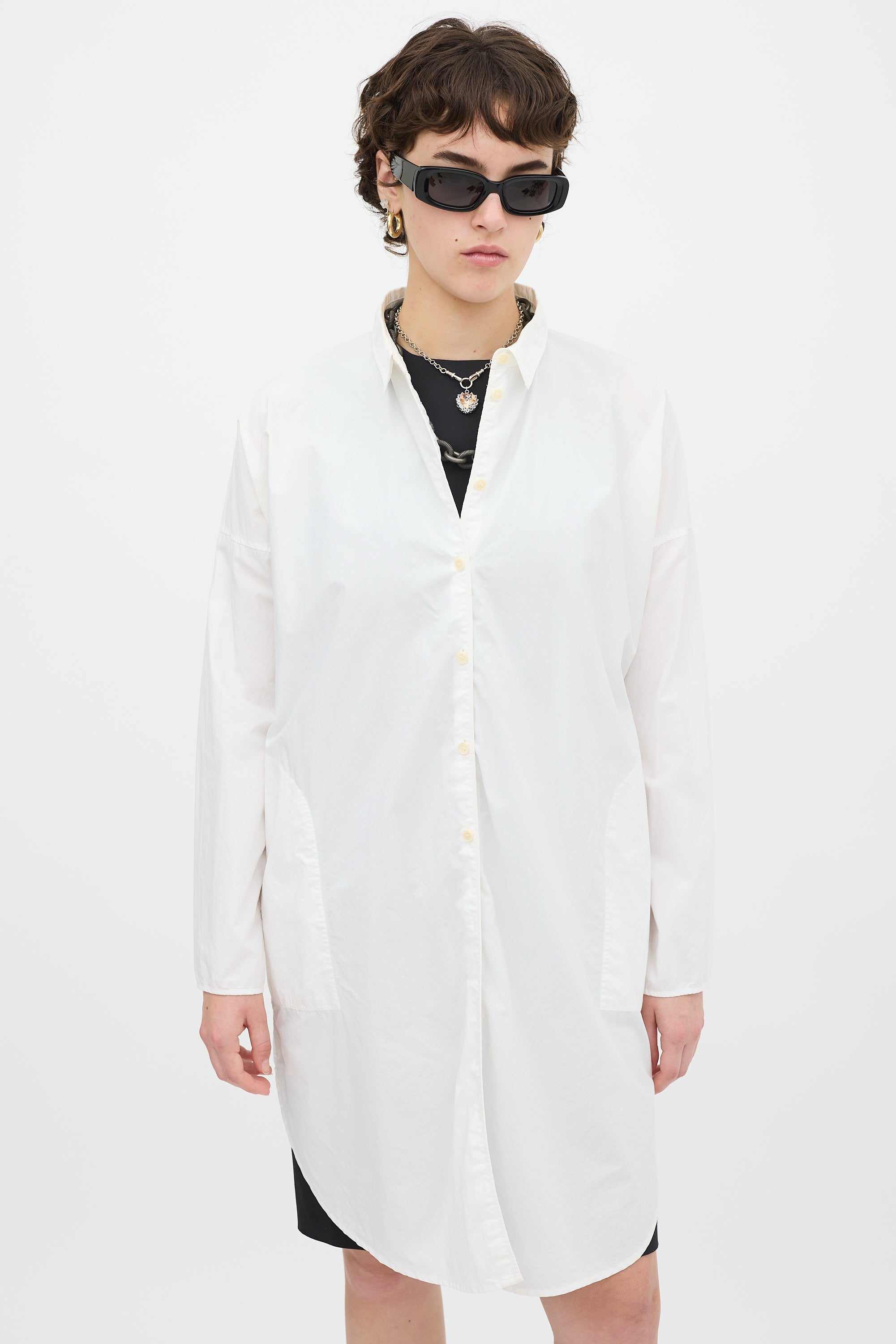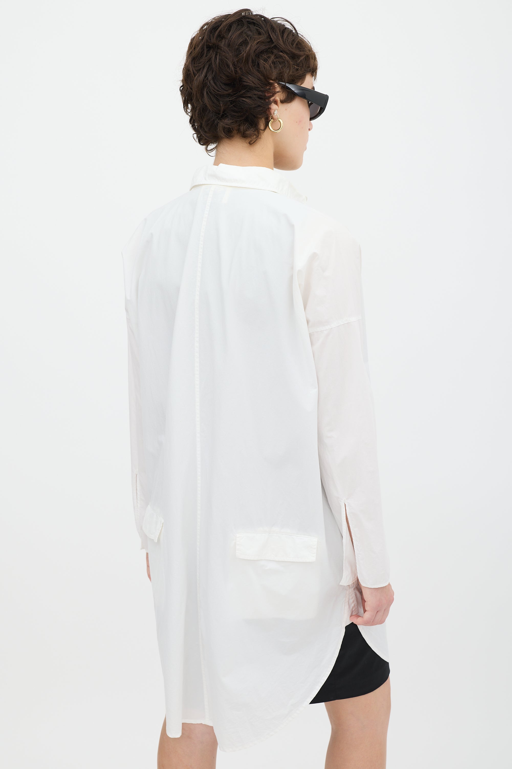 Pre-owned Acne Studios white cotton Lash Tech Pop shirt dress featuring a collared neck, button up front, in seam pockets, two back flap pockets, curved hem, dropped shoulders, and long sleeves with split cuffs.