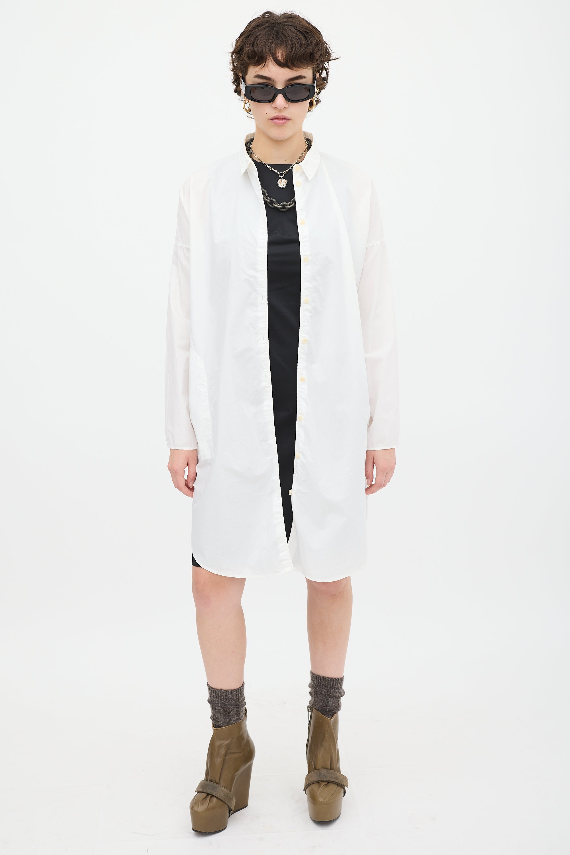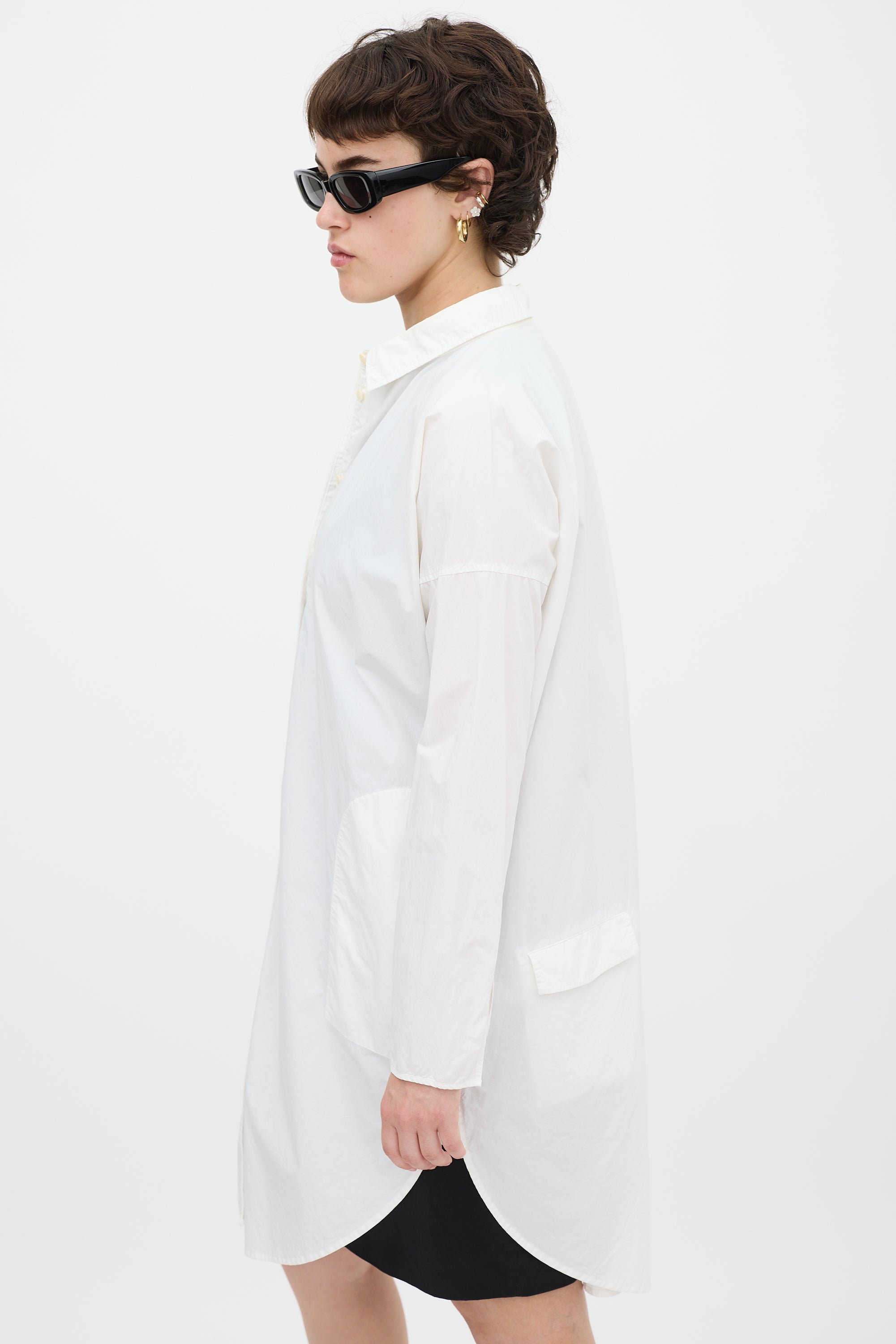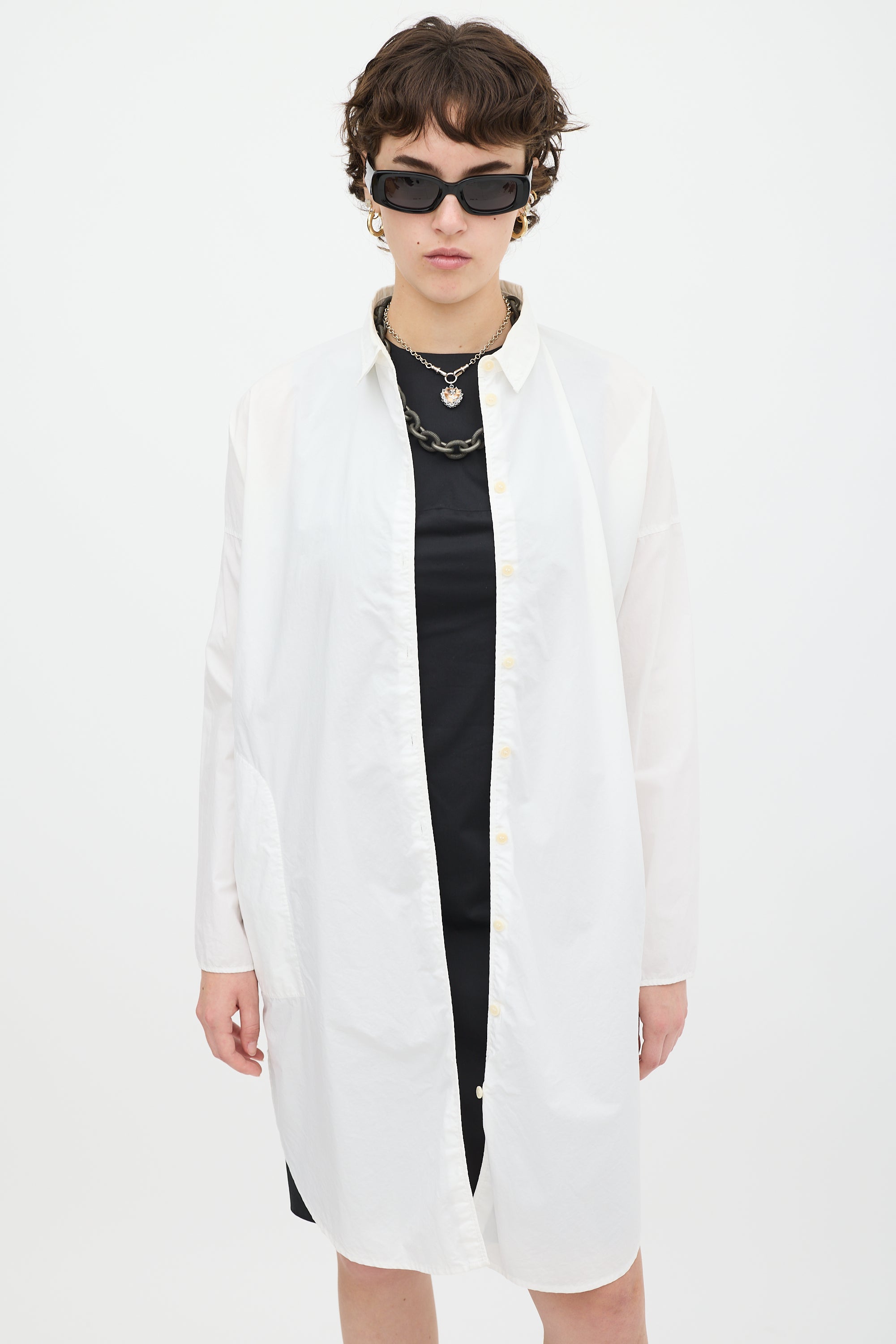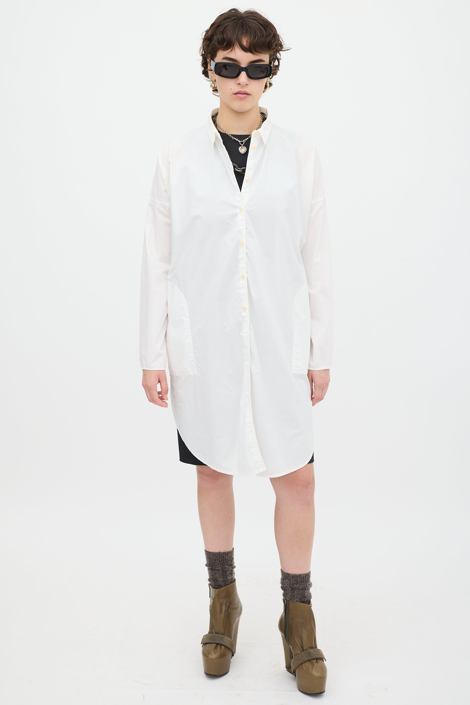 Pre-owned Acne Studios white cotton Lash Tech Pop shirt dress featuring a collared neck, button up front, in seam pockets, two back flap pockets, curved hem, dropped shoulders, and long sleeves with split cuffs.