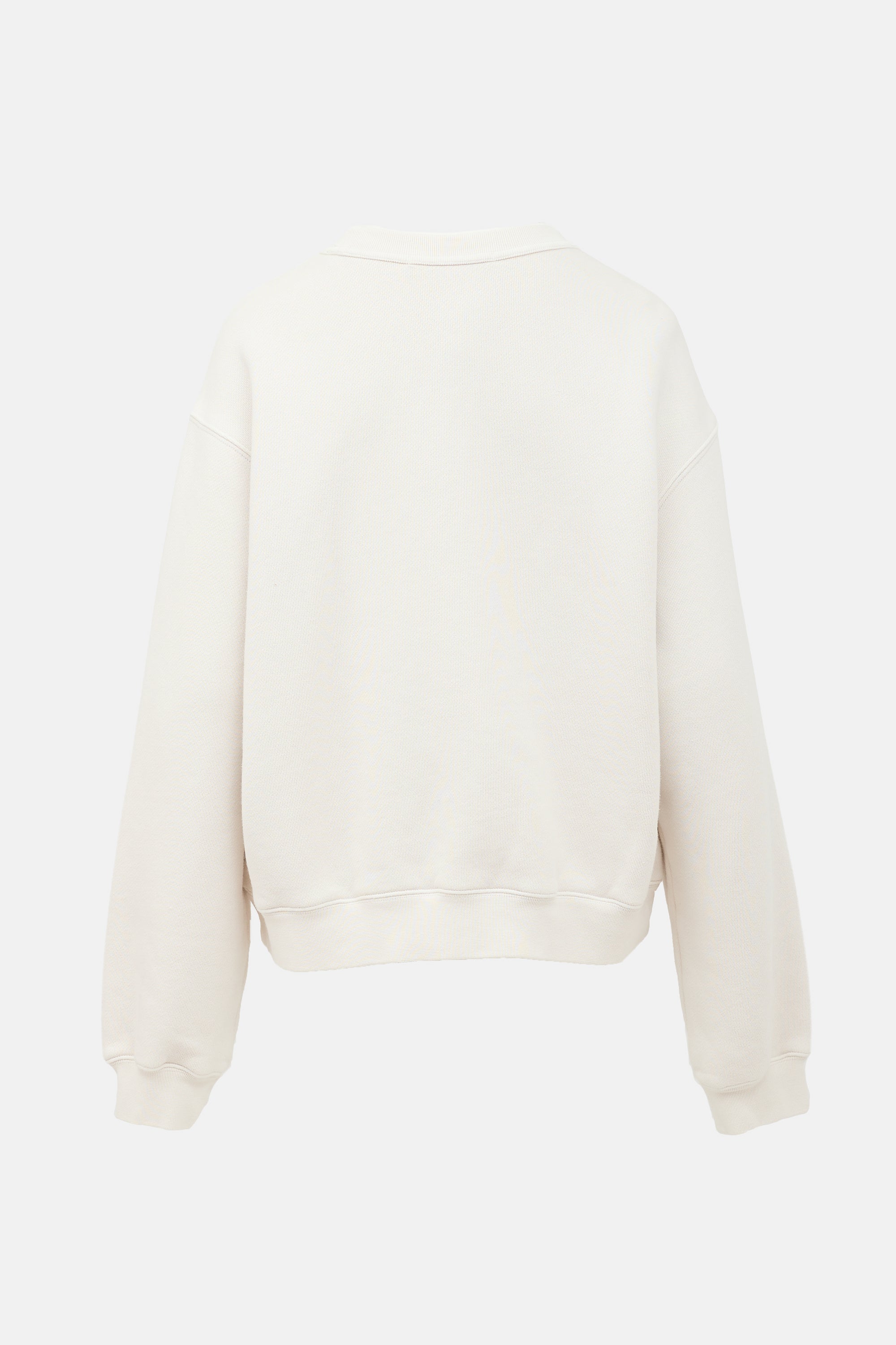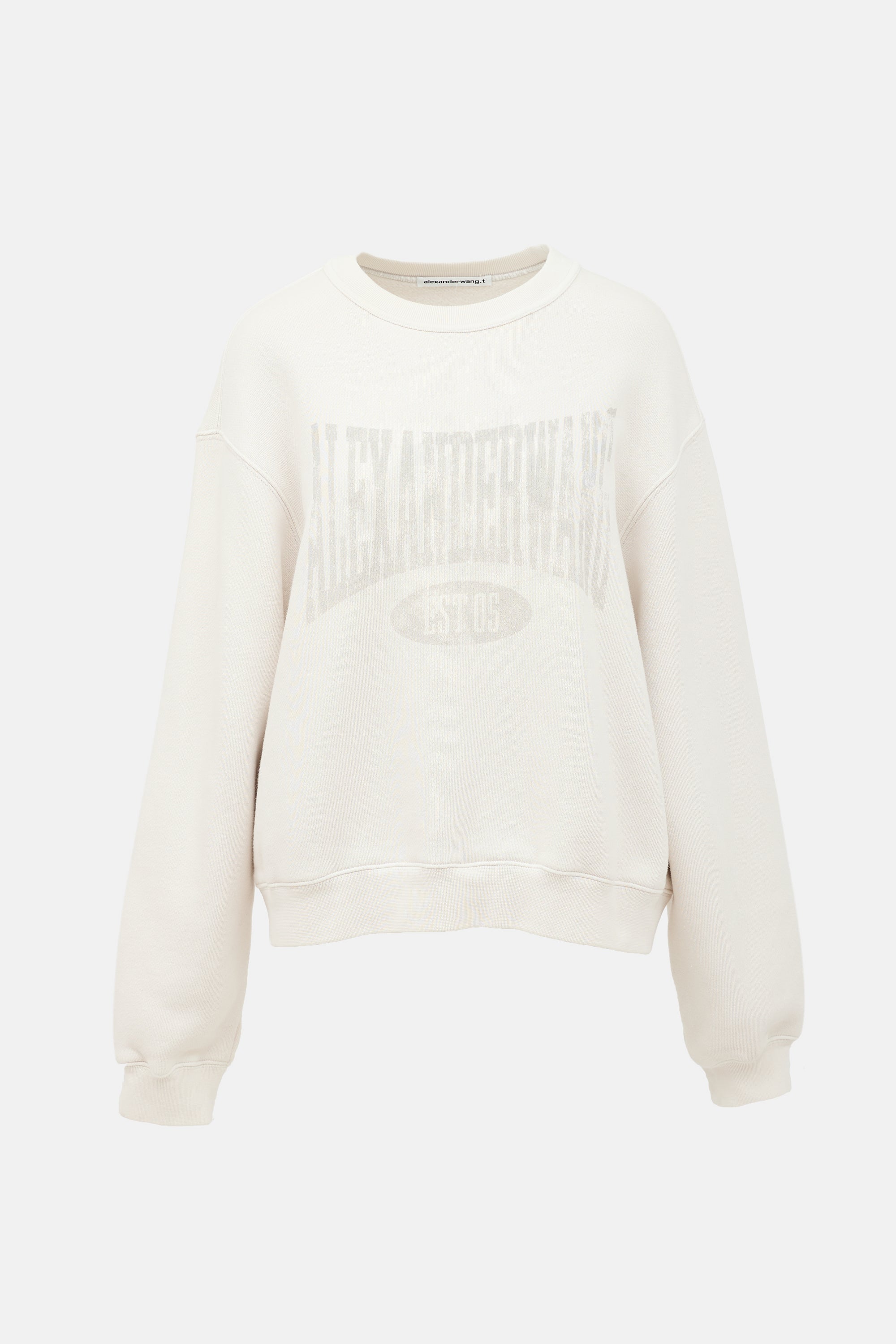 T by Alexander Wang cream sweatshirt featuring crew neckline and distressed logo at front.