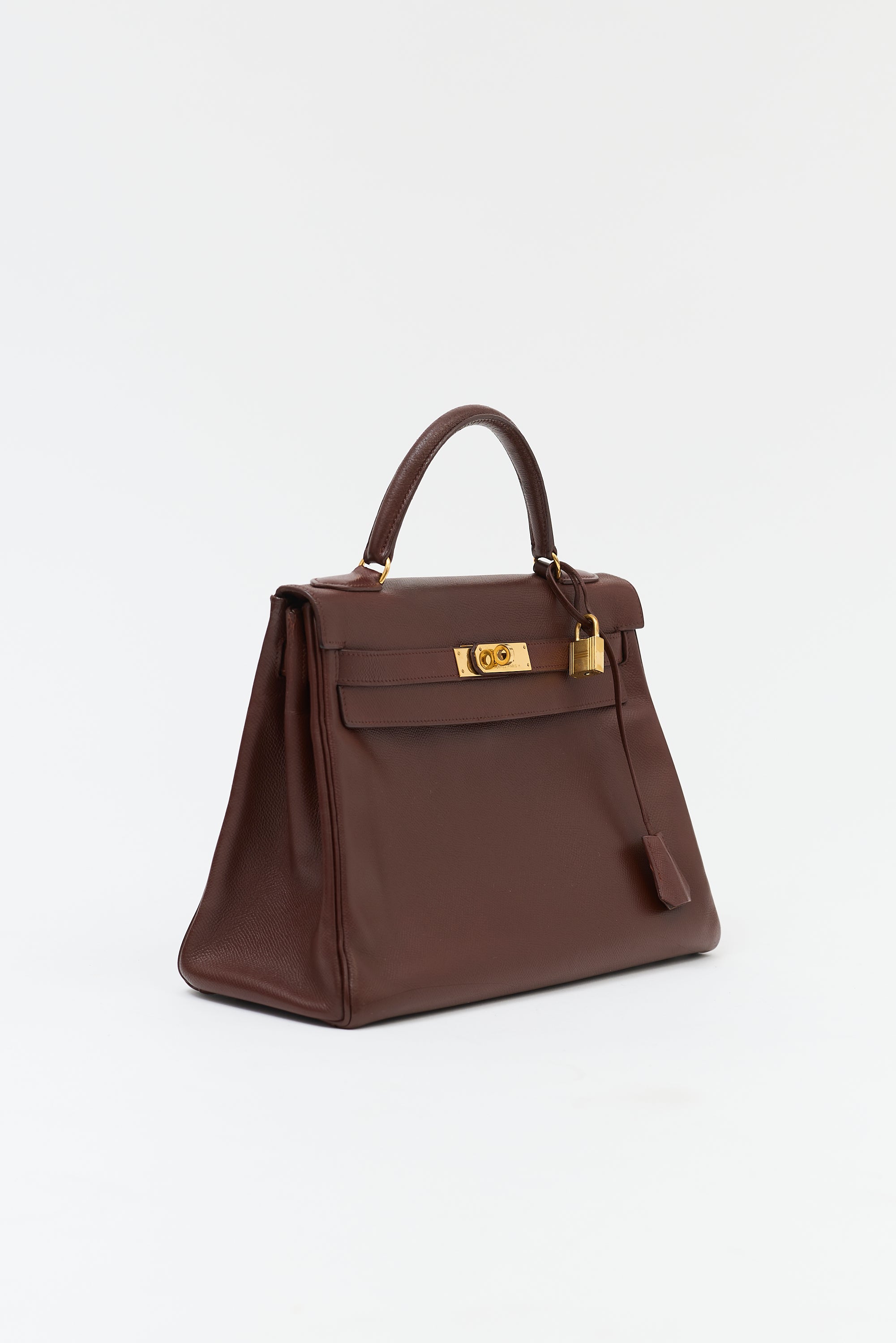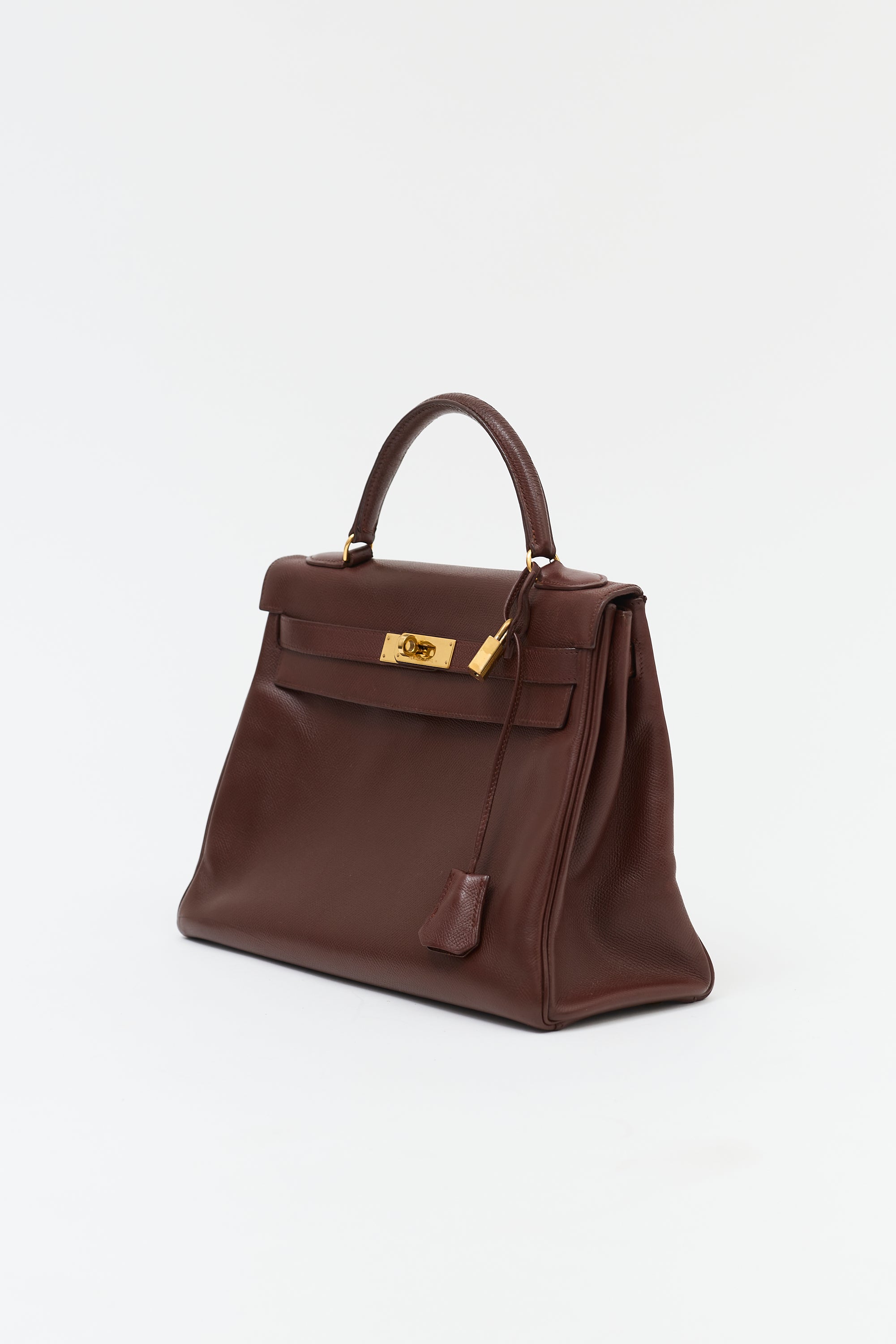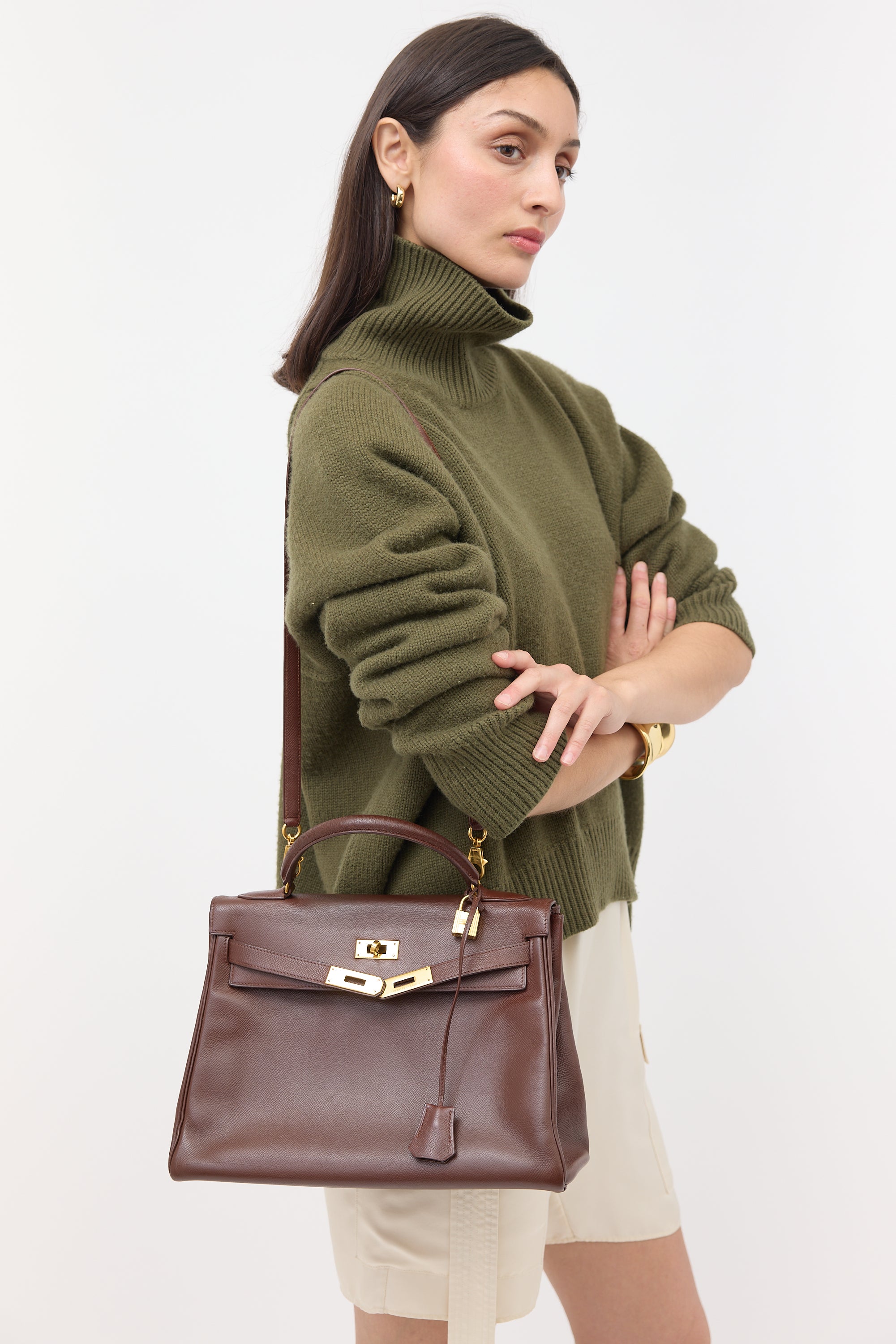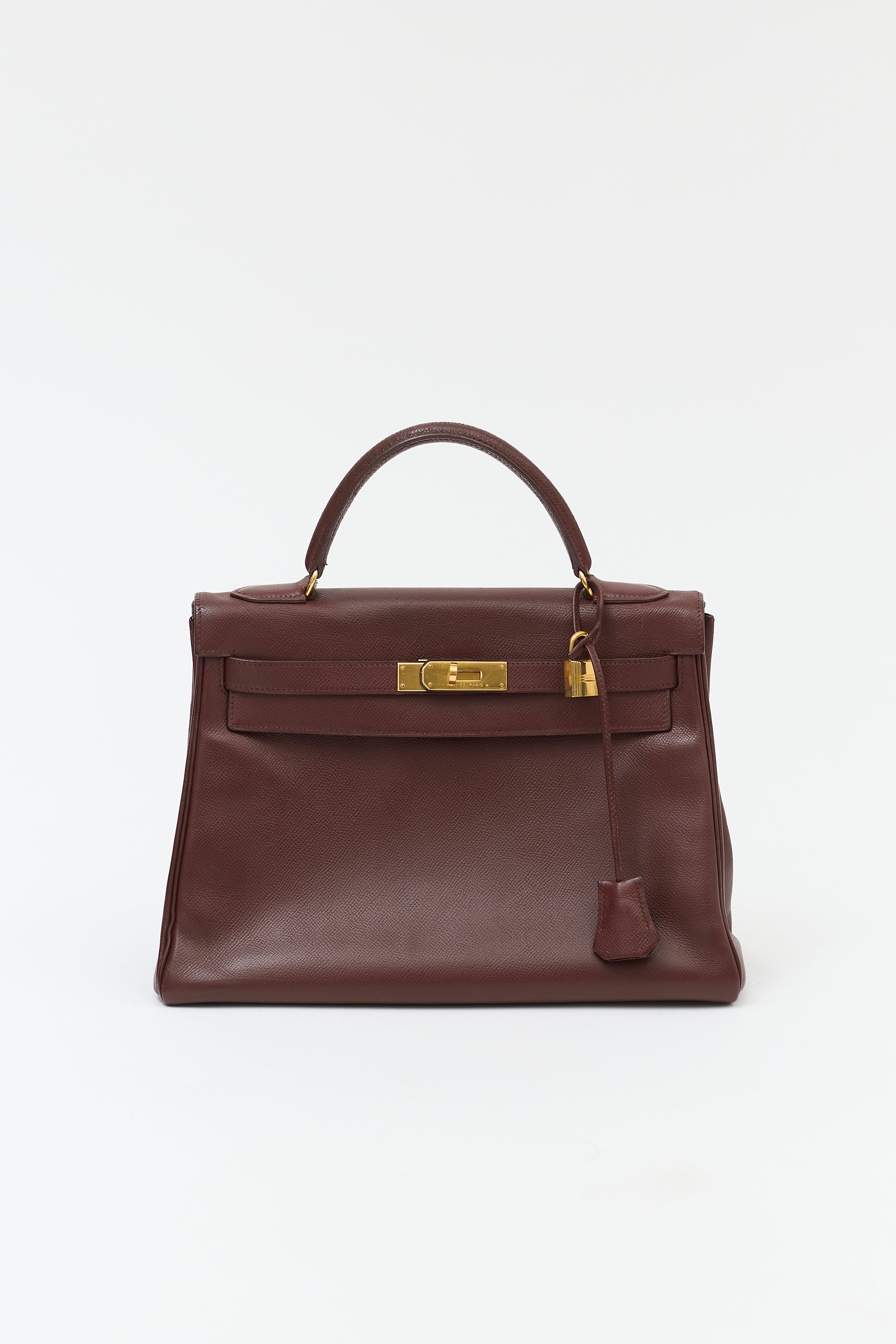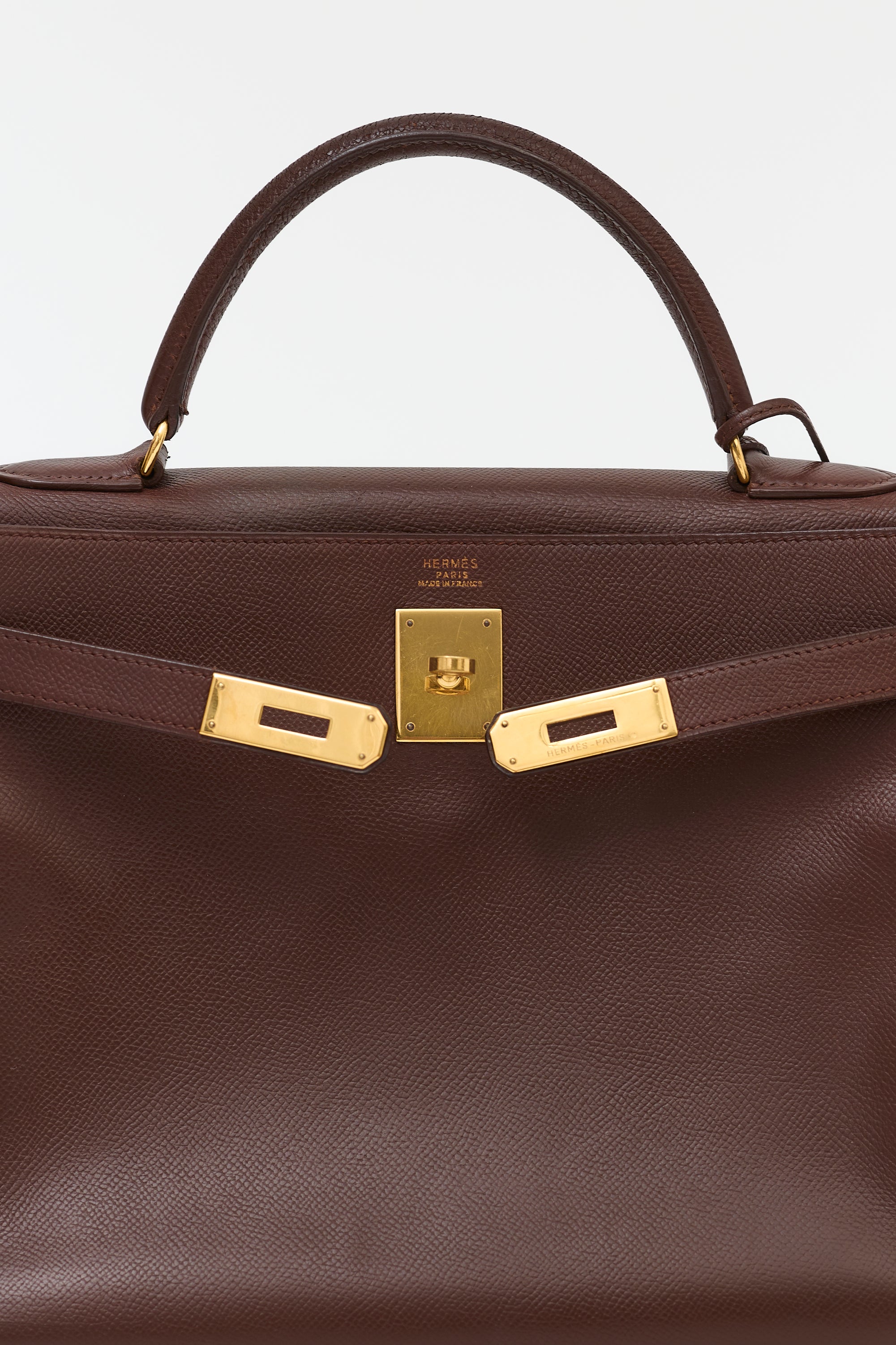 1991 Brown Courchevel Kelly Retourne 32 Bag