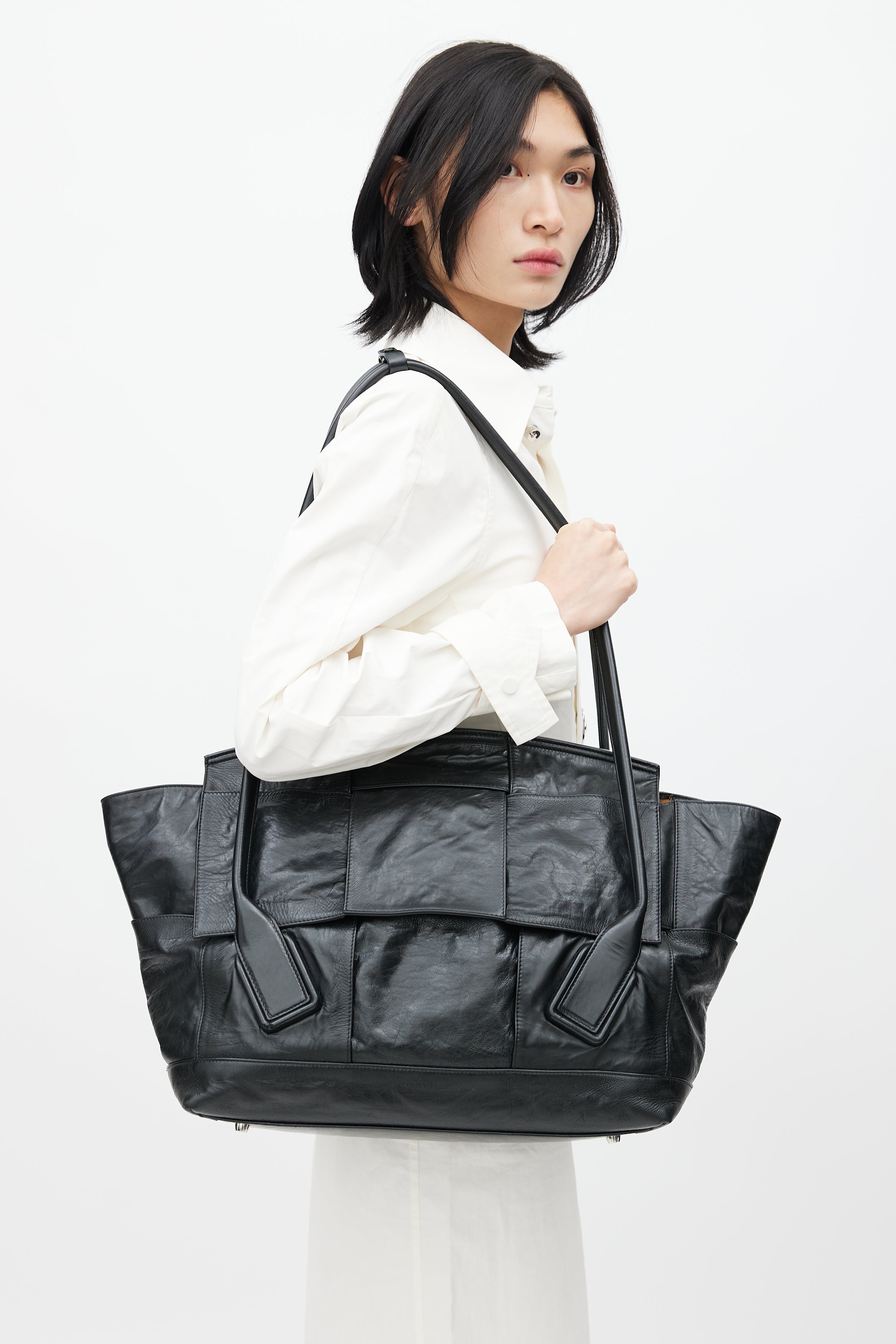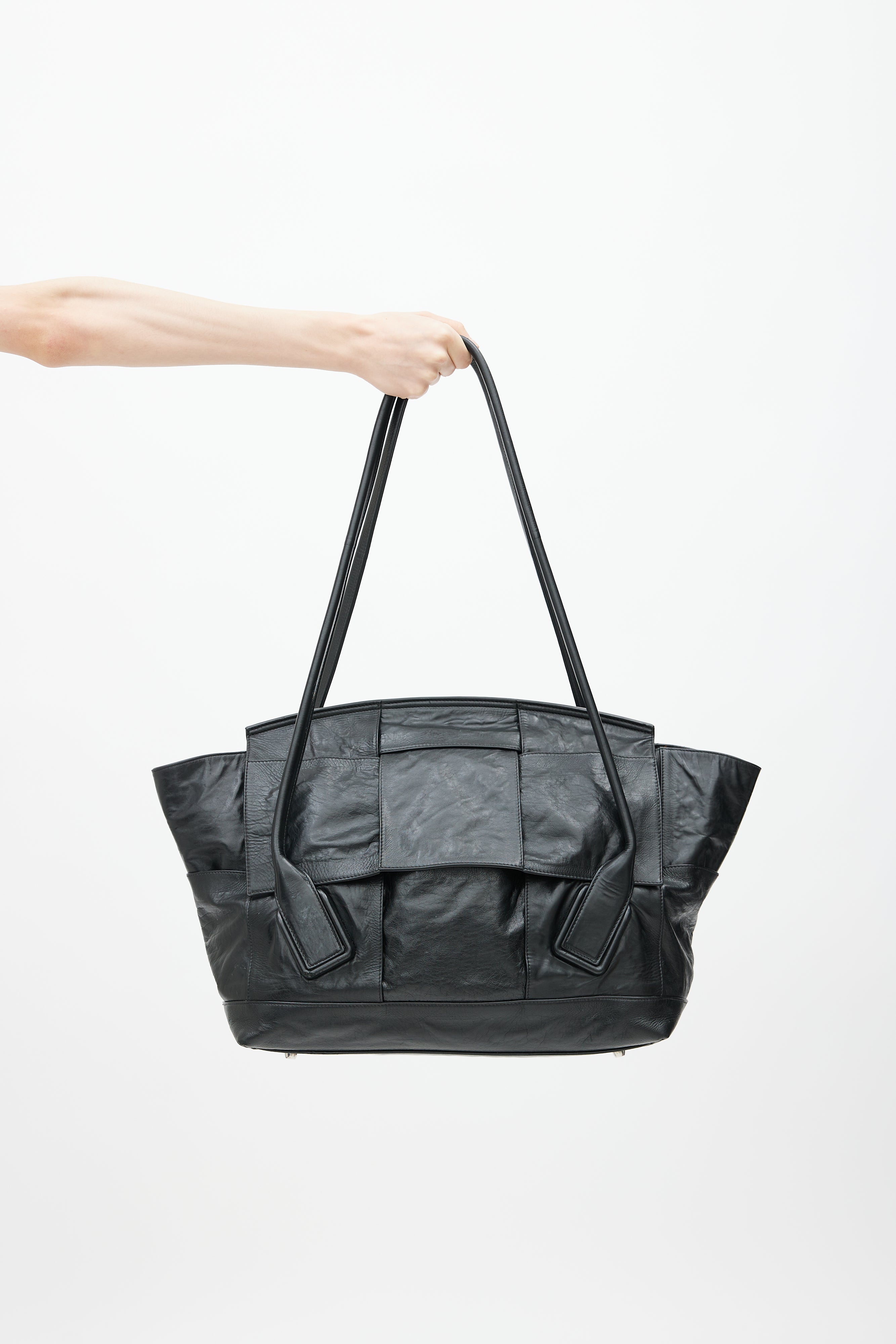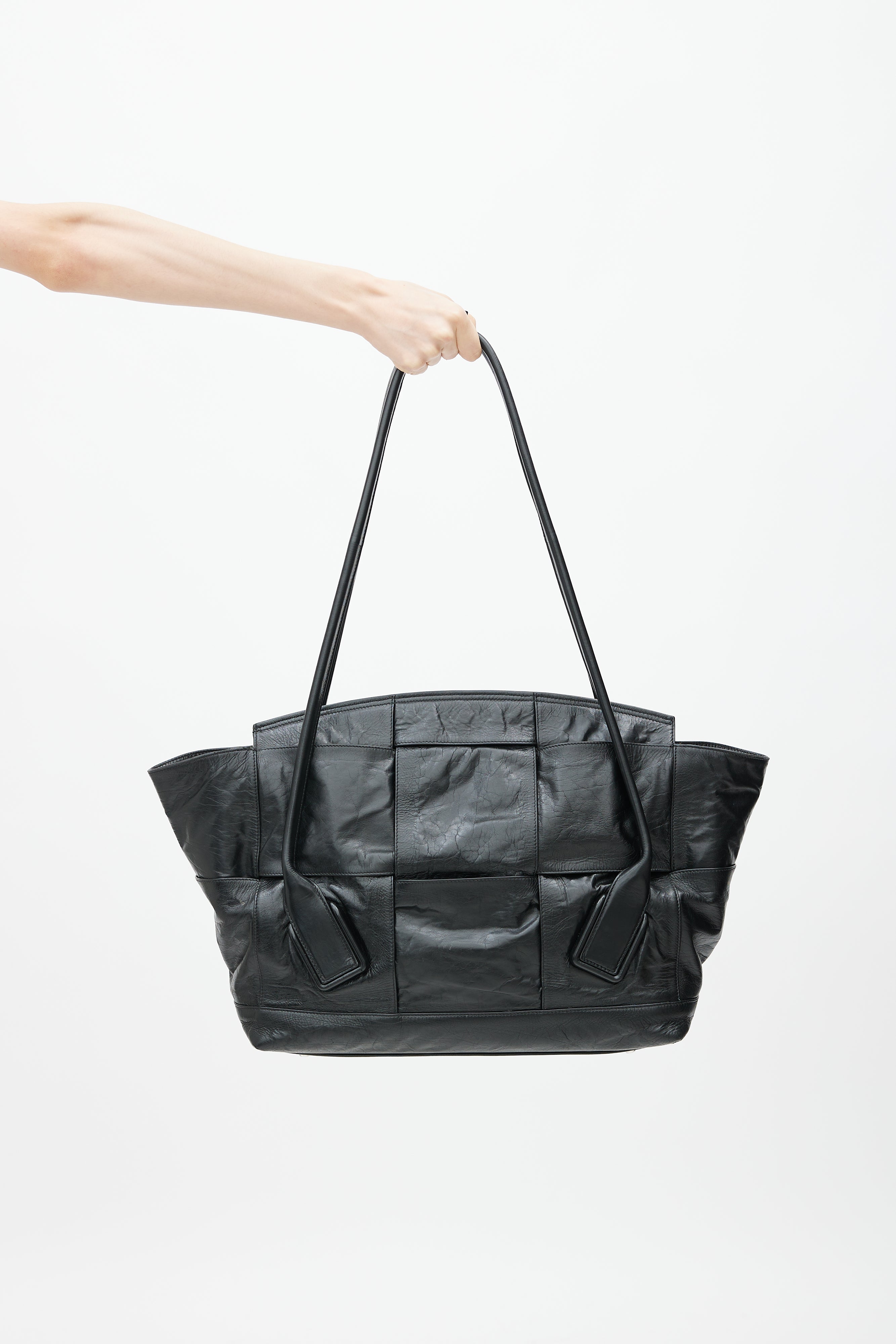 Black Intrecciato Large Slouch Arco Shoulder Bag