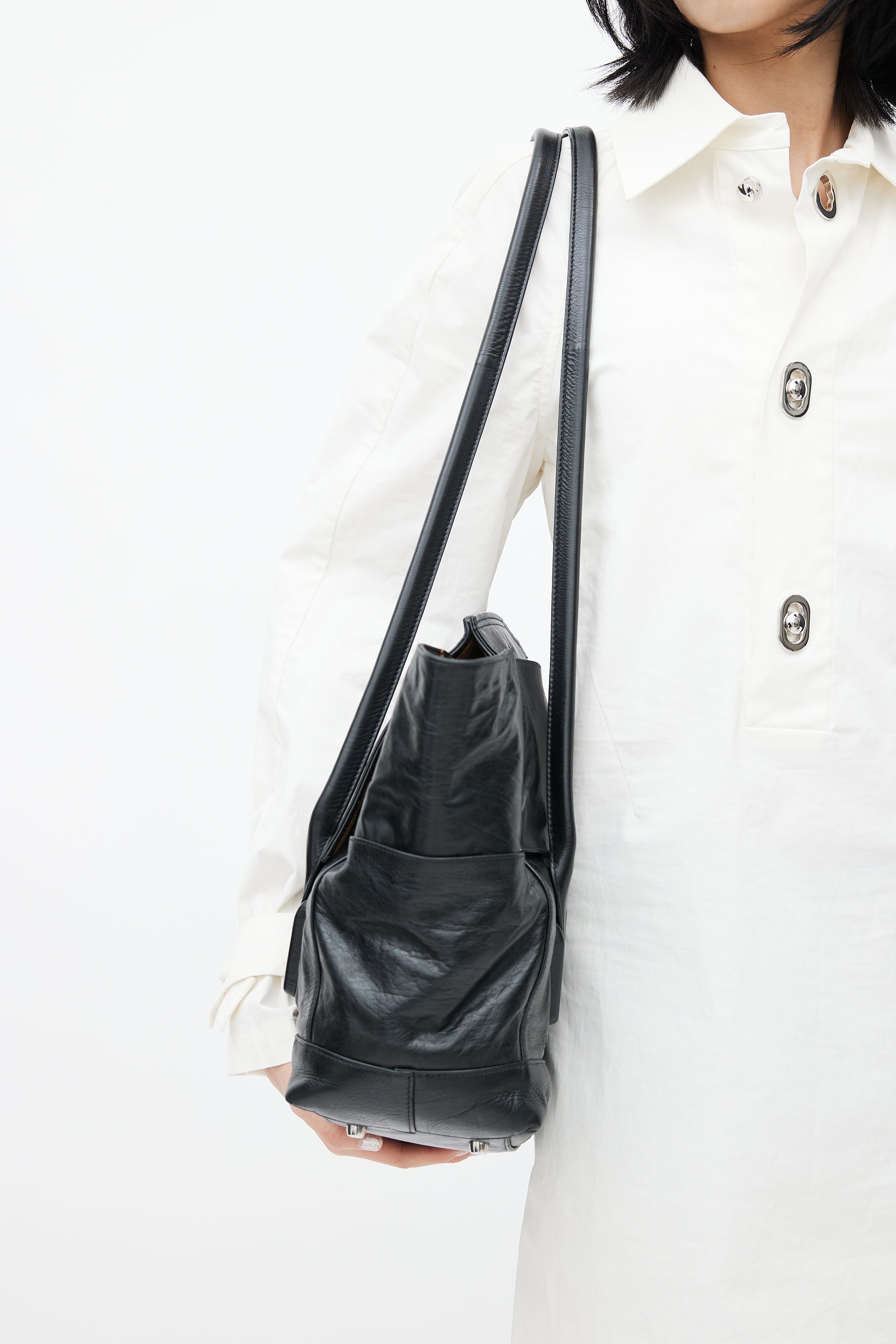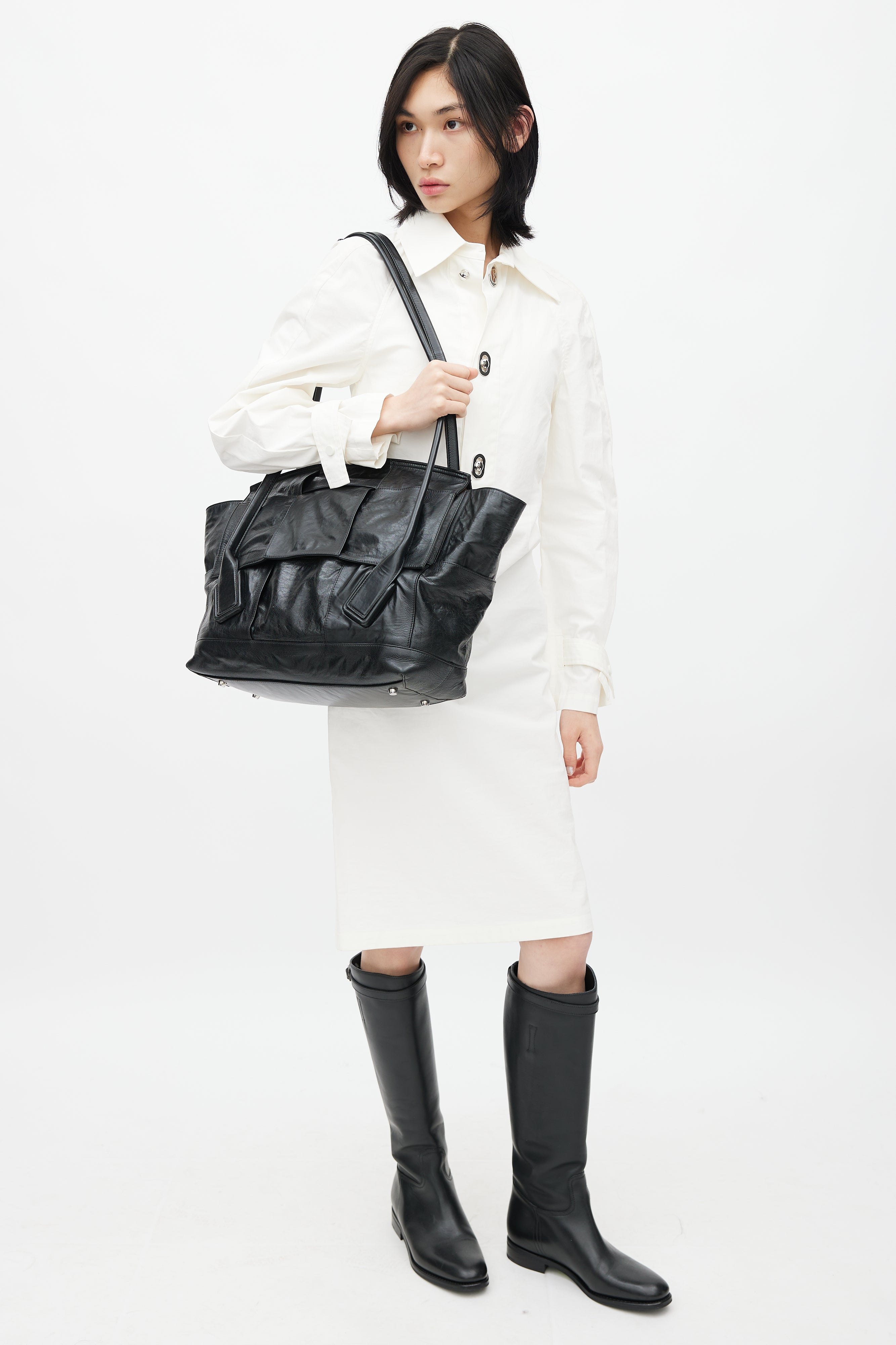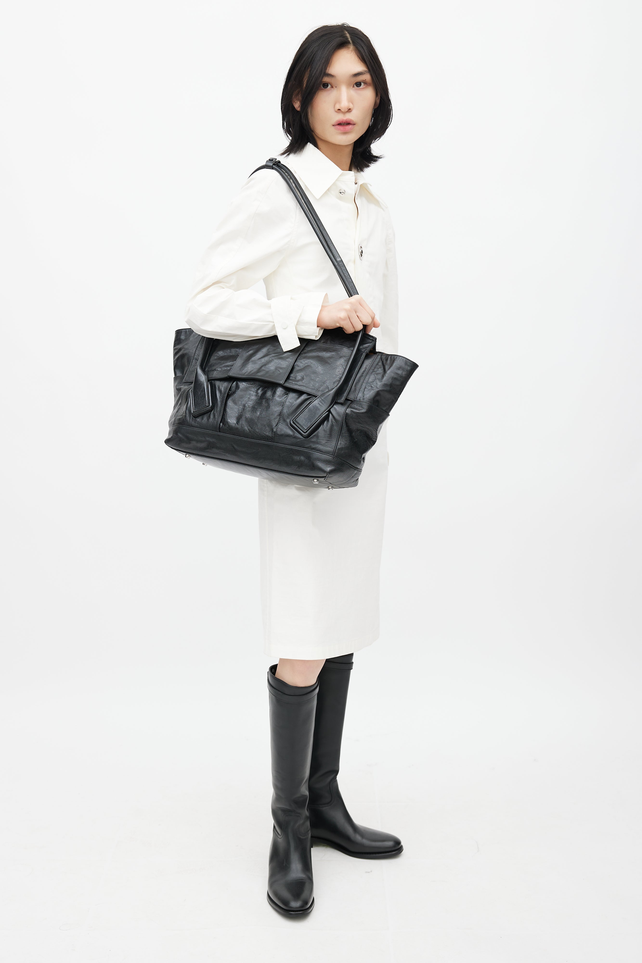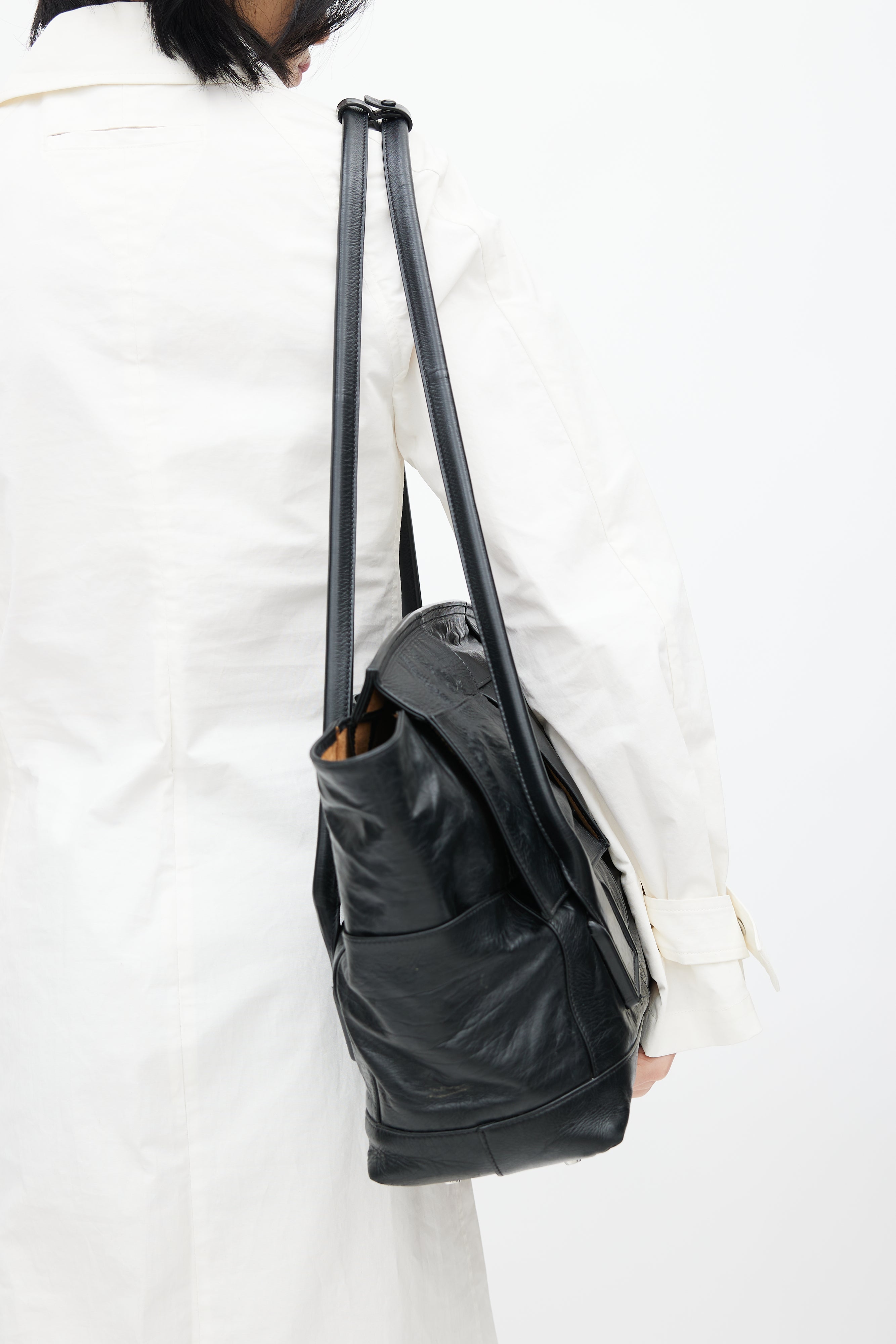 Black Intrecciato Large Slouch Arco Shoulder Bag