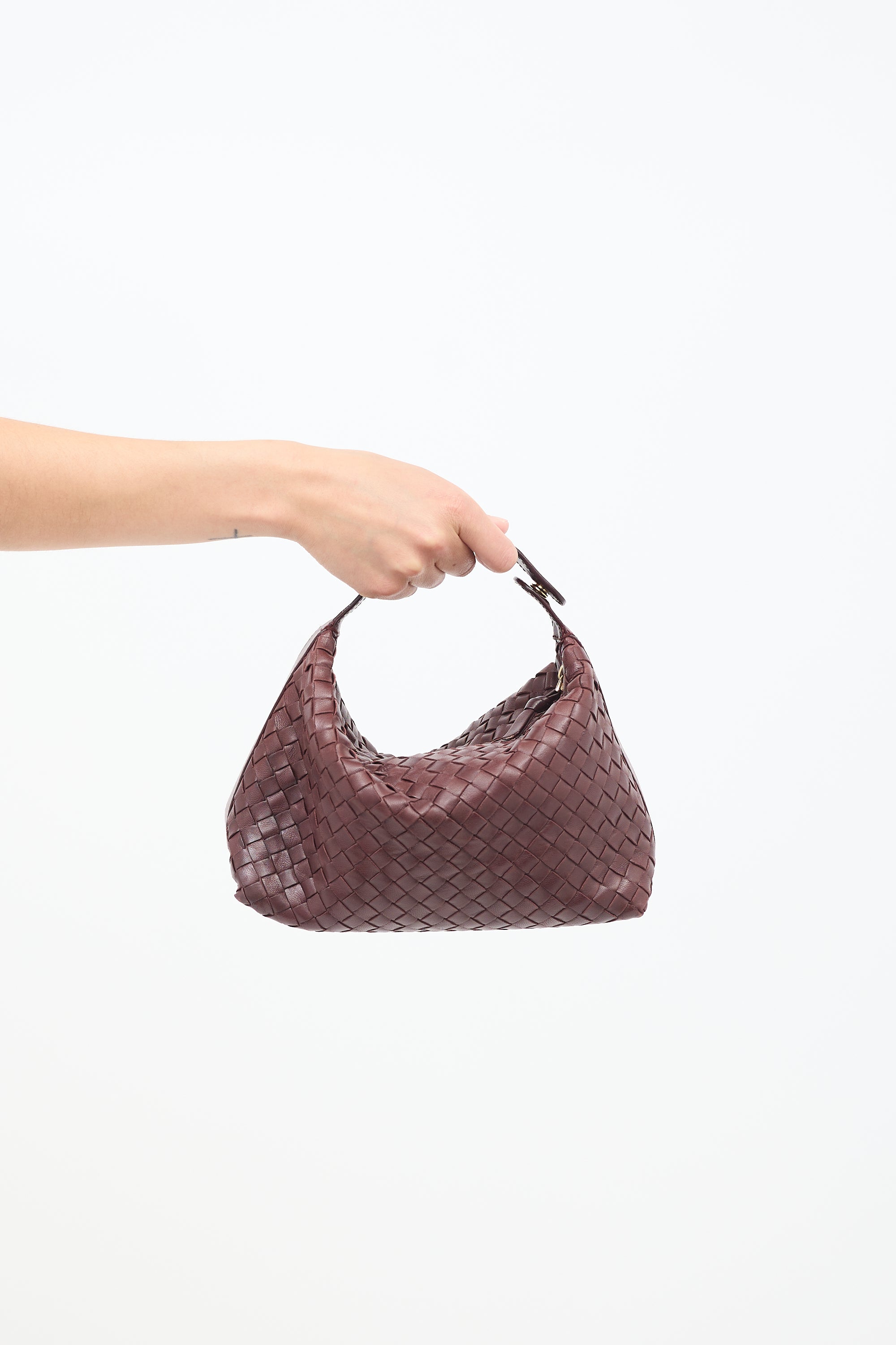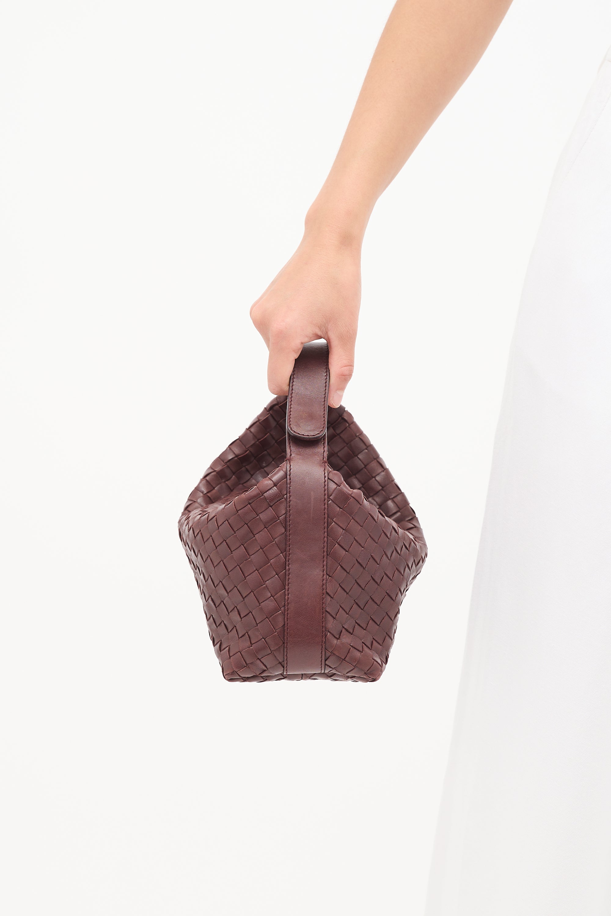 Intrecciato Leather Snap Handle Bag