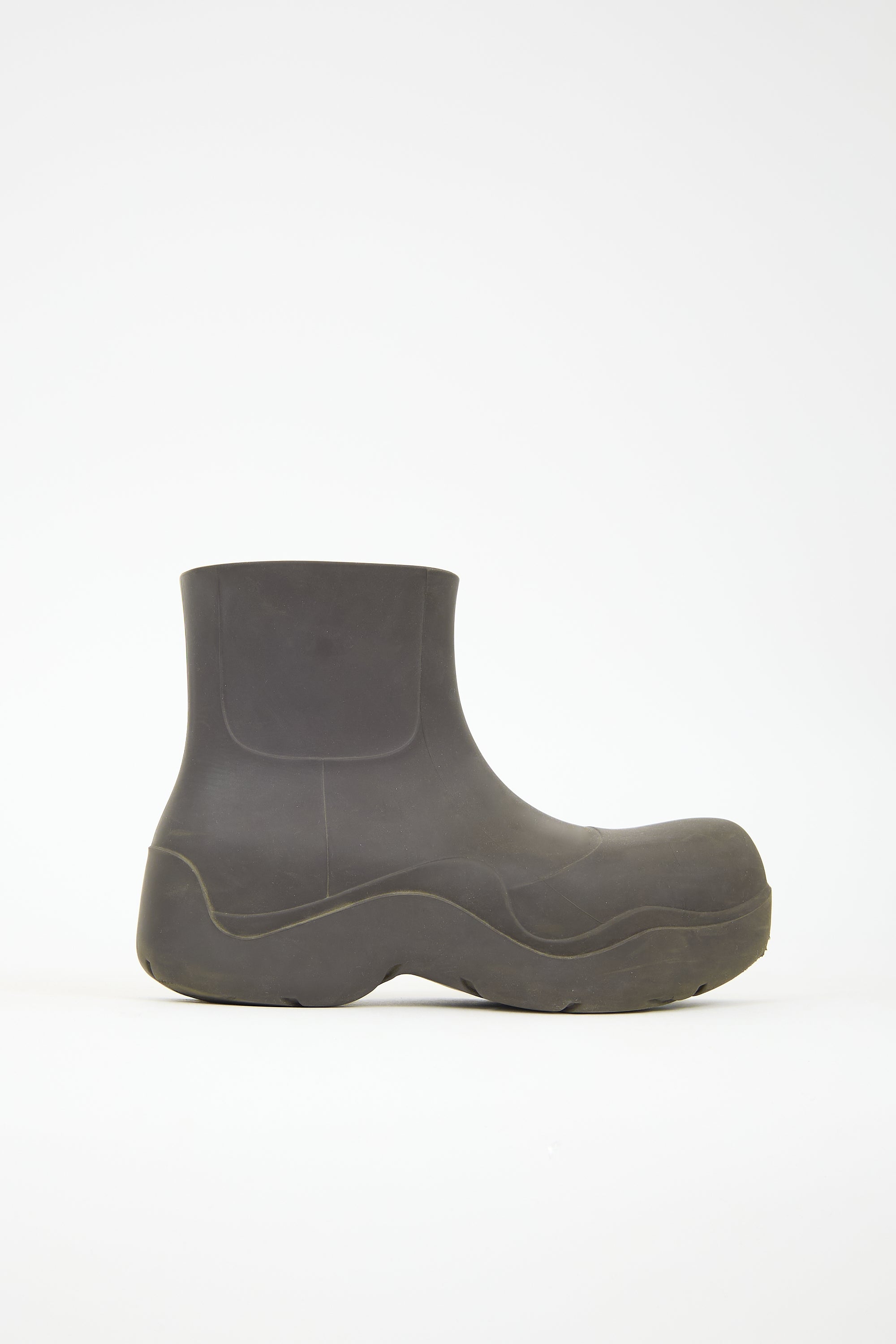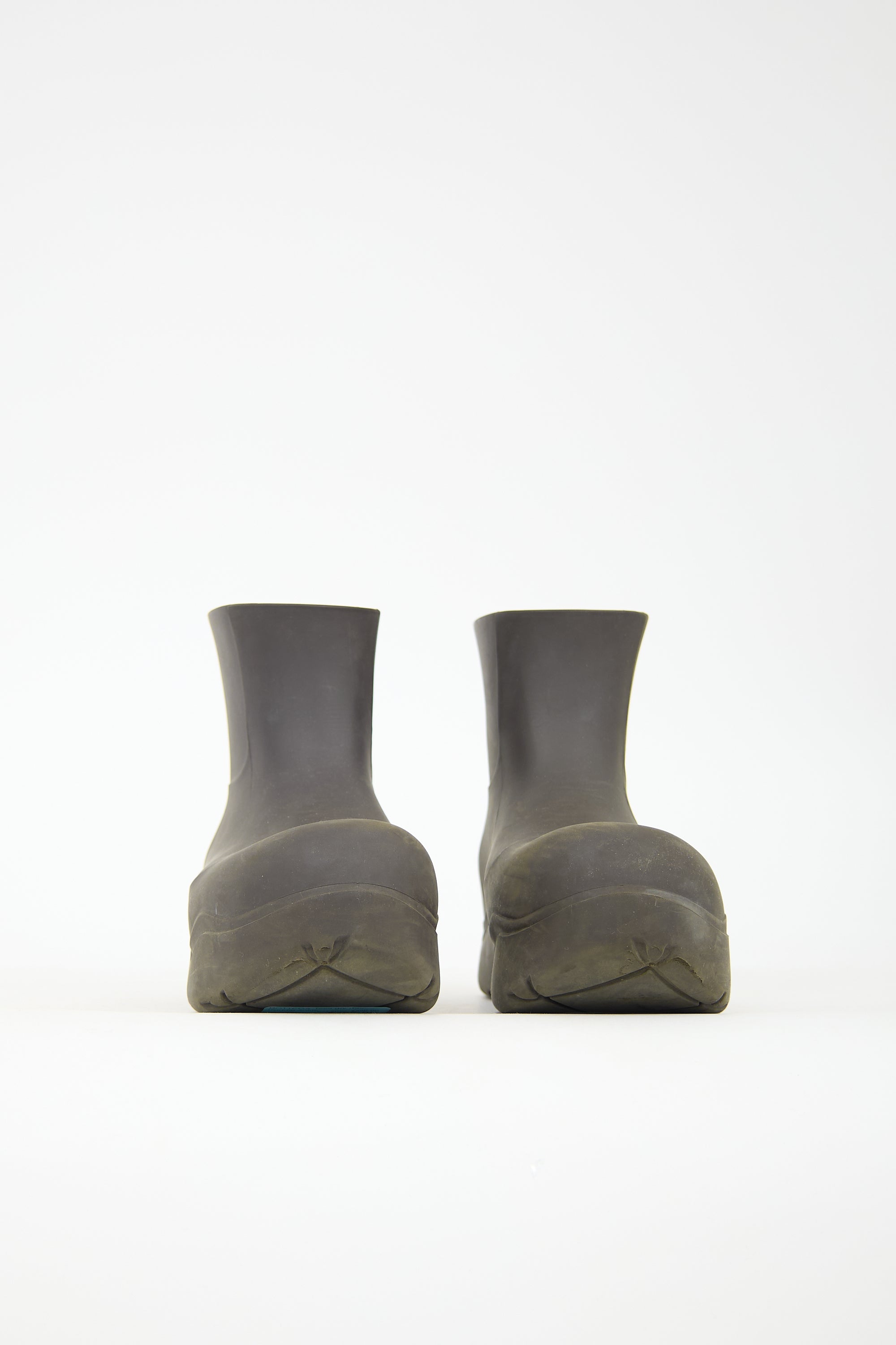 Pre-owned Bottega Veneta brown rubber Puddle boots featuring rounded toe, pull on entry, and platform sole.