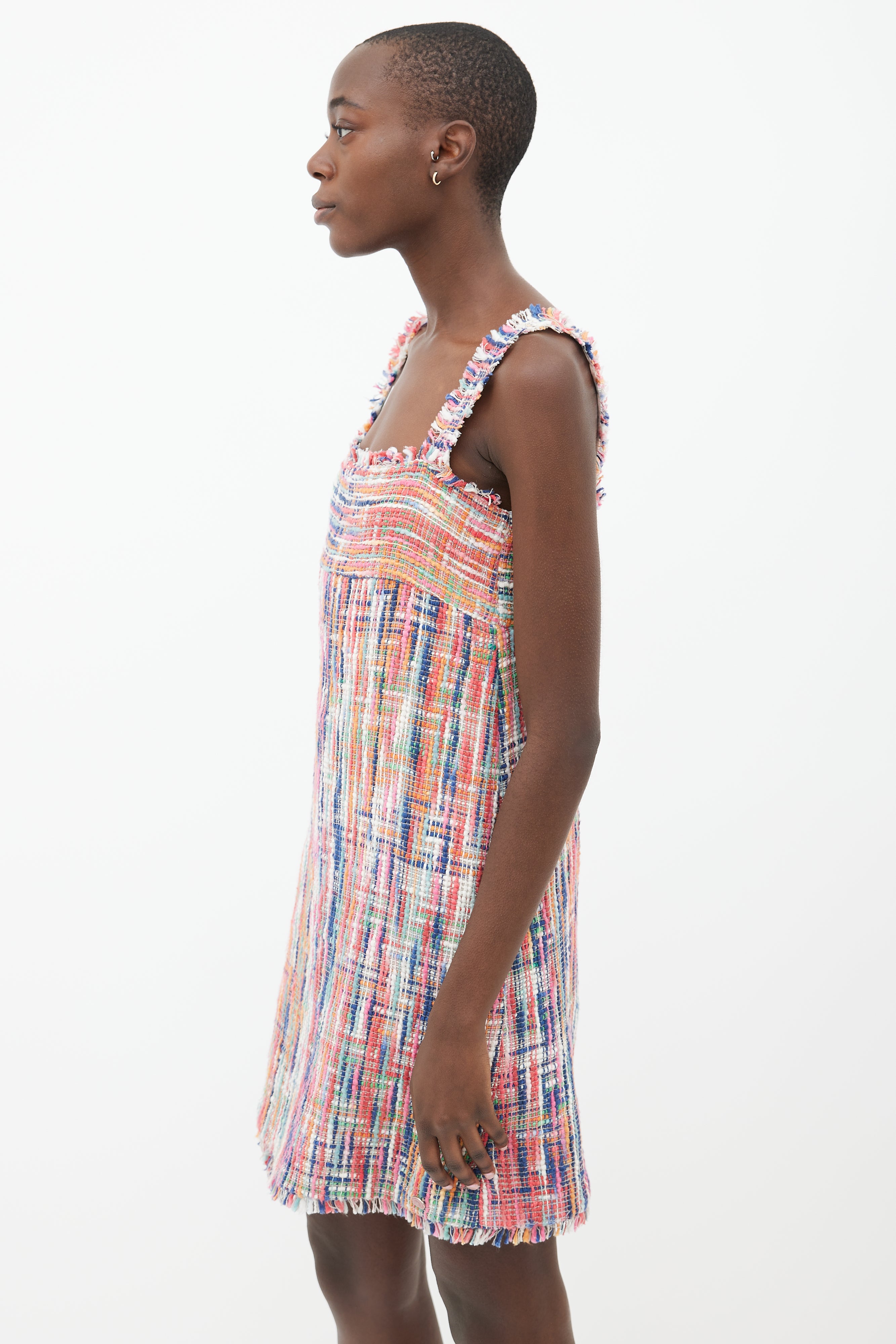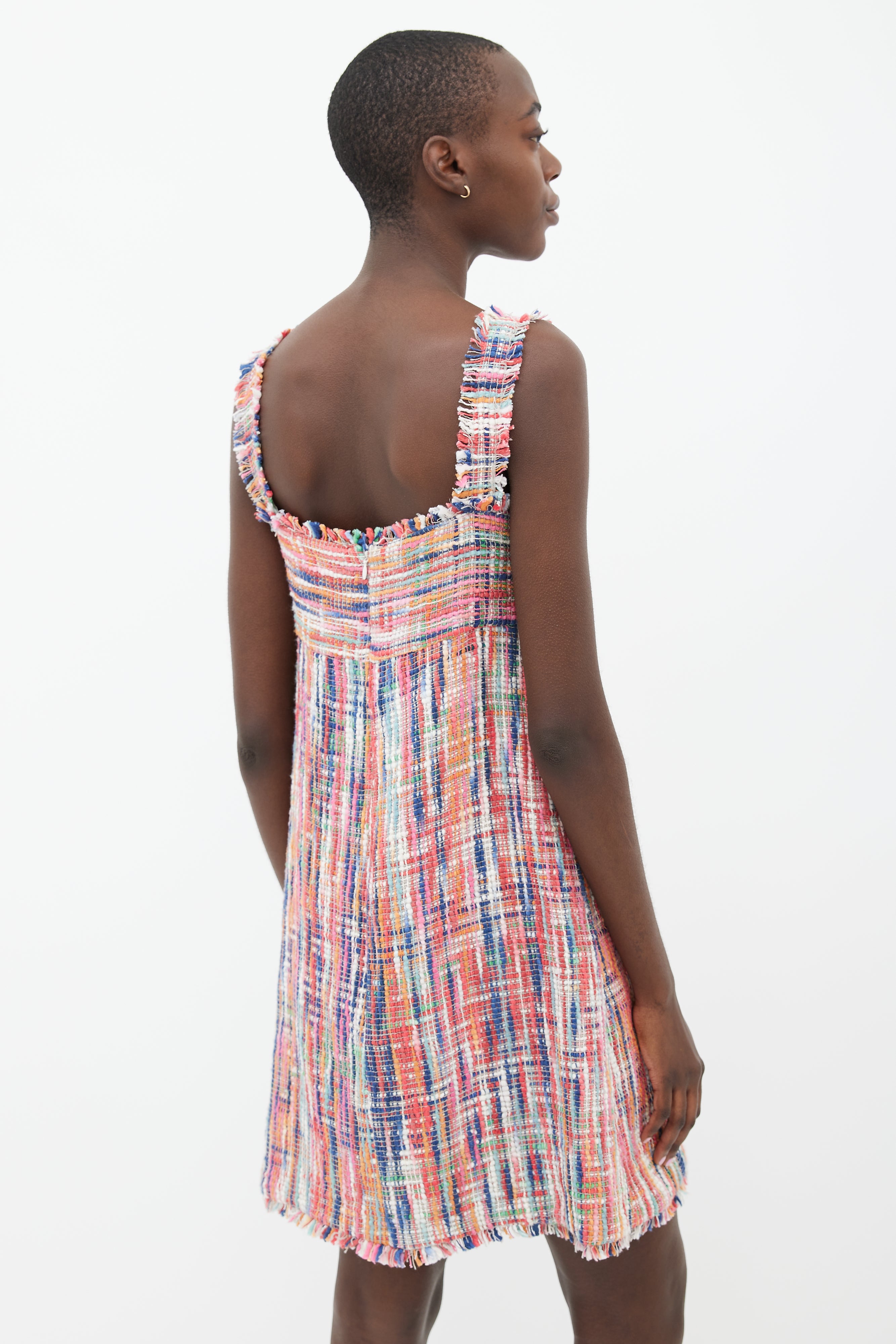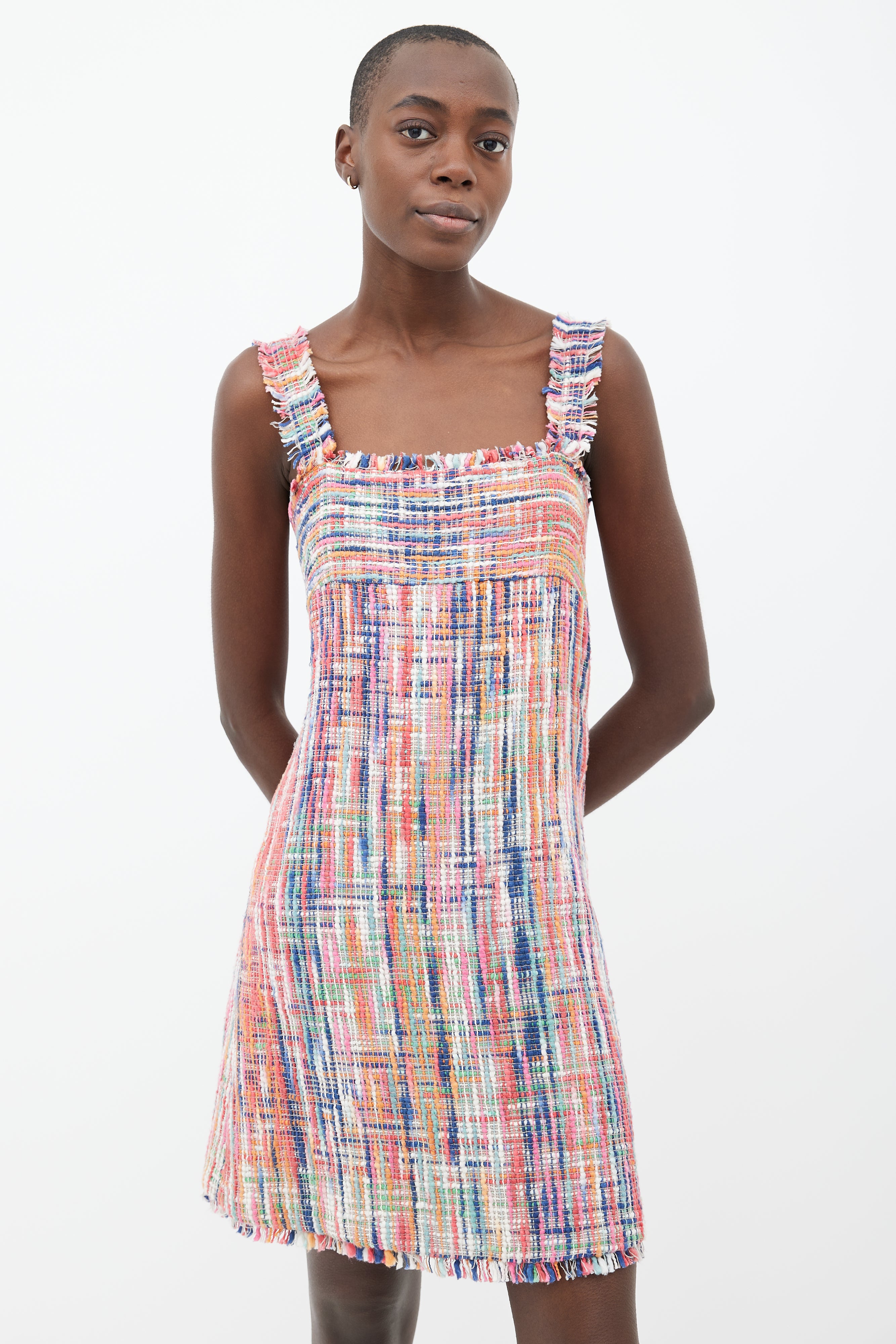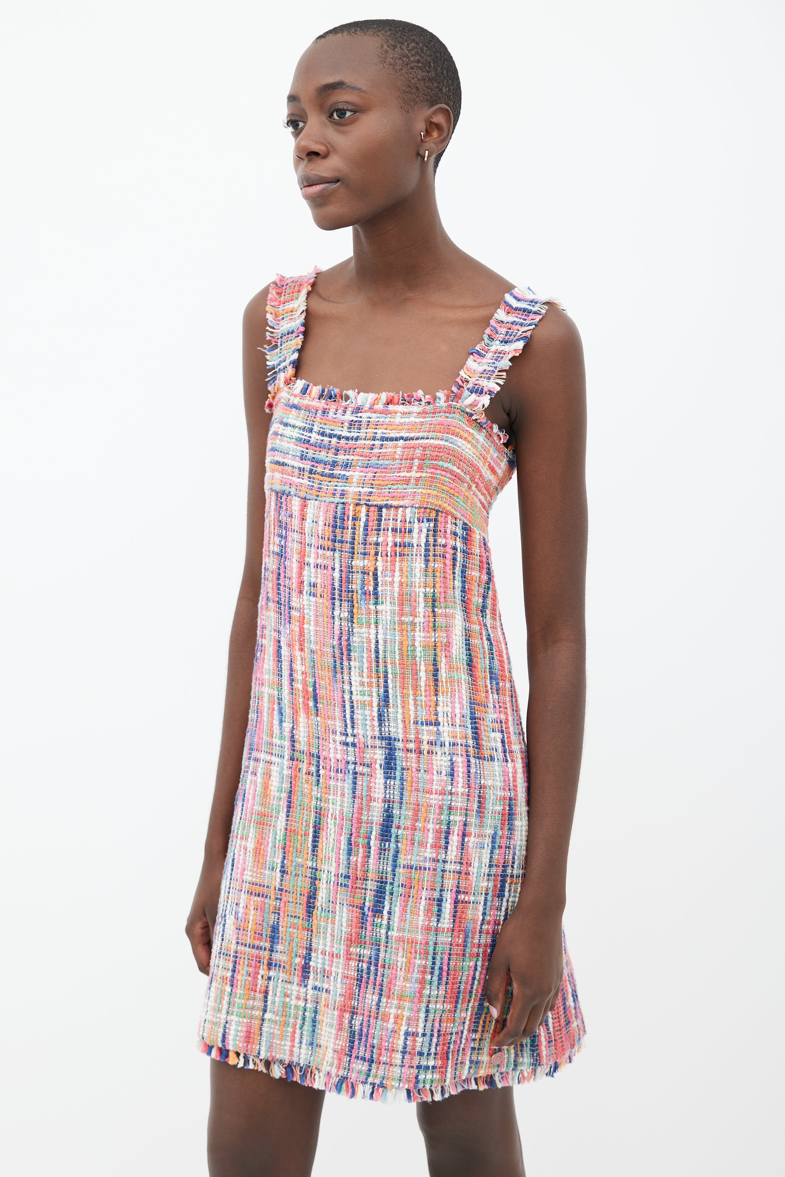 Chanel Pink & Multi Tweed Shift Mini Dress FR 36
