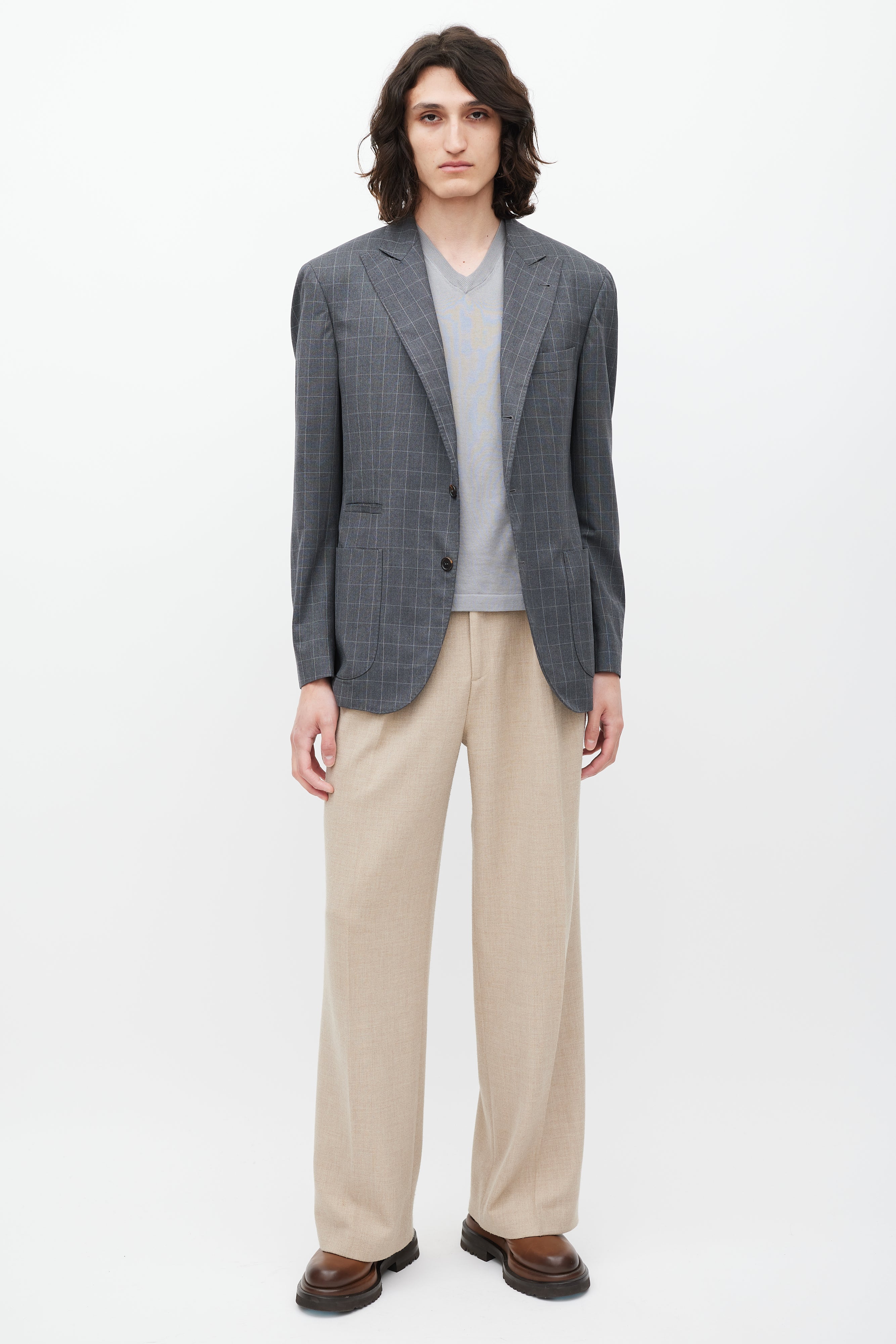 Grey Grid Patterned Wool Blazer IT 52 Size Guide