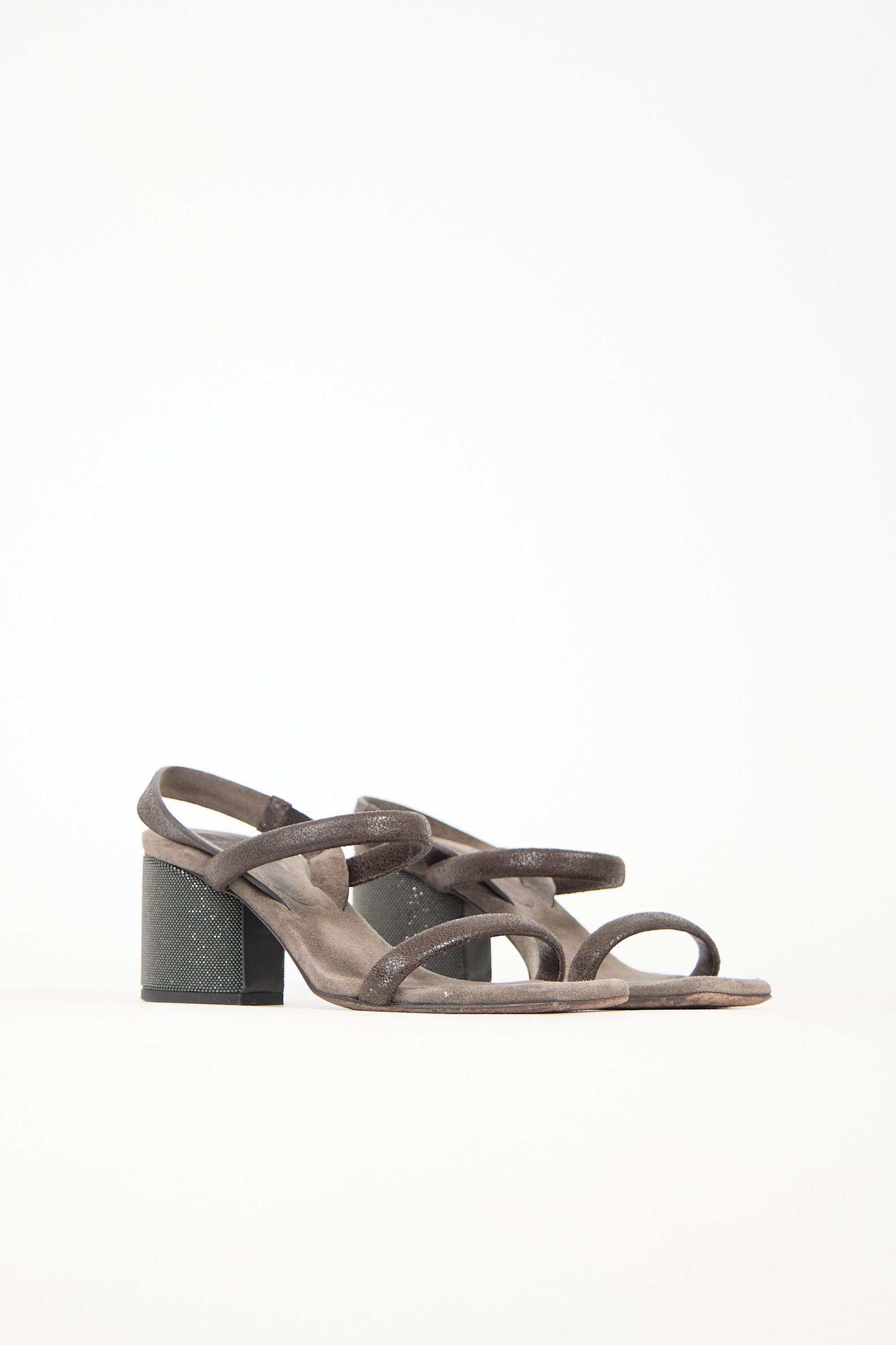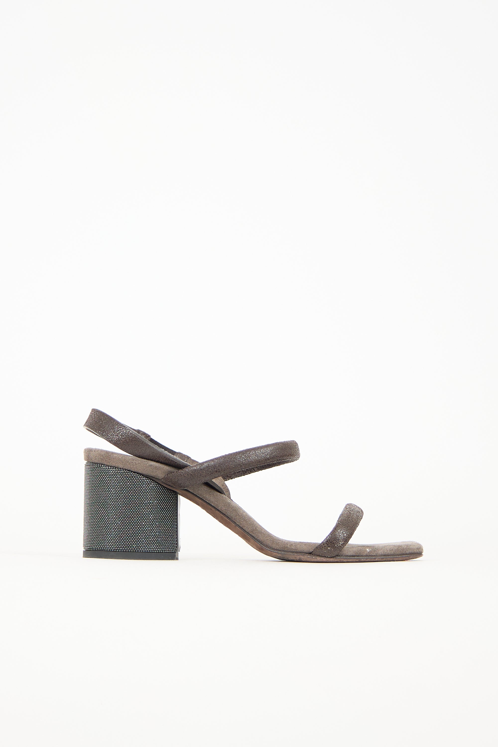 Brunello Cucinelli Suede Monili Heeled Sandal IT 37