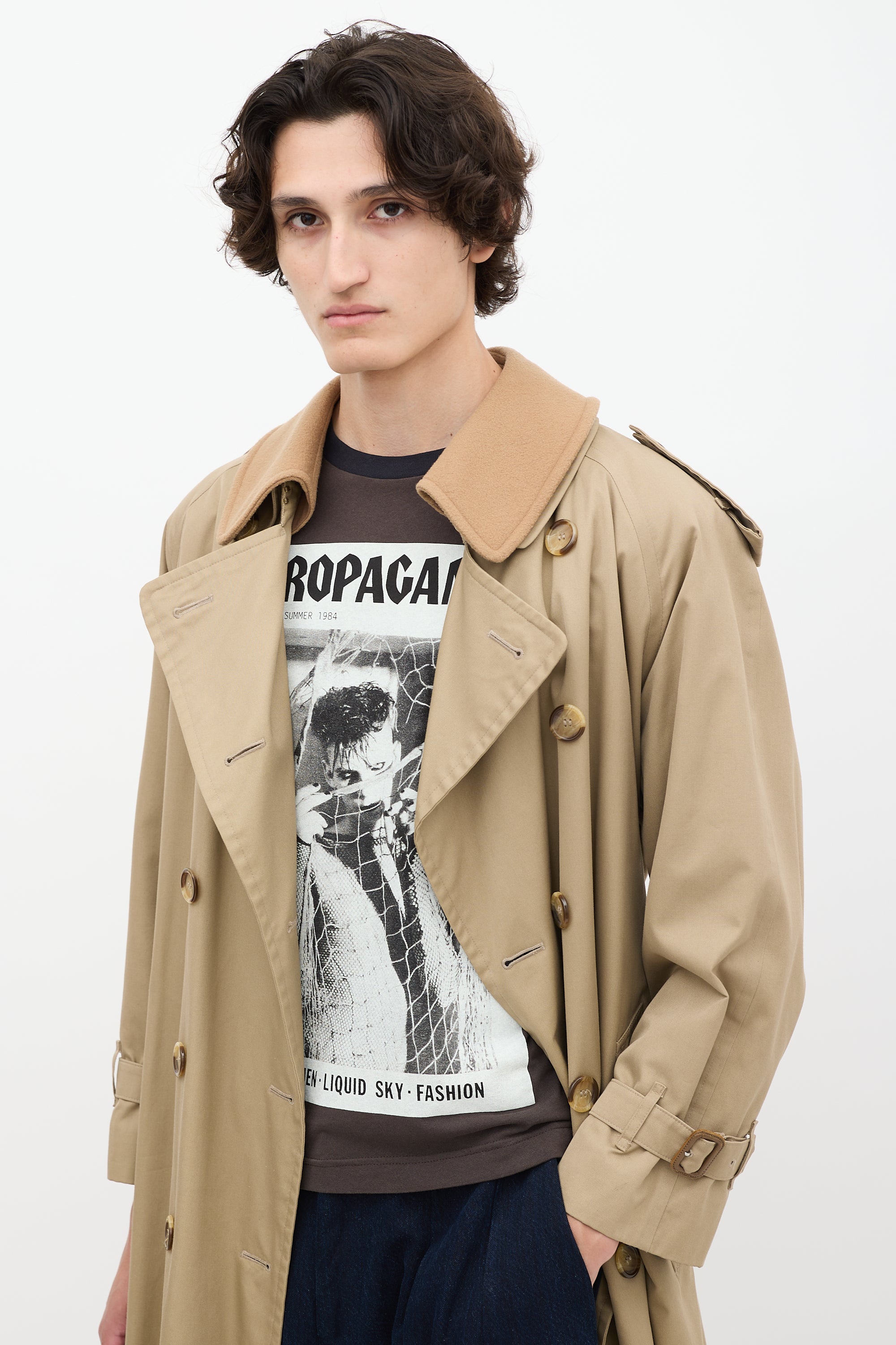 Beige Detachable Collar Belted Trench Coat Large Size Guide