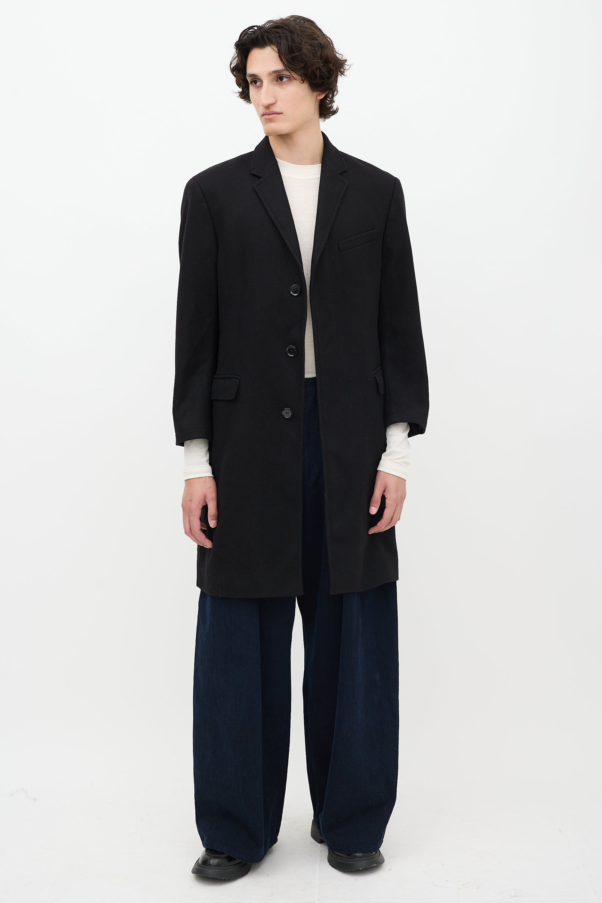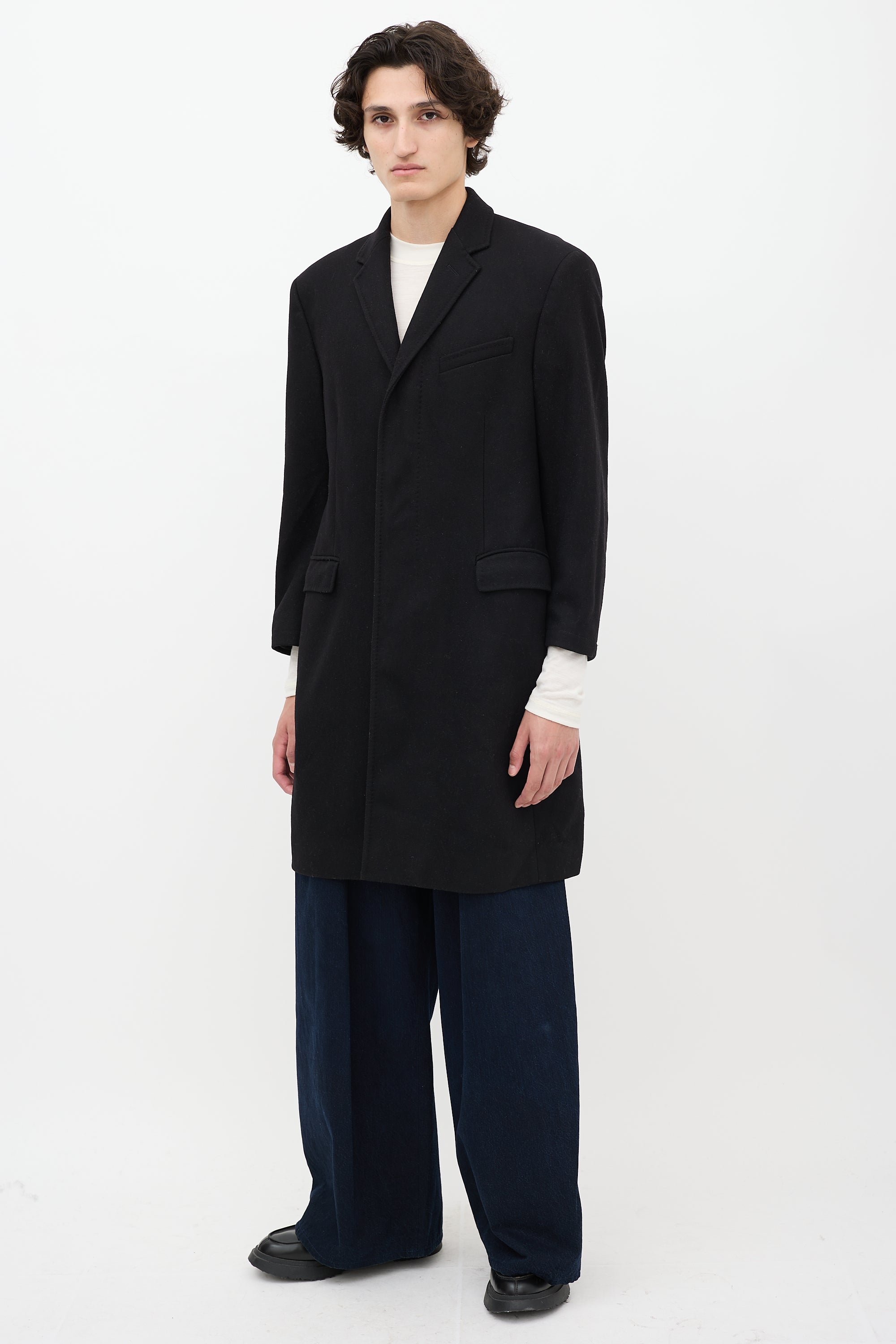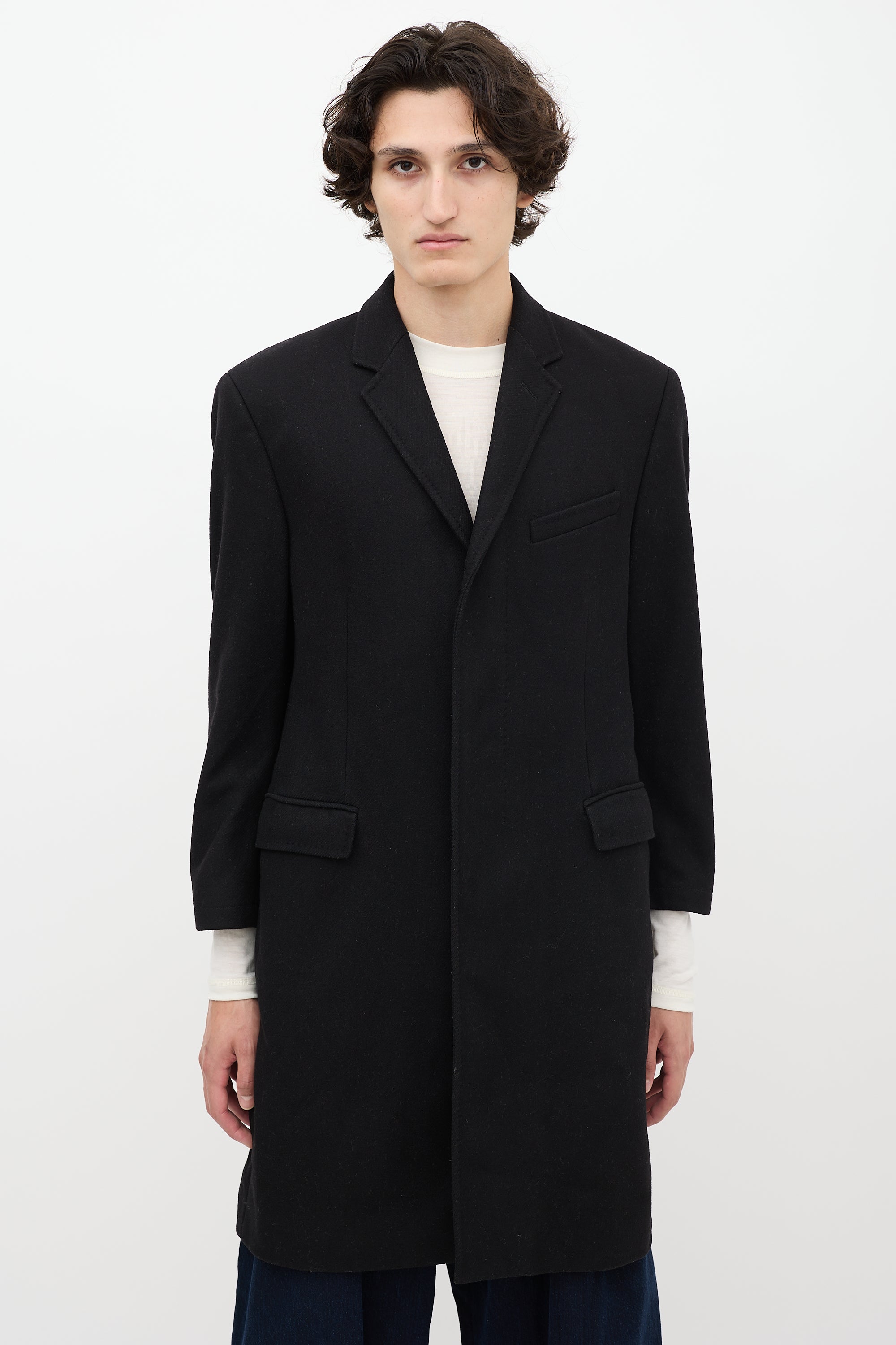 Black Wool Two Pocket Mid Length Coat IT 54 Size Guide