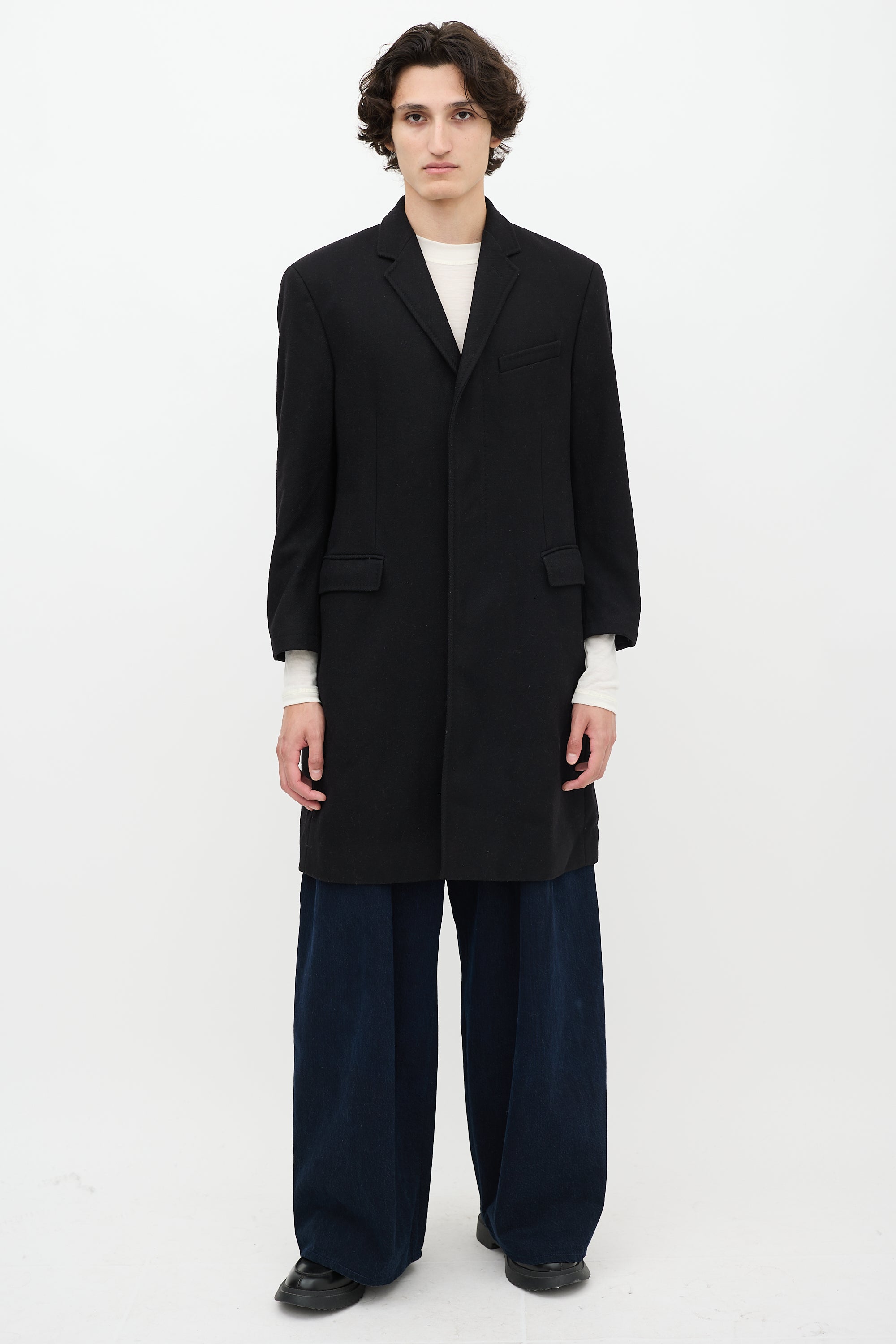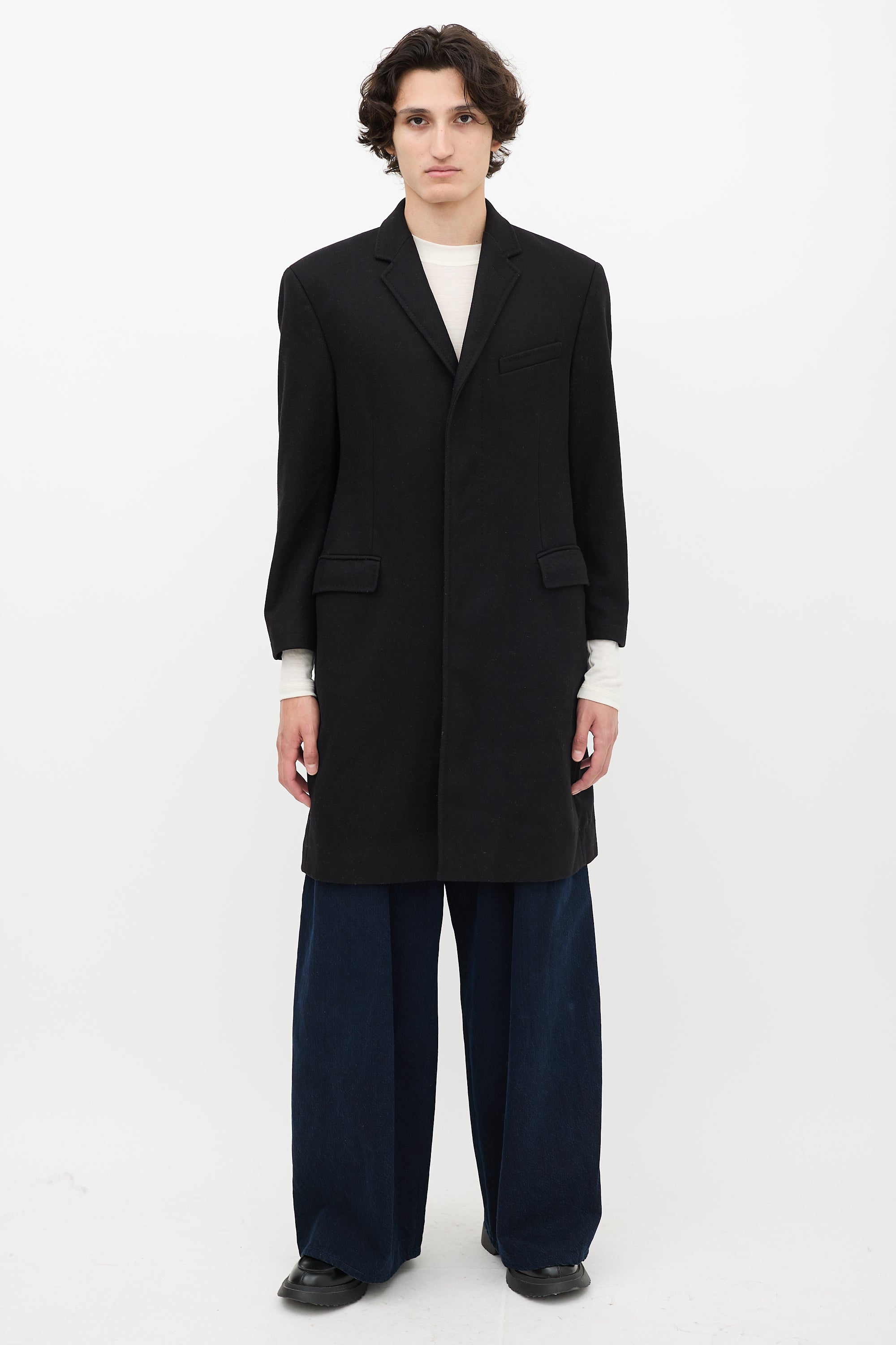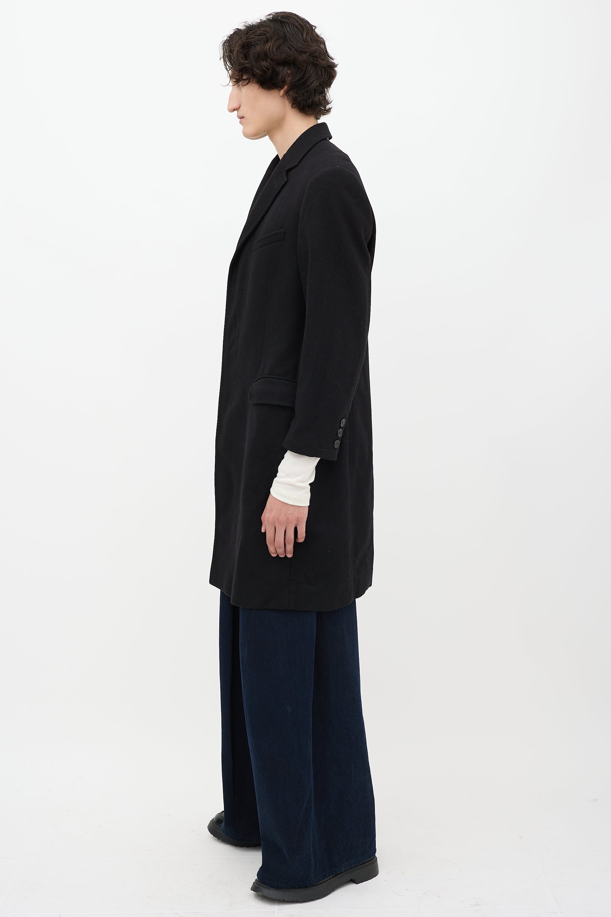 Black Wool Two Pocket Mid Length Coat IT 54 Size Guide