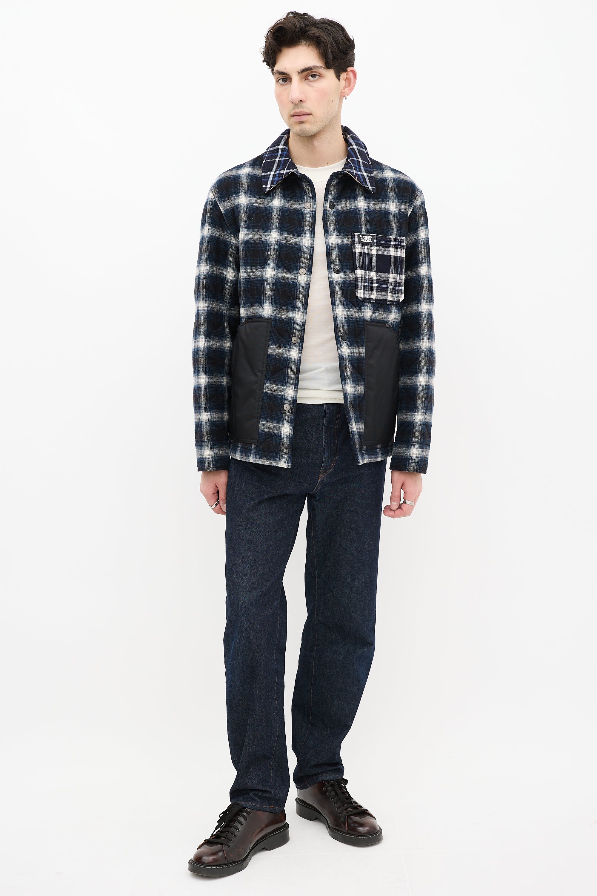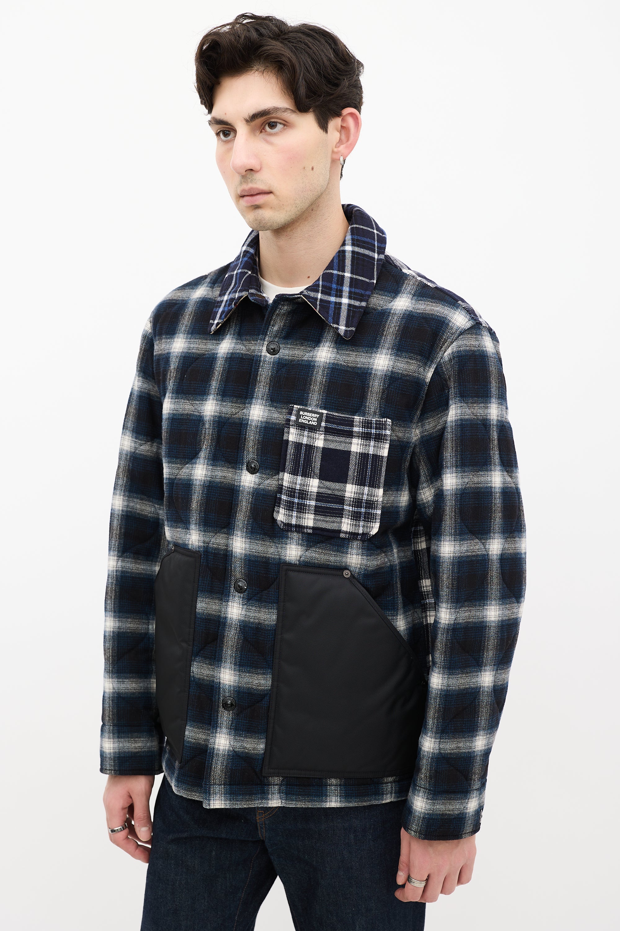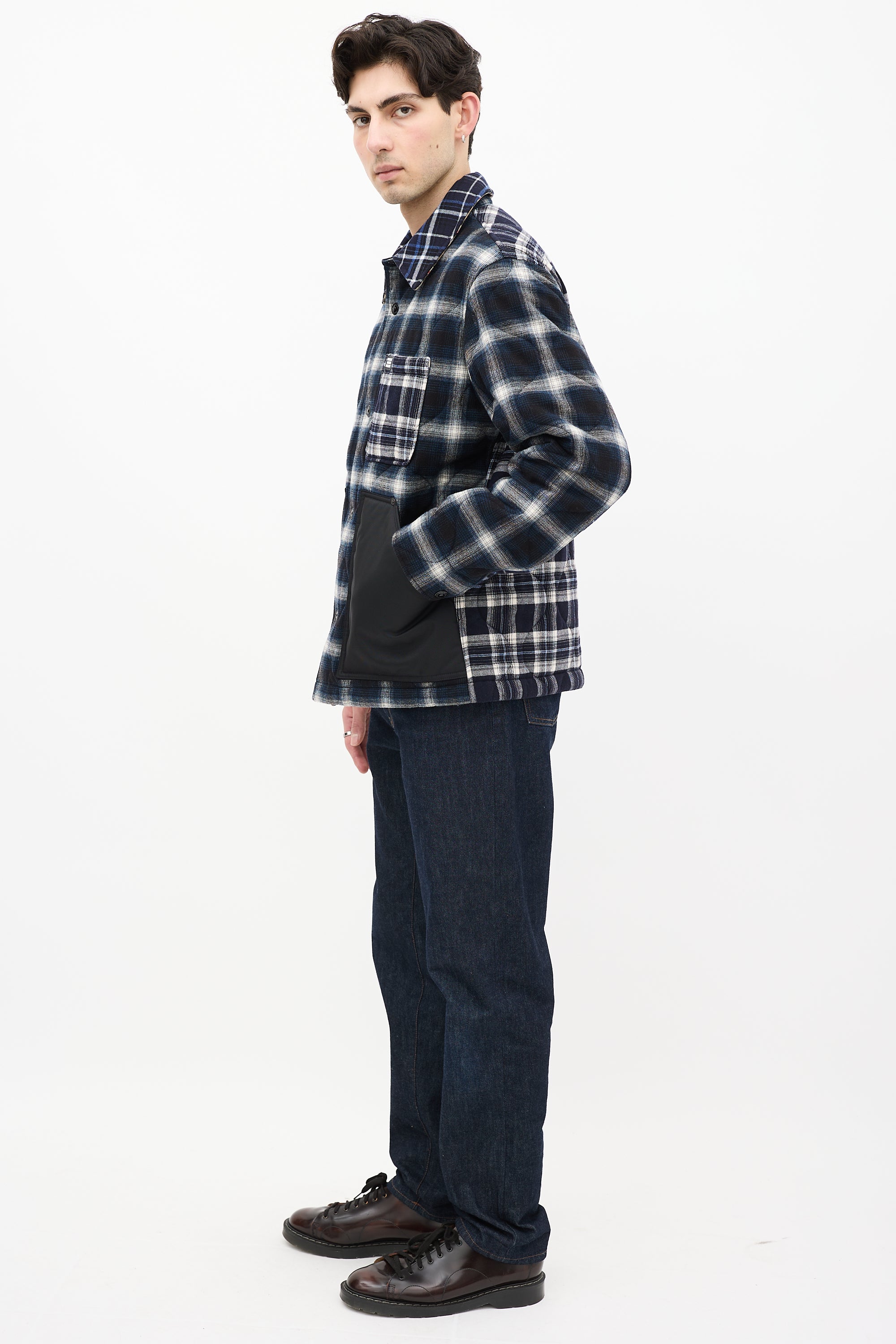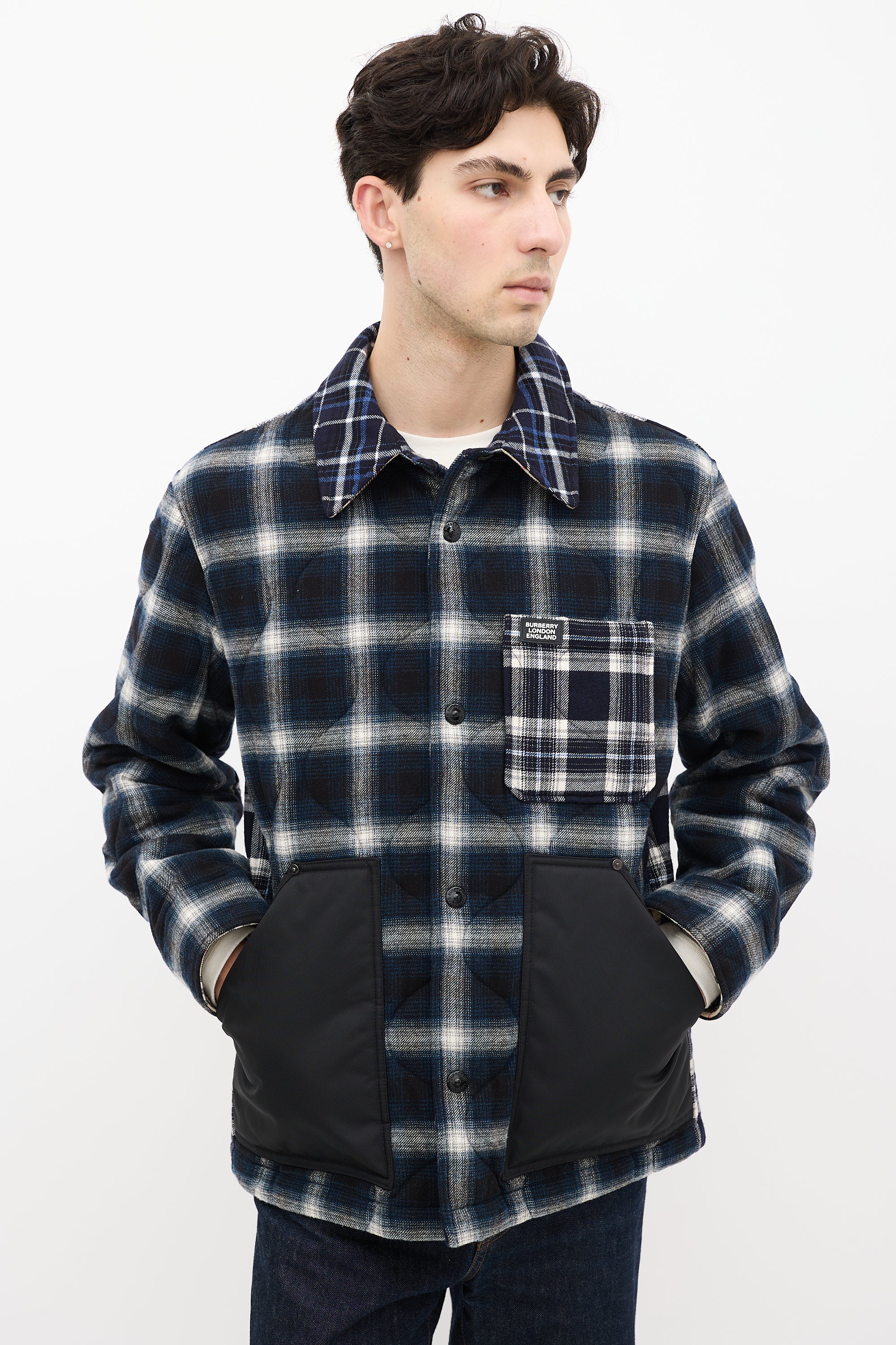 Blue & White Wool Quilted Plaid Jacket Medium Size Guide