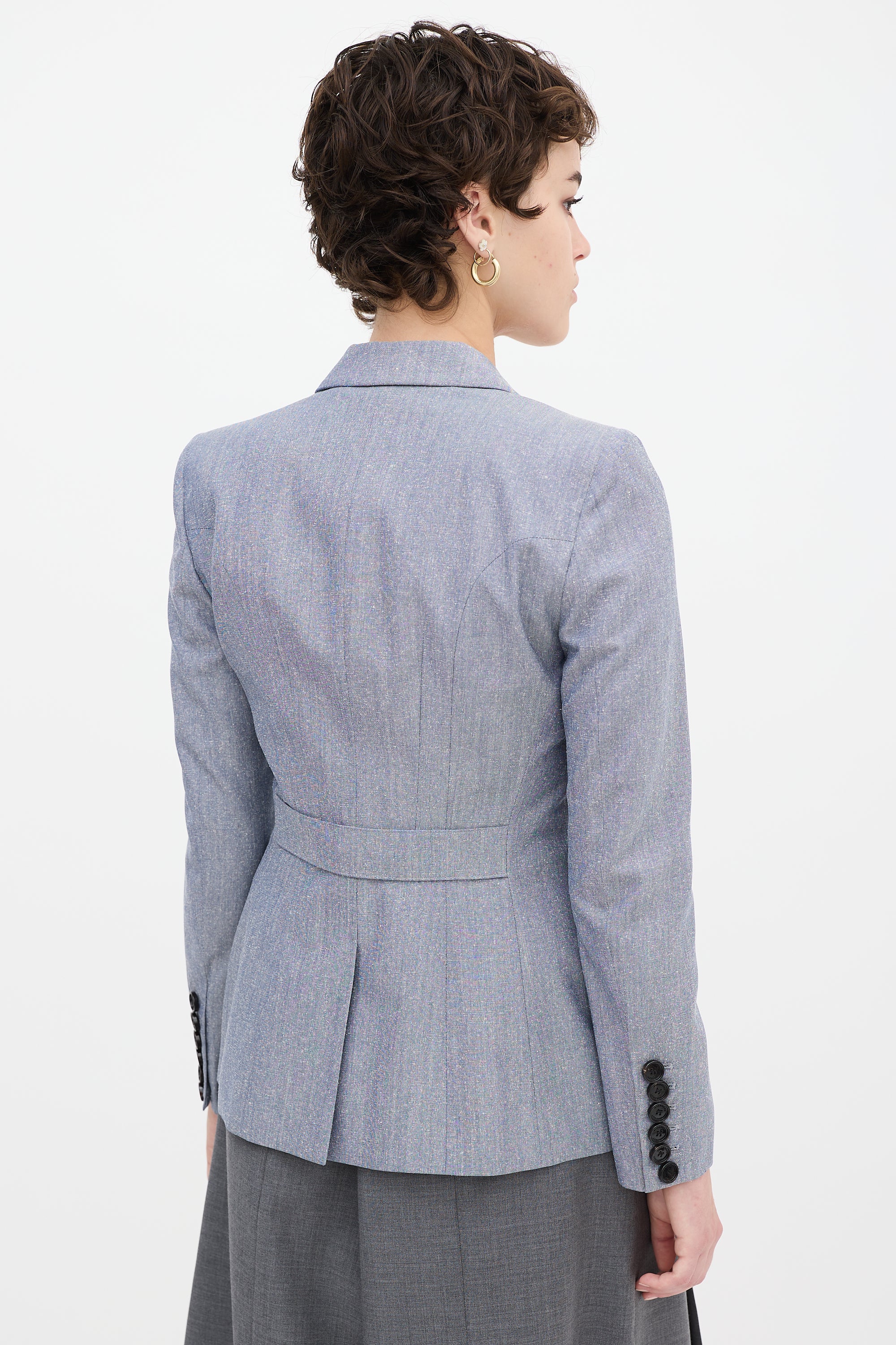 Blue Wool & Silk Three Pocket Blazer US 4 Size Guide