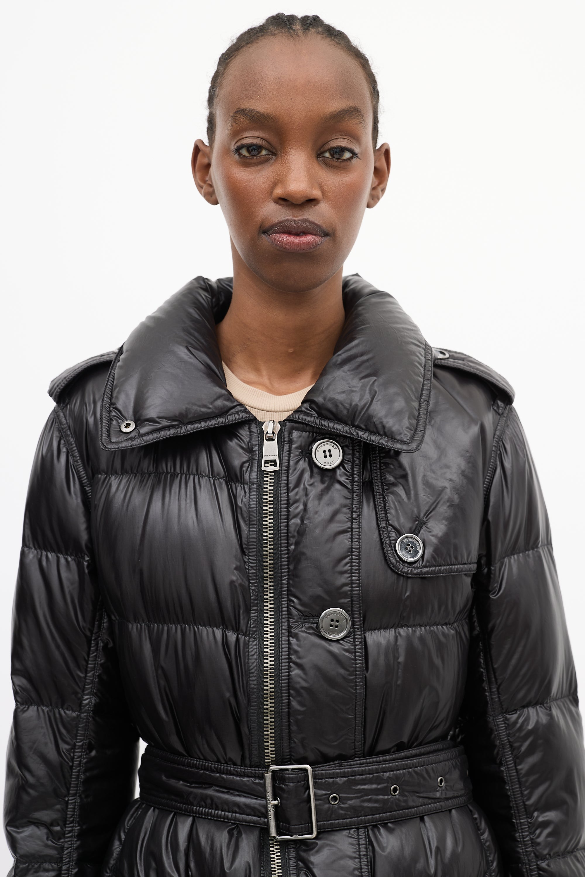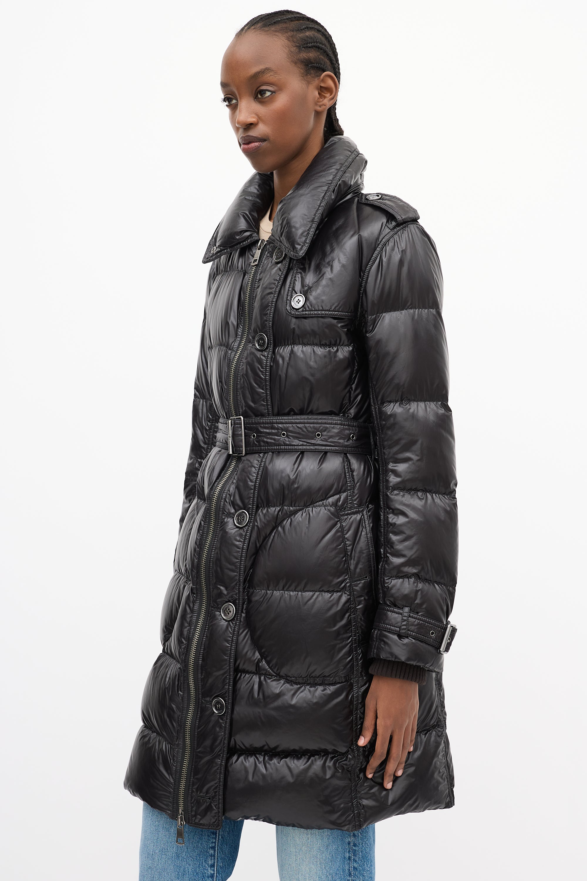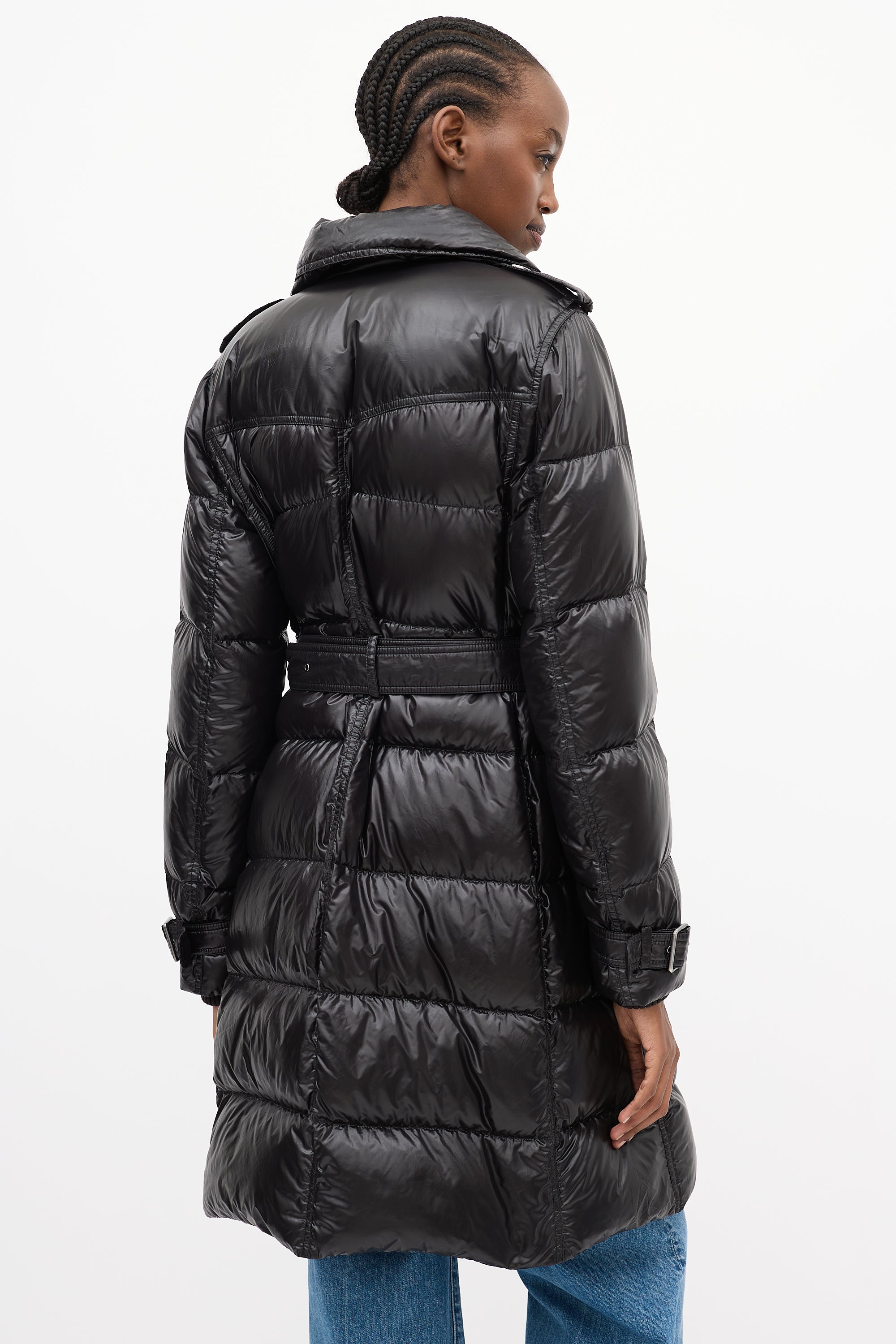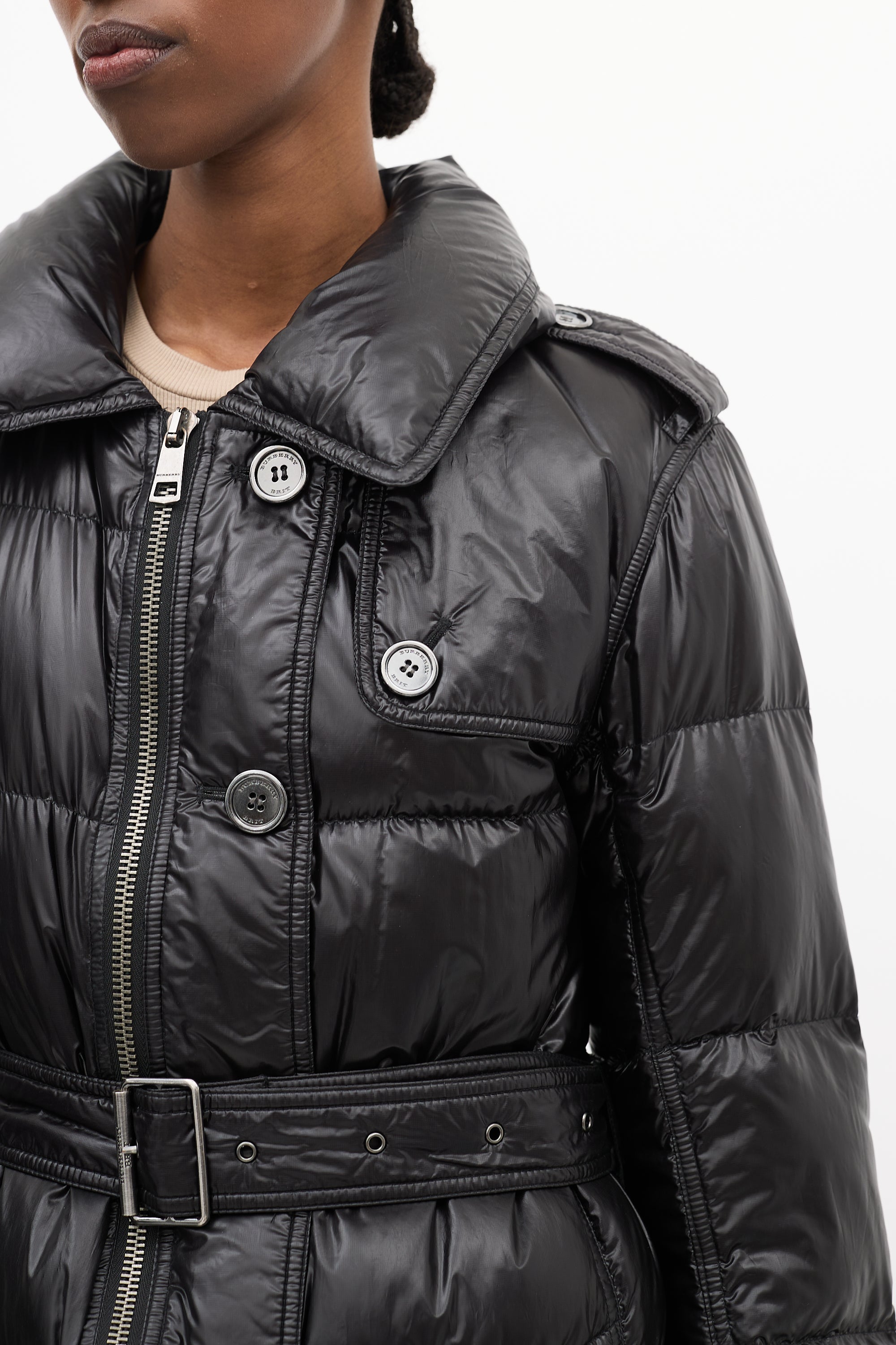 Brit Black Nylon Belted Down Puffer Coat Medium Size Guide