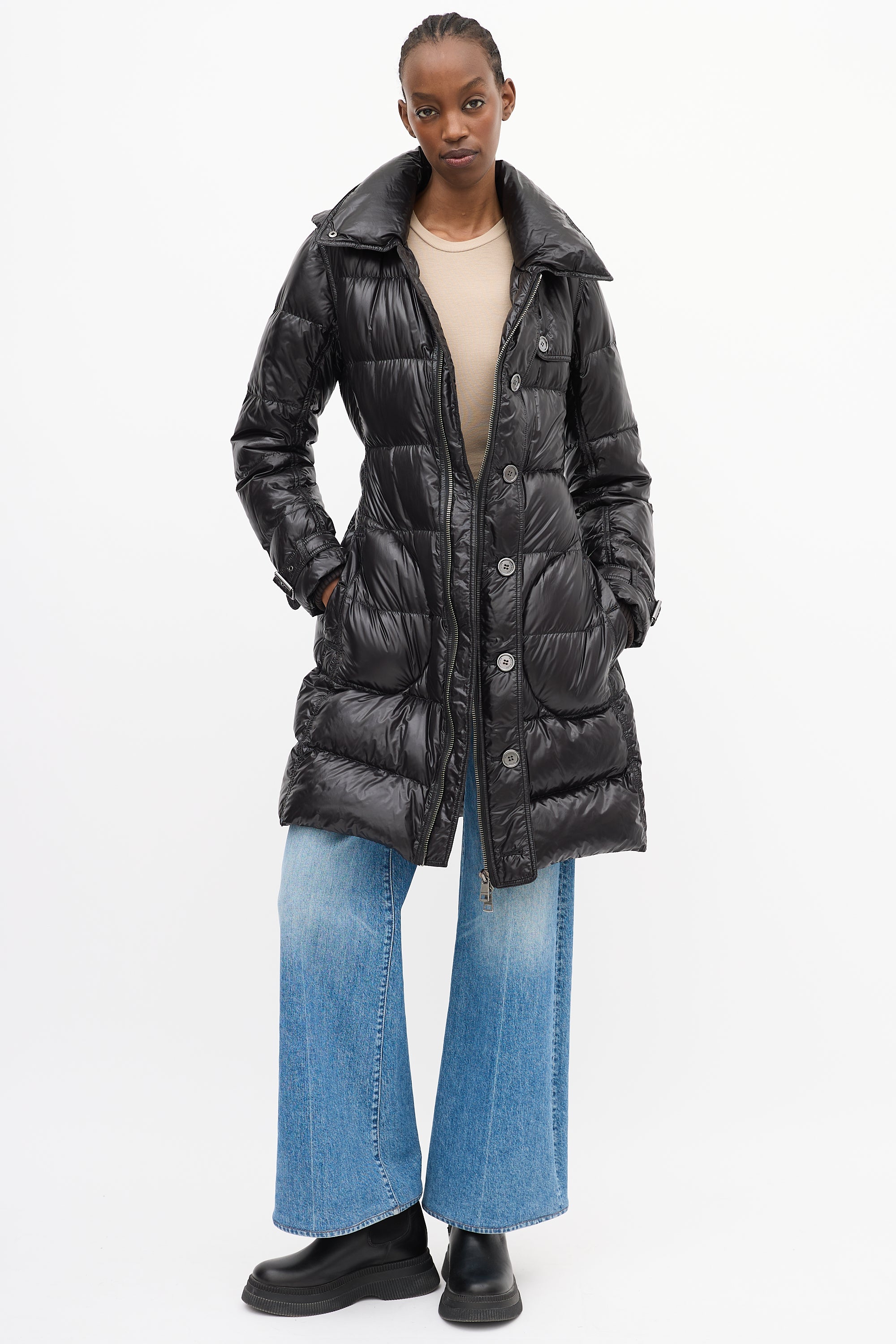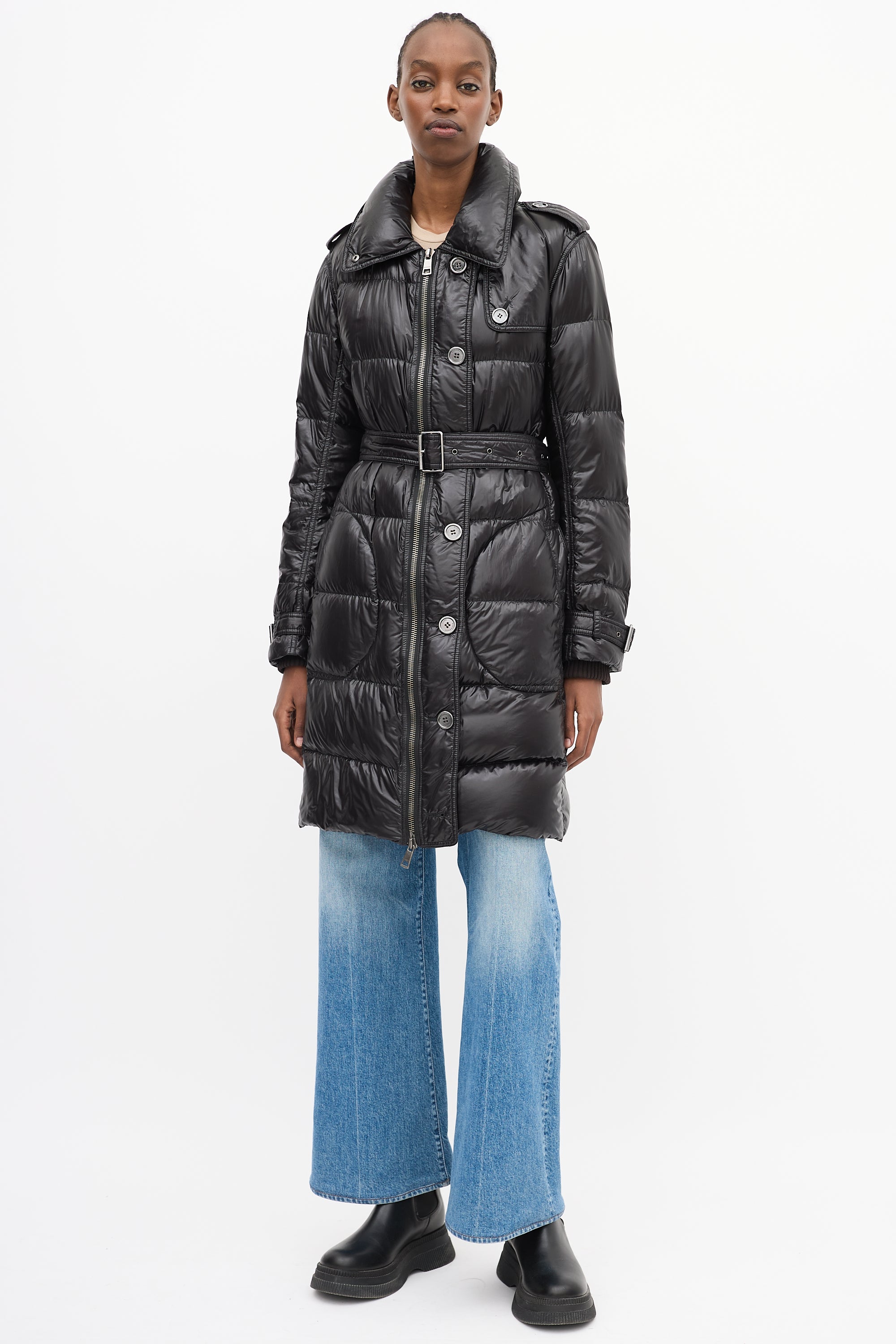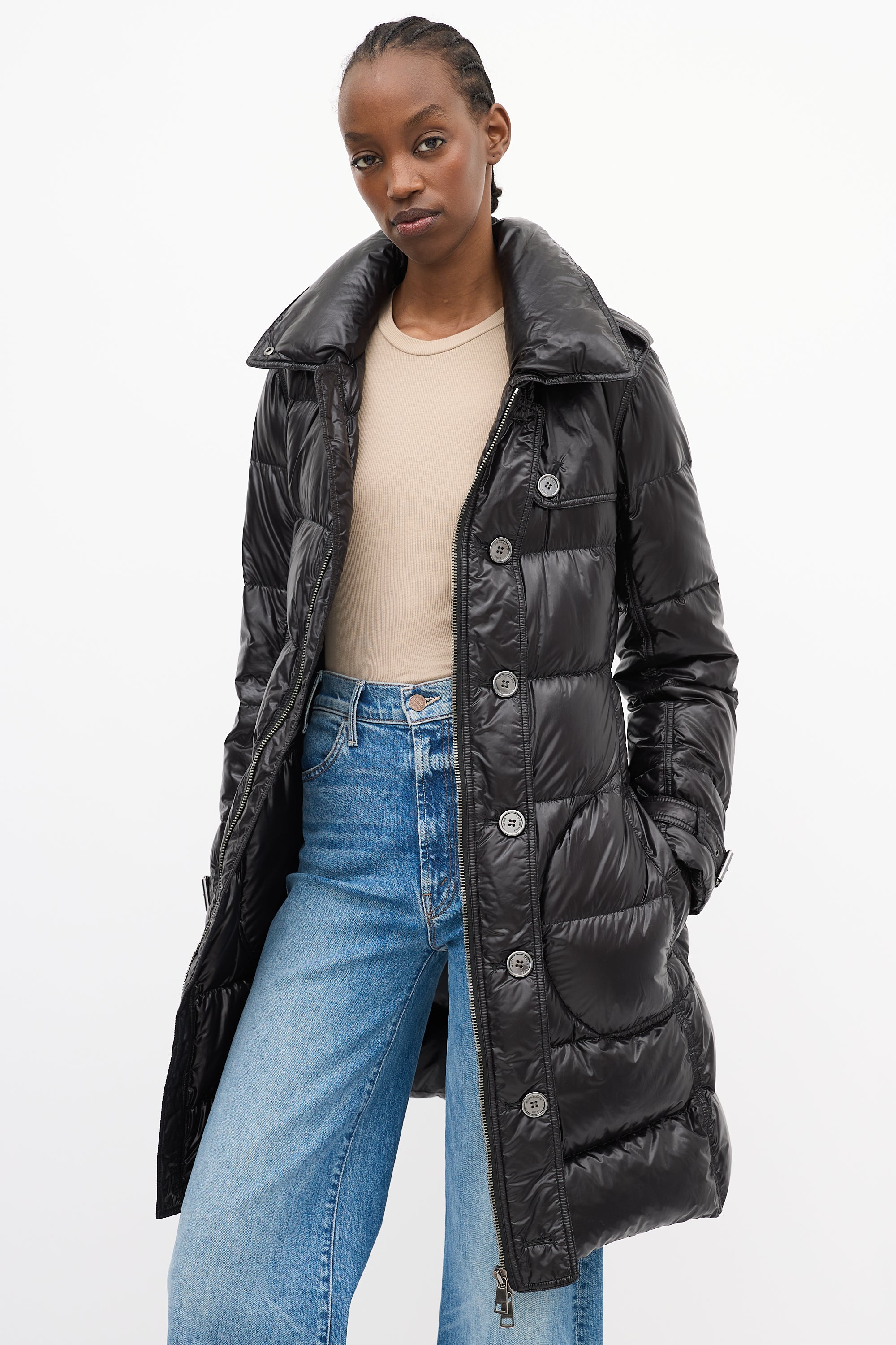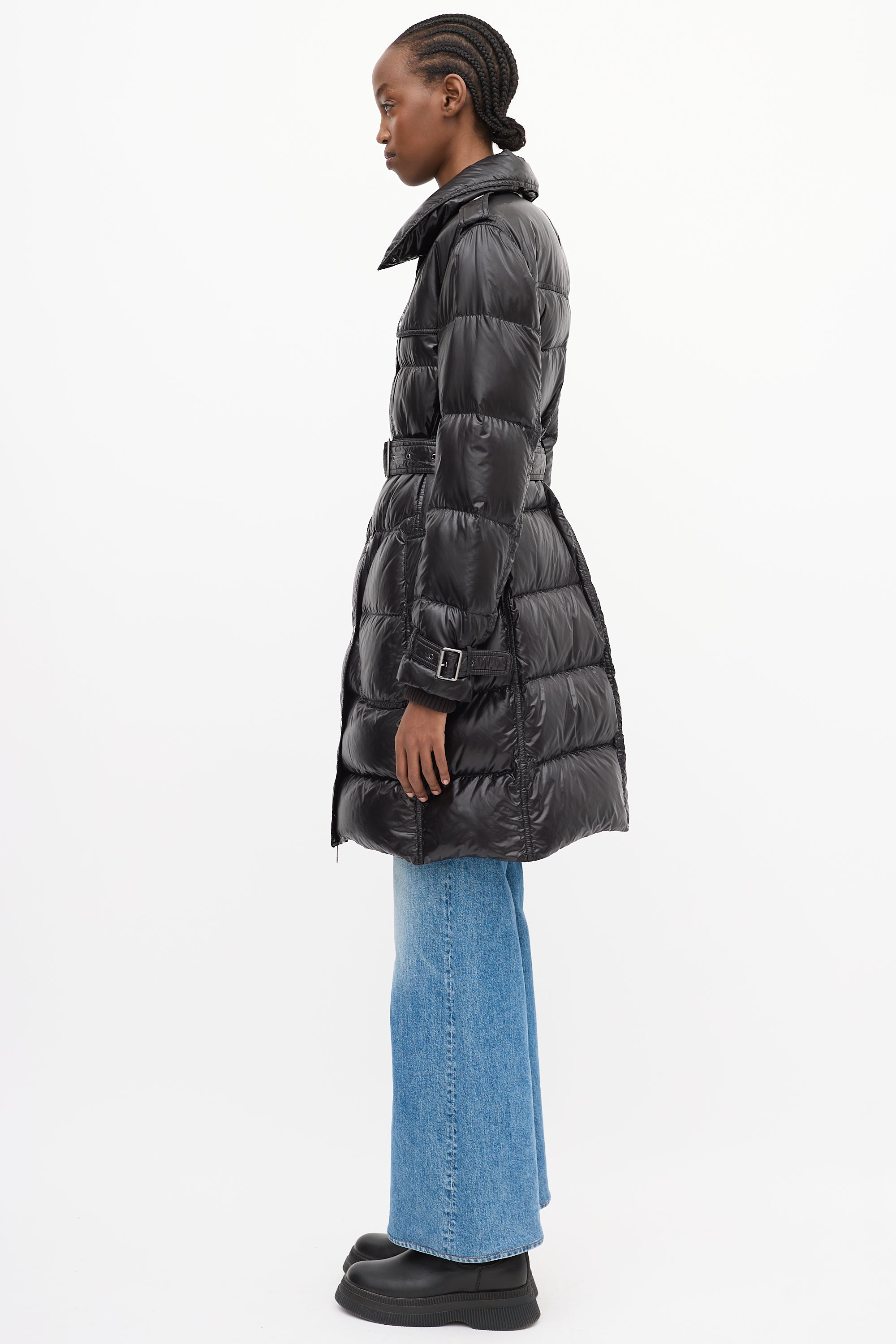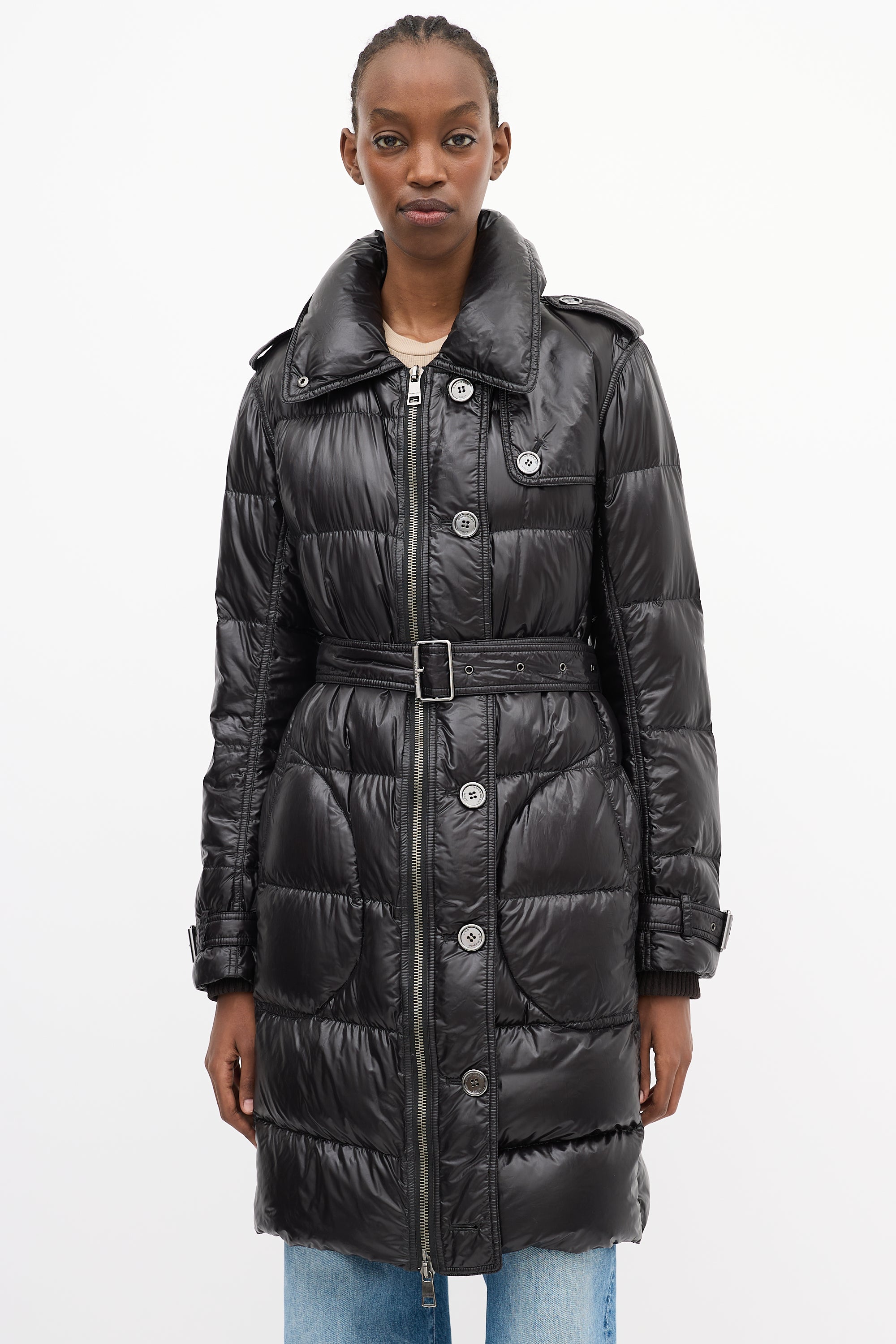 Brit Black Nylon Belted Down Puffer Coat Medium Size Guide