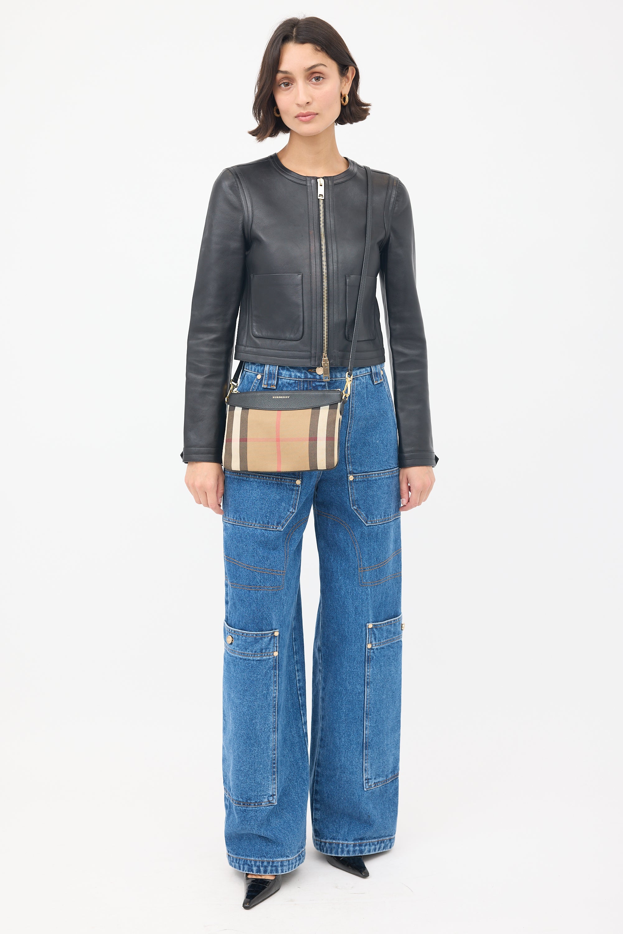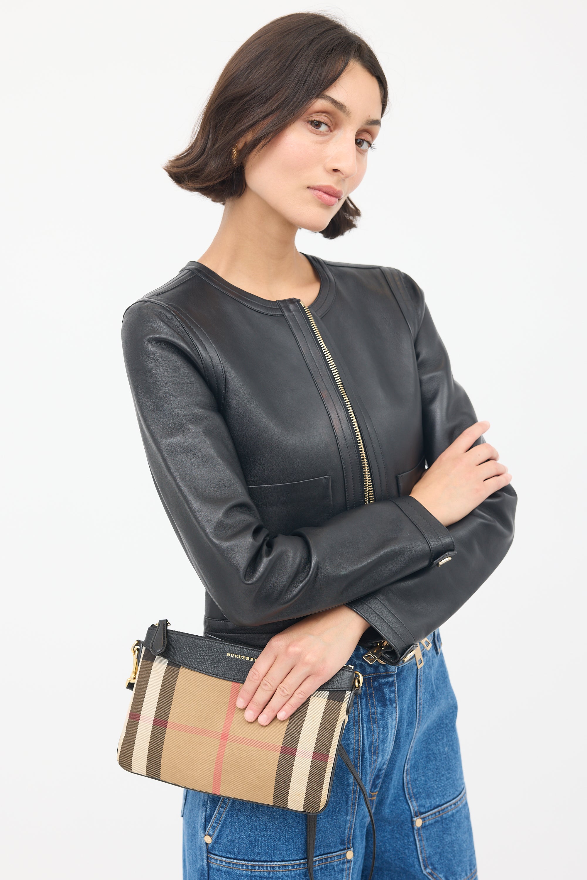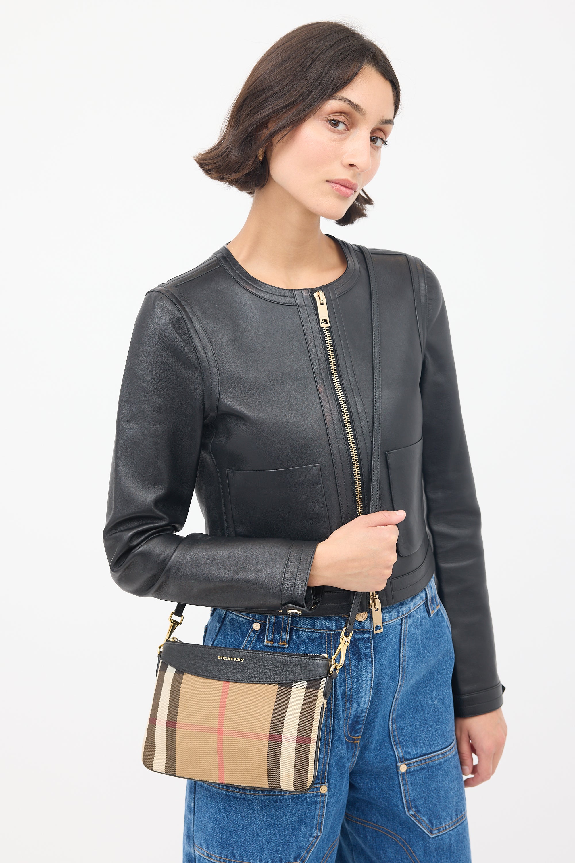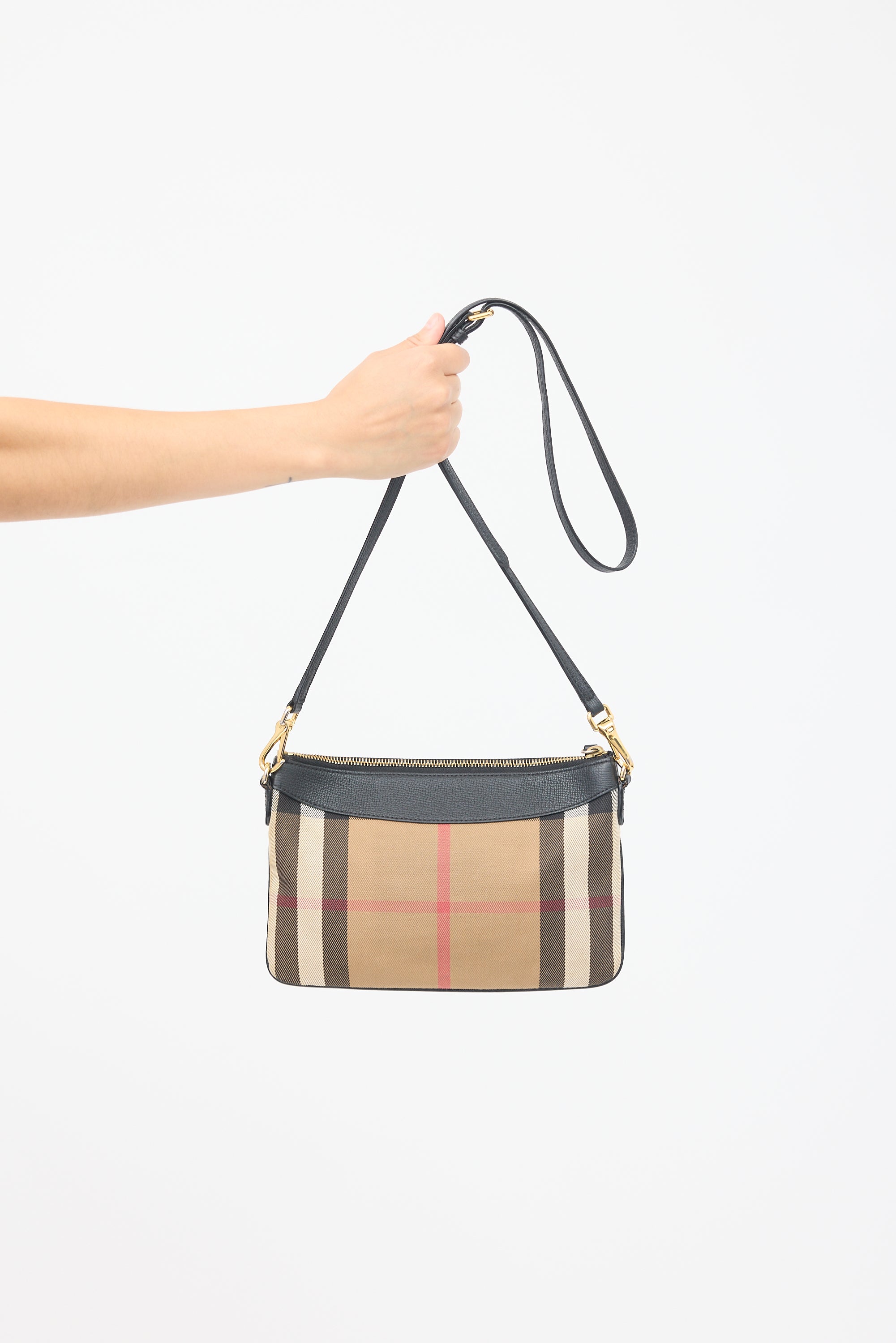 Brown & Black Canvas & Leather Peyton Nova Check Crossbody Bag