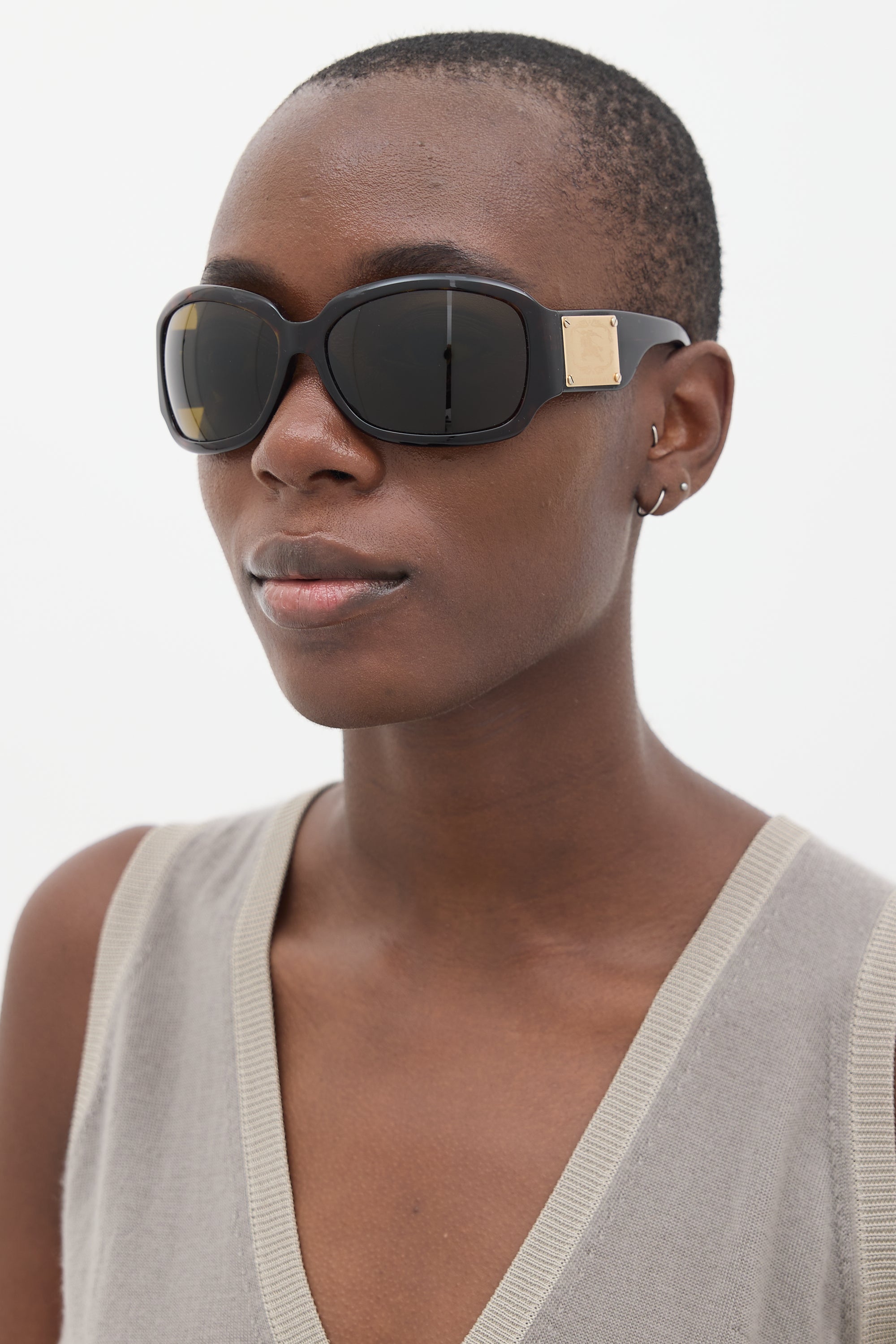 Brown Marbled B4035 Plaque Rectangle Sunglasses