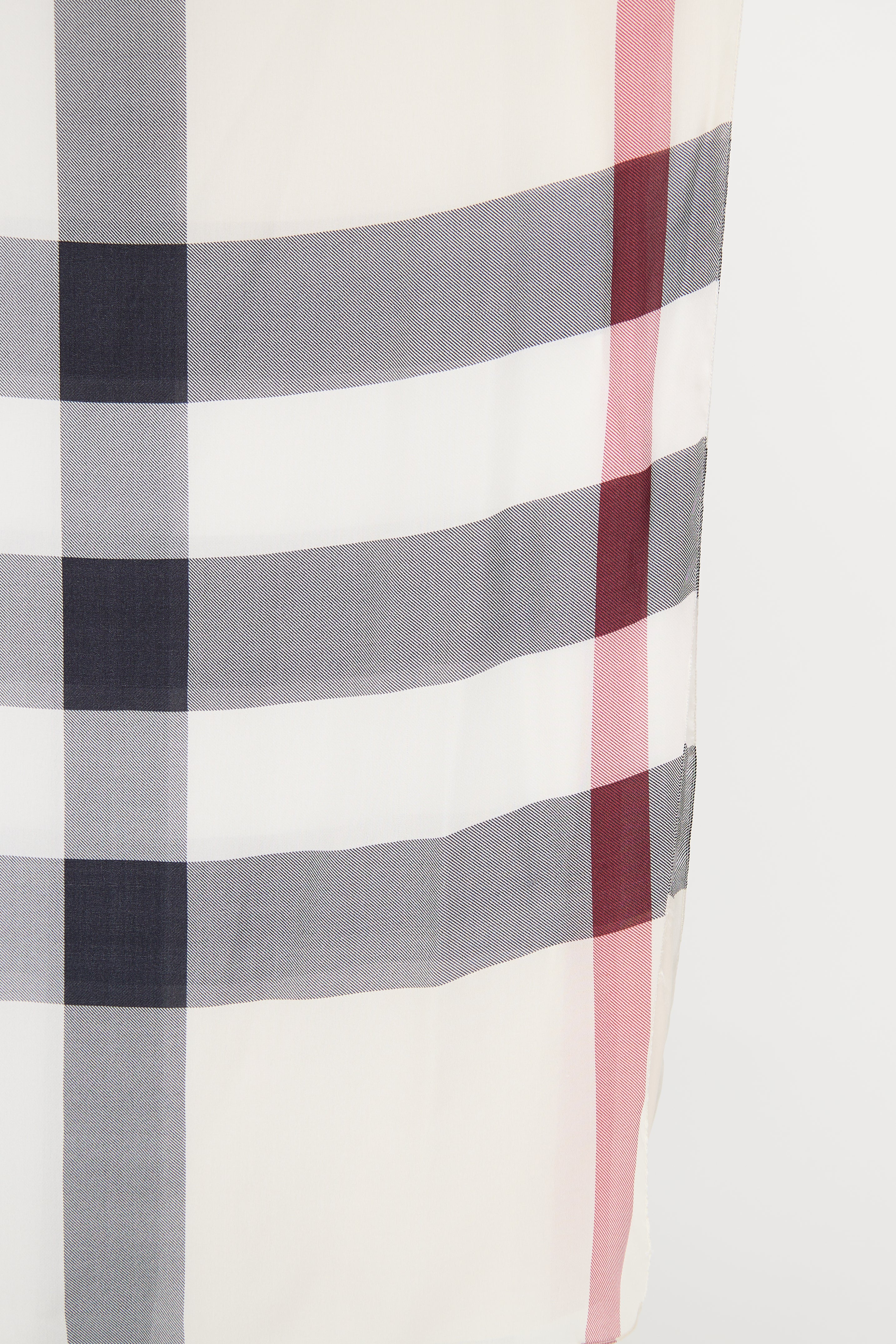 Pre-owned Burberry cream multicolour scarf featuring signature House Check print and semi seer finish.