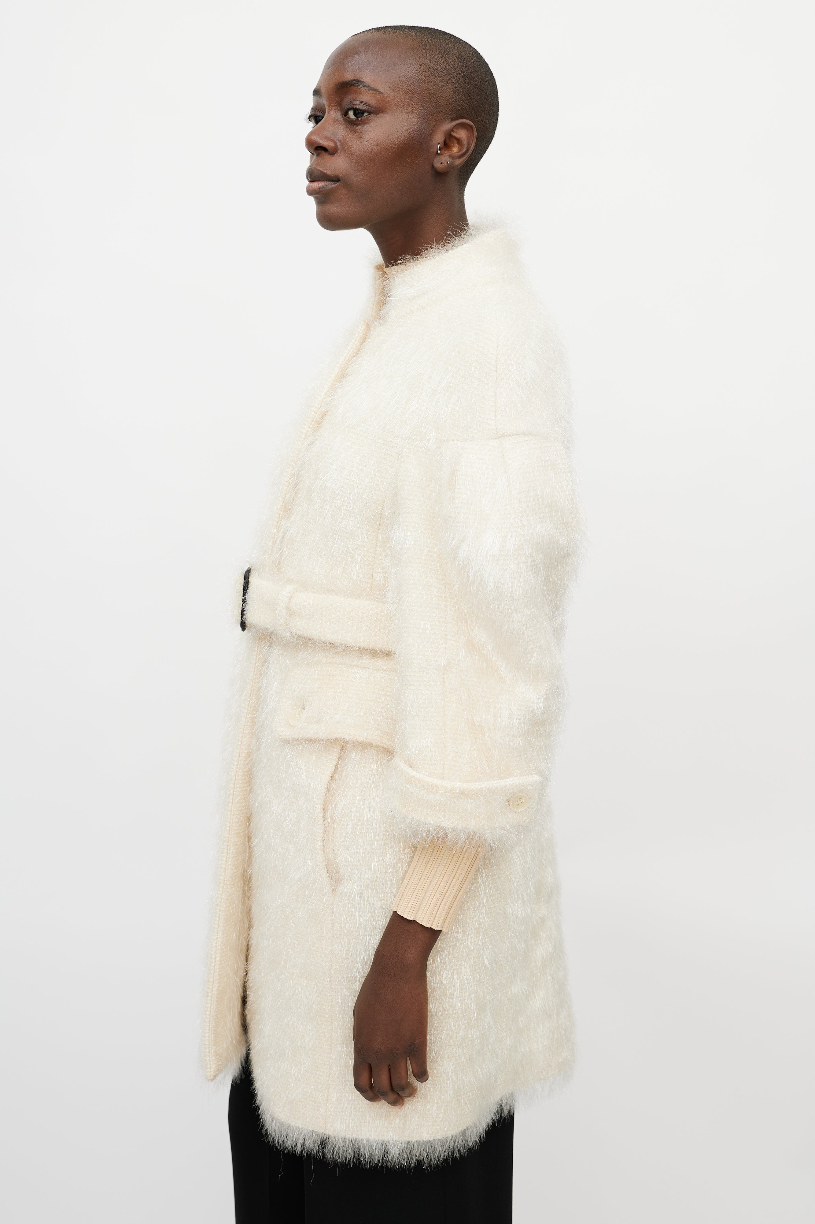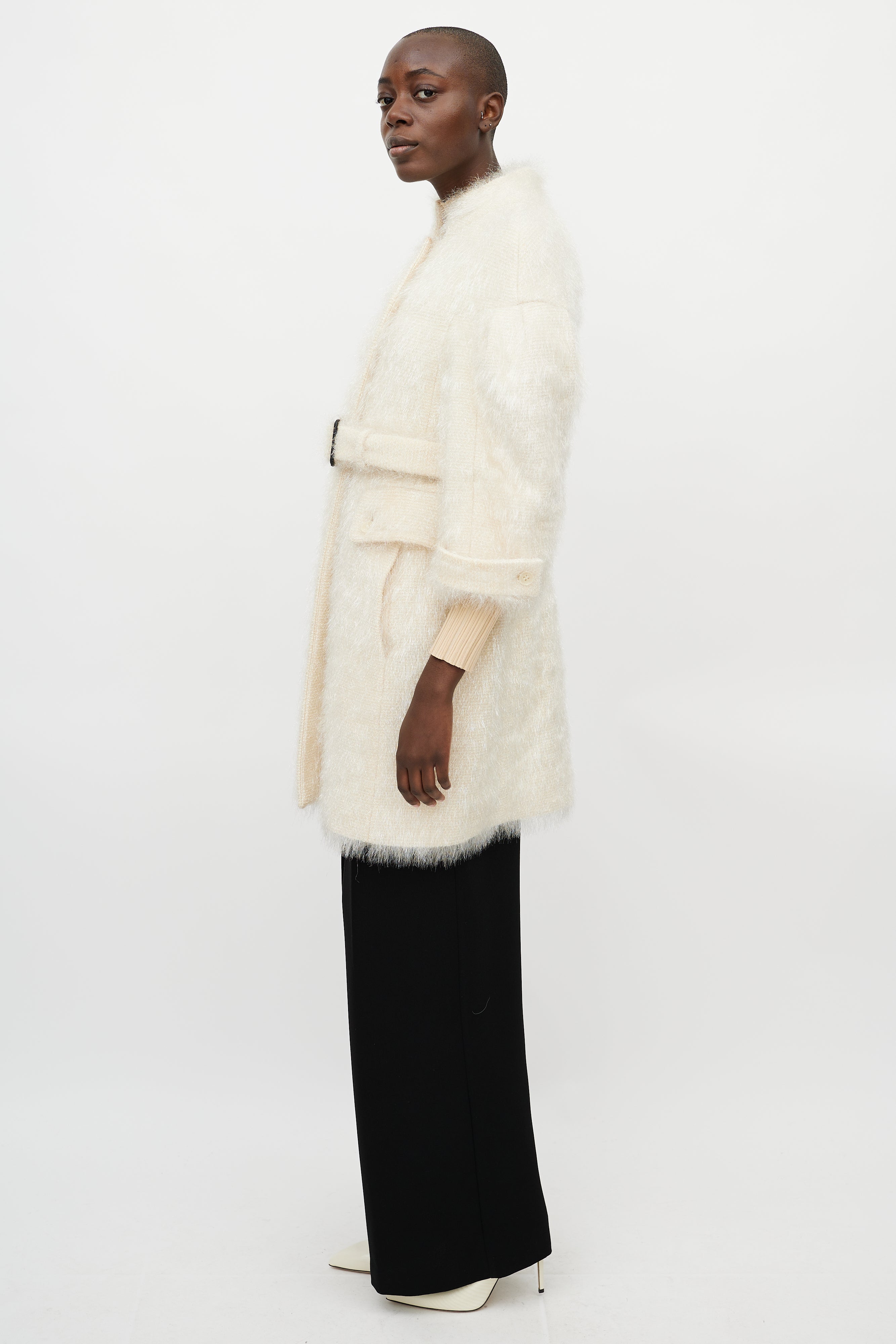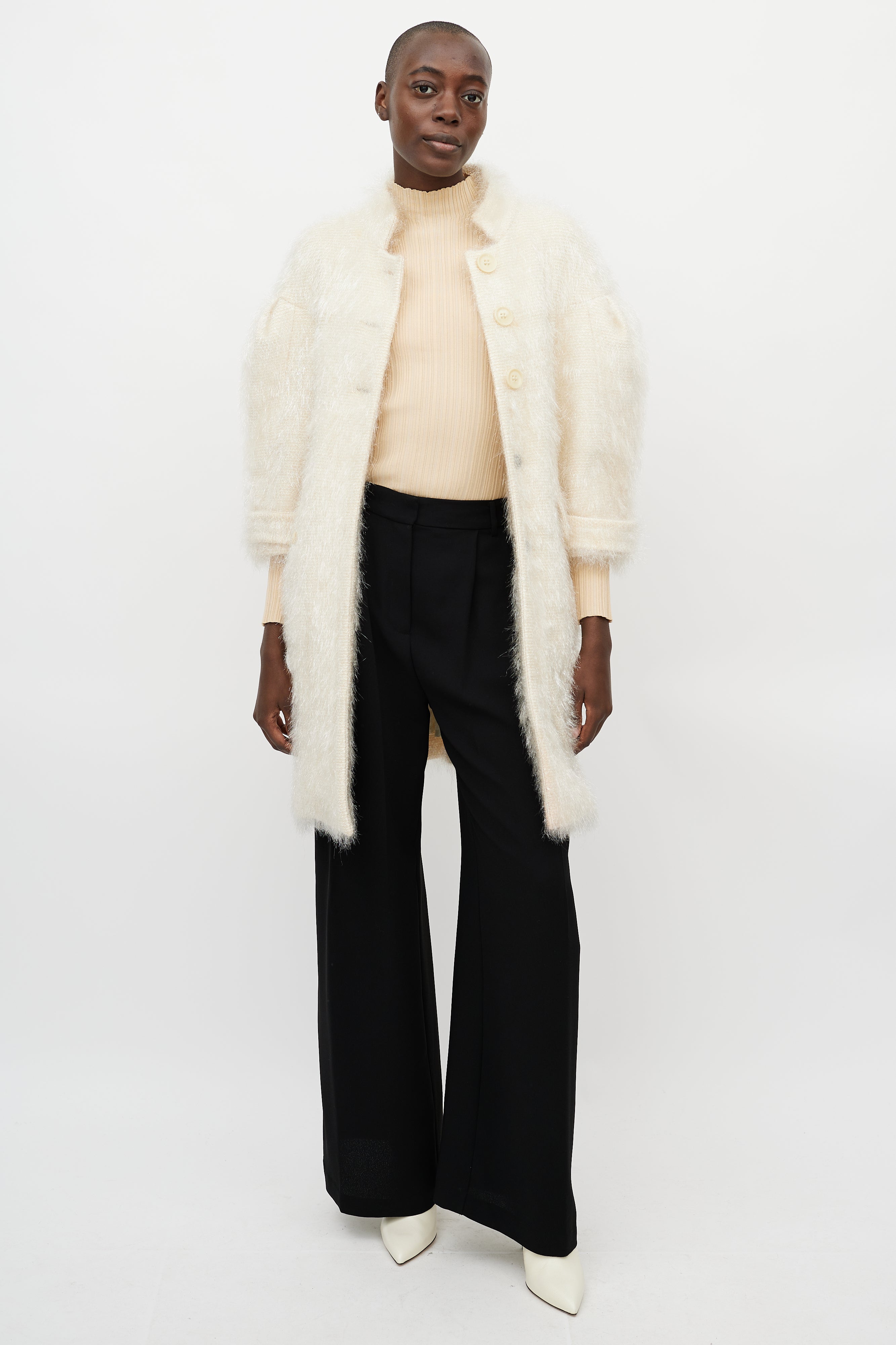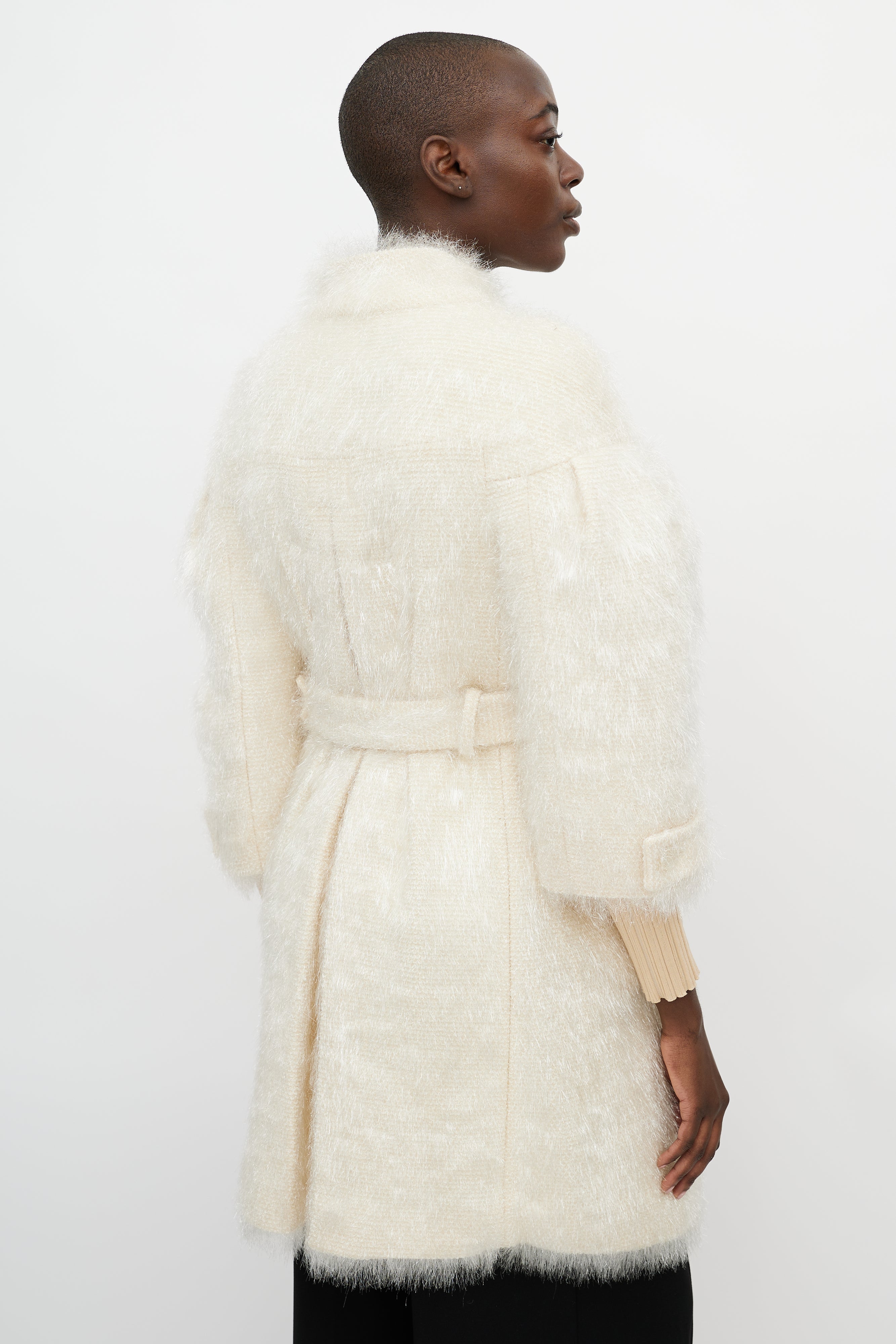Cream Wool & Nylon Metallic Shag Coat IT 36 Size Guide