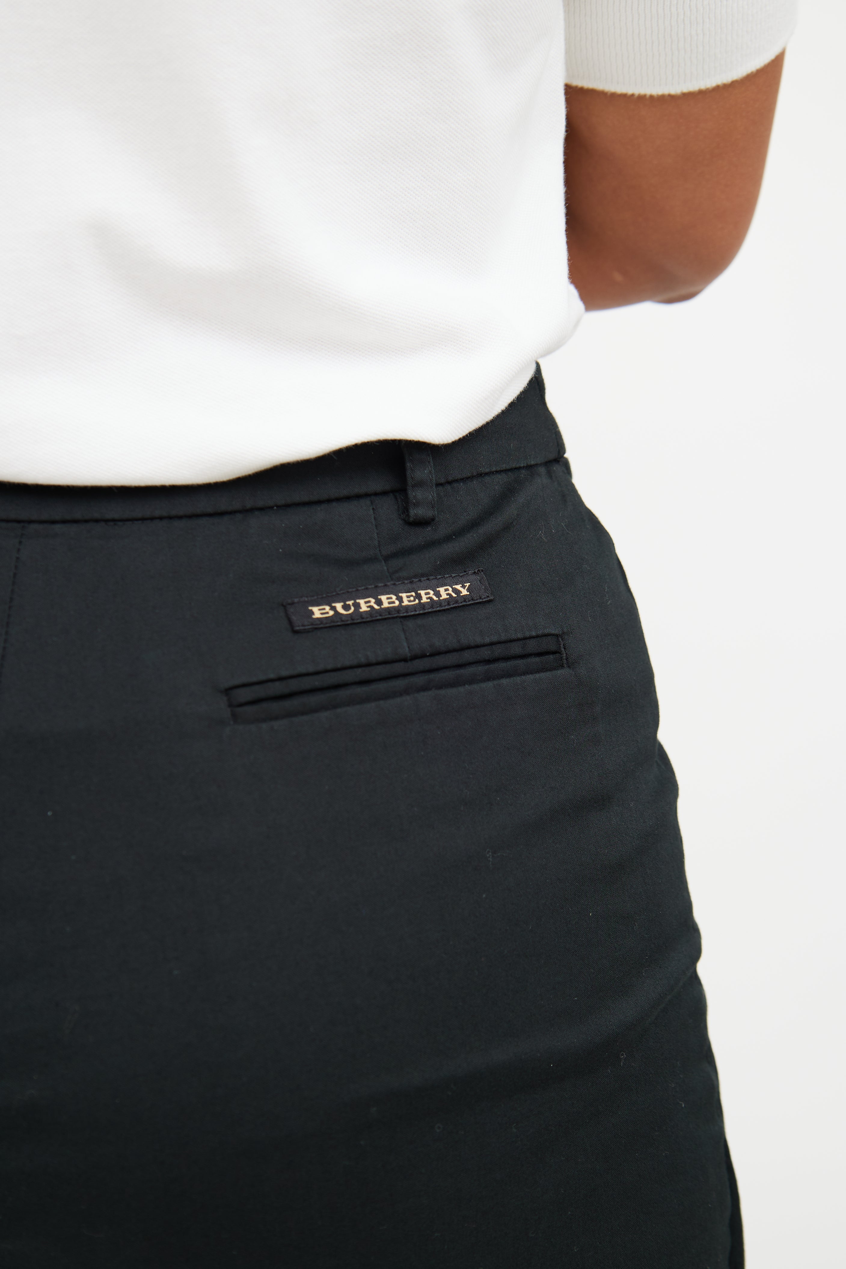 Pre-owned Burberry skort featuring belt loops on waist, wrap fit with button closure, signature check print trim, single slip pocket on right skirt centre, single slip pocket on left side hip and single slip pocket on back with logo text embroidery above pocket.
