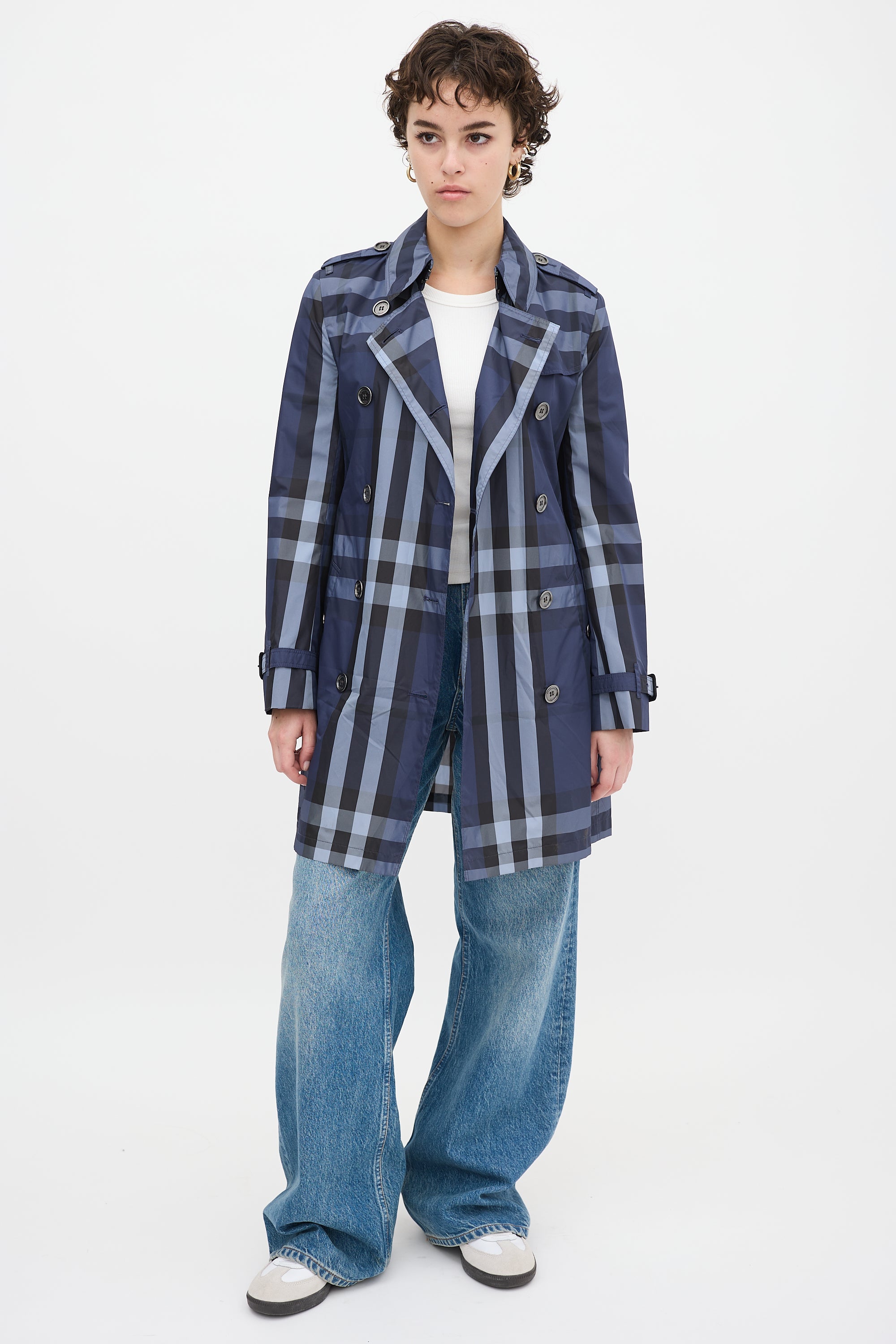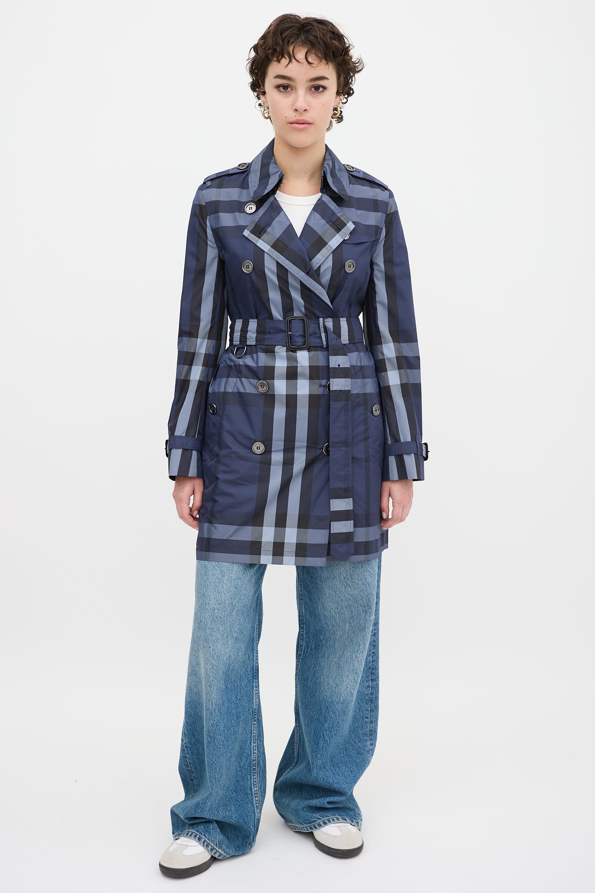 Navy Nova Check Belted Midi Trench Coat US 4 Size Guide