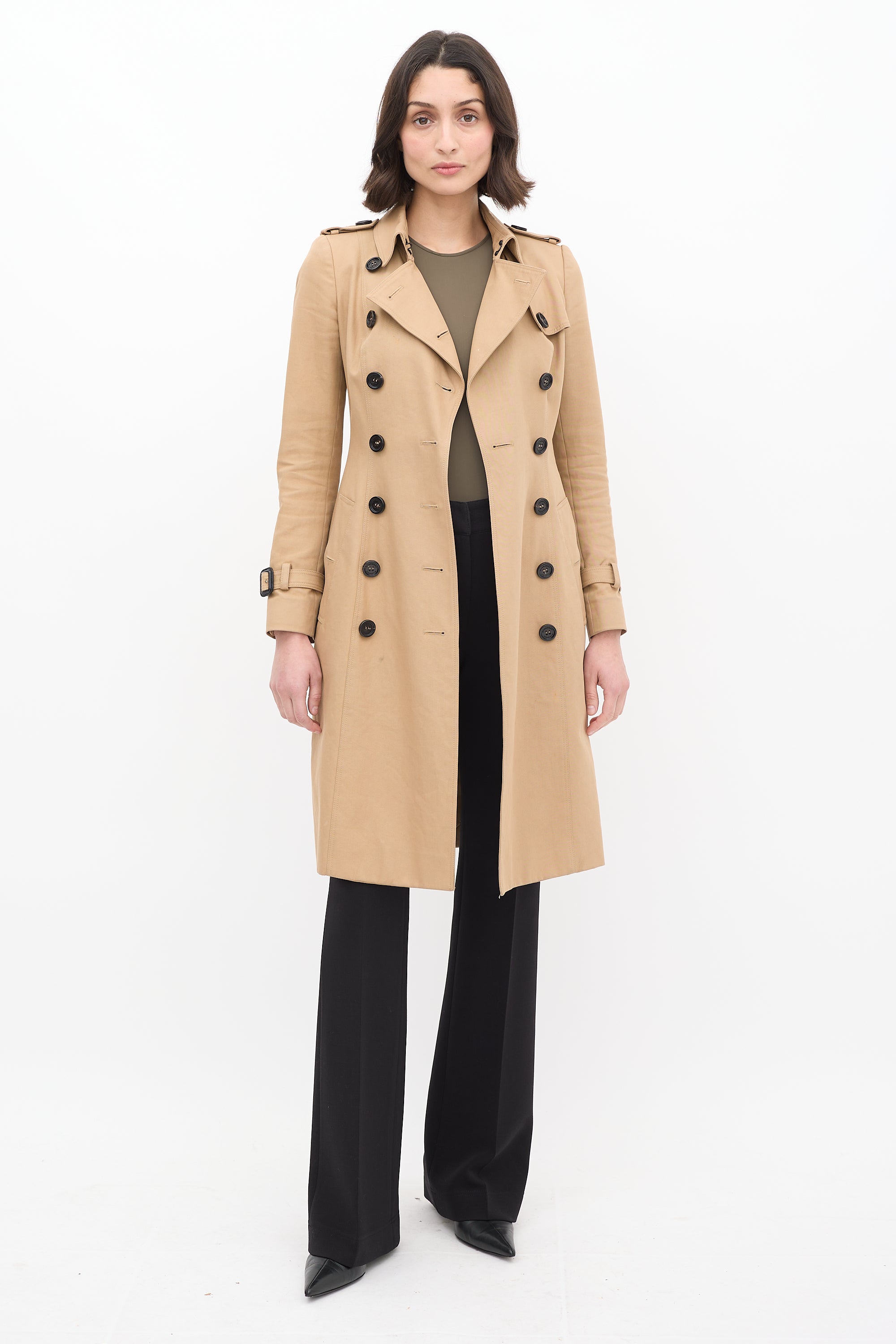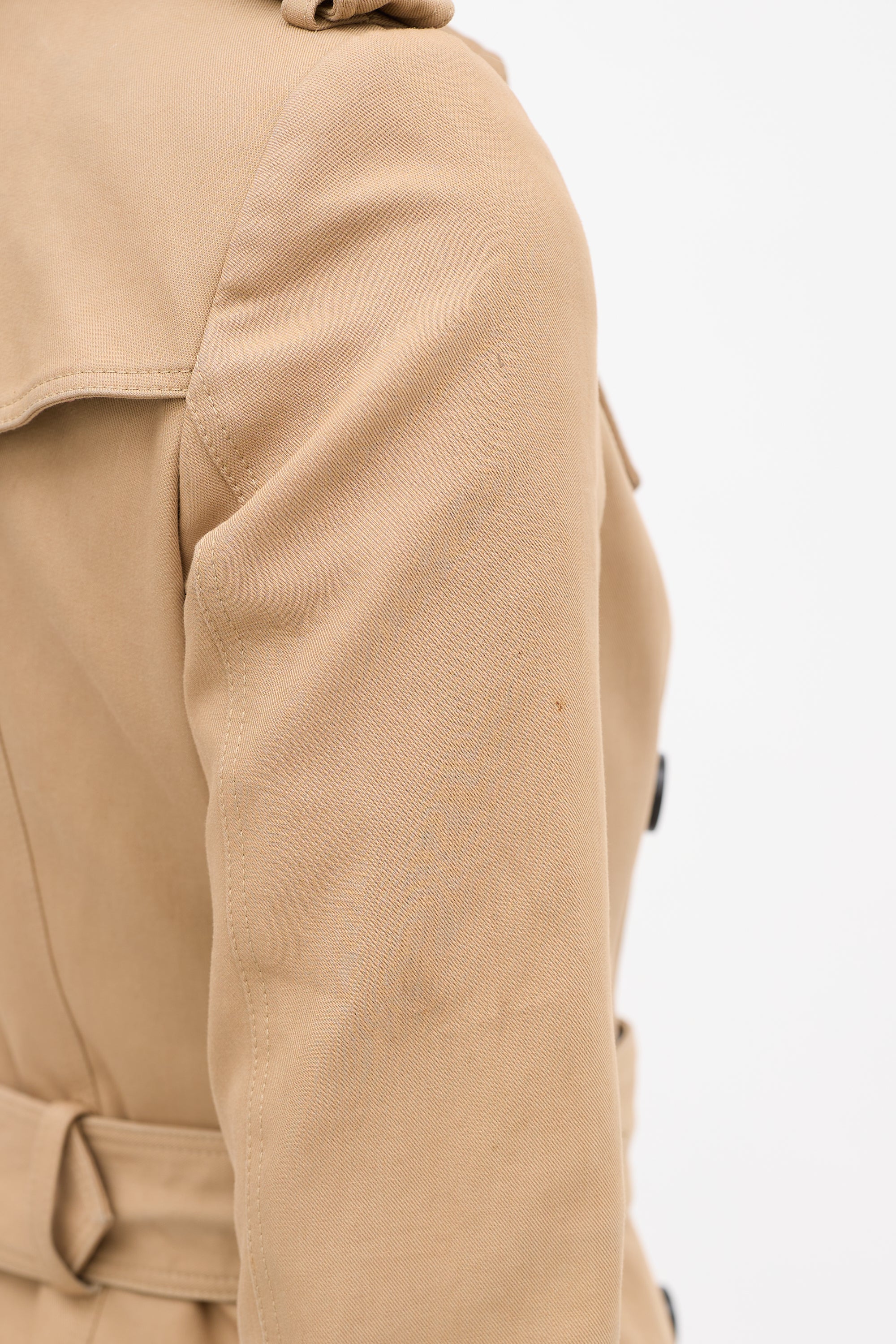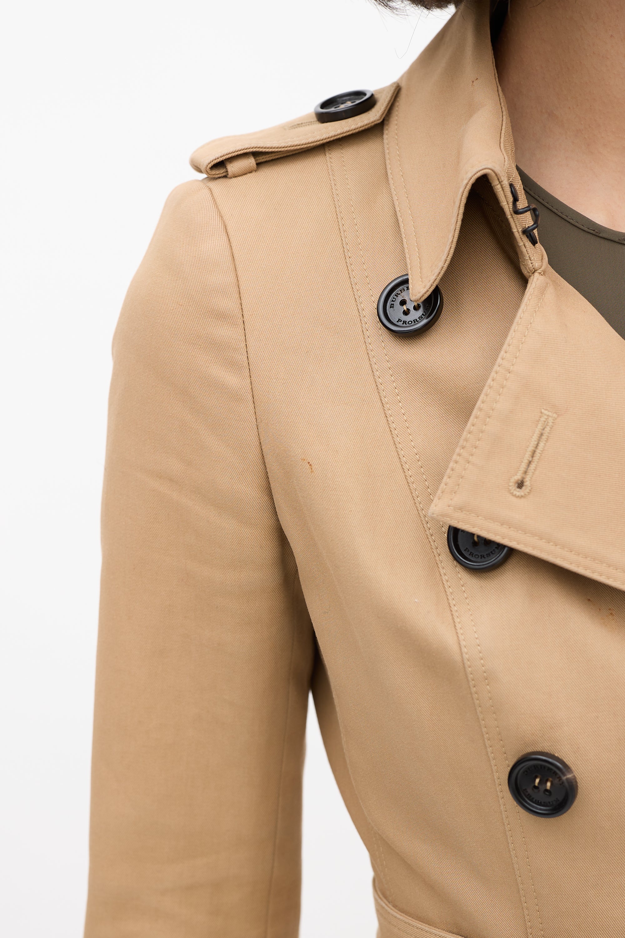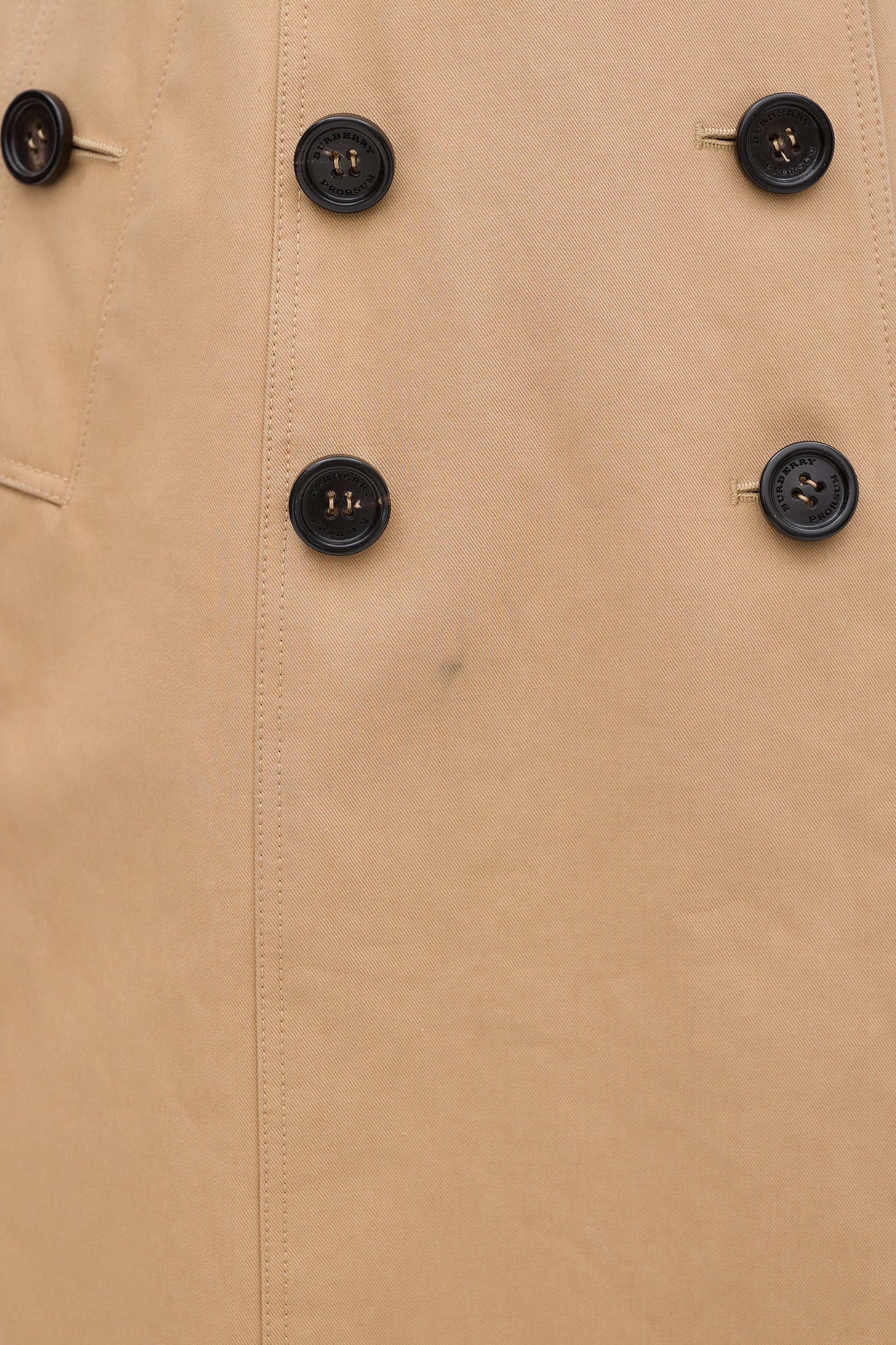 Pre-owned Burberry Prorsum brown coat featuring classic collar, shoulder epaulettes, double breasted button up front, two buttoned hip pockets, back vent, belt loops, and matching belt. Lined.