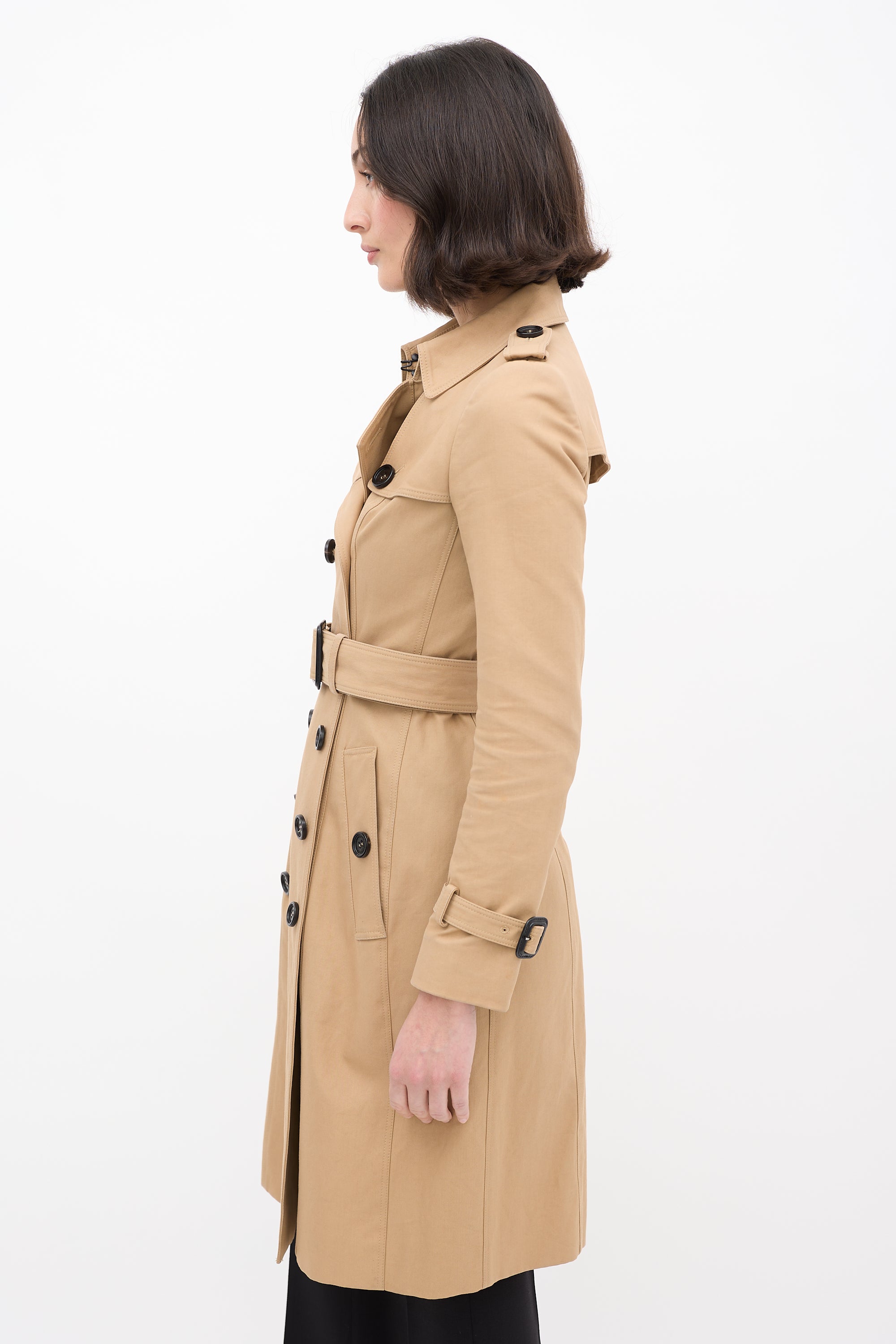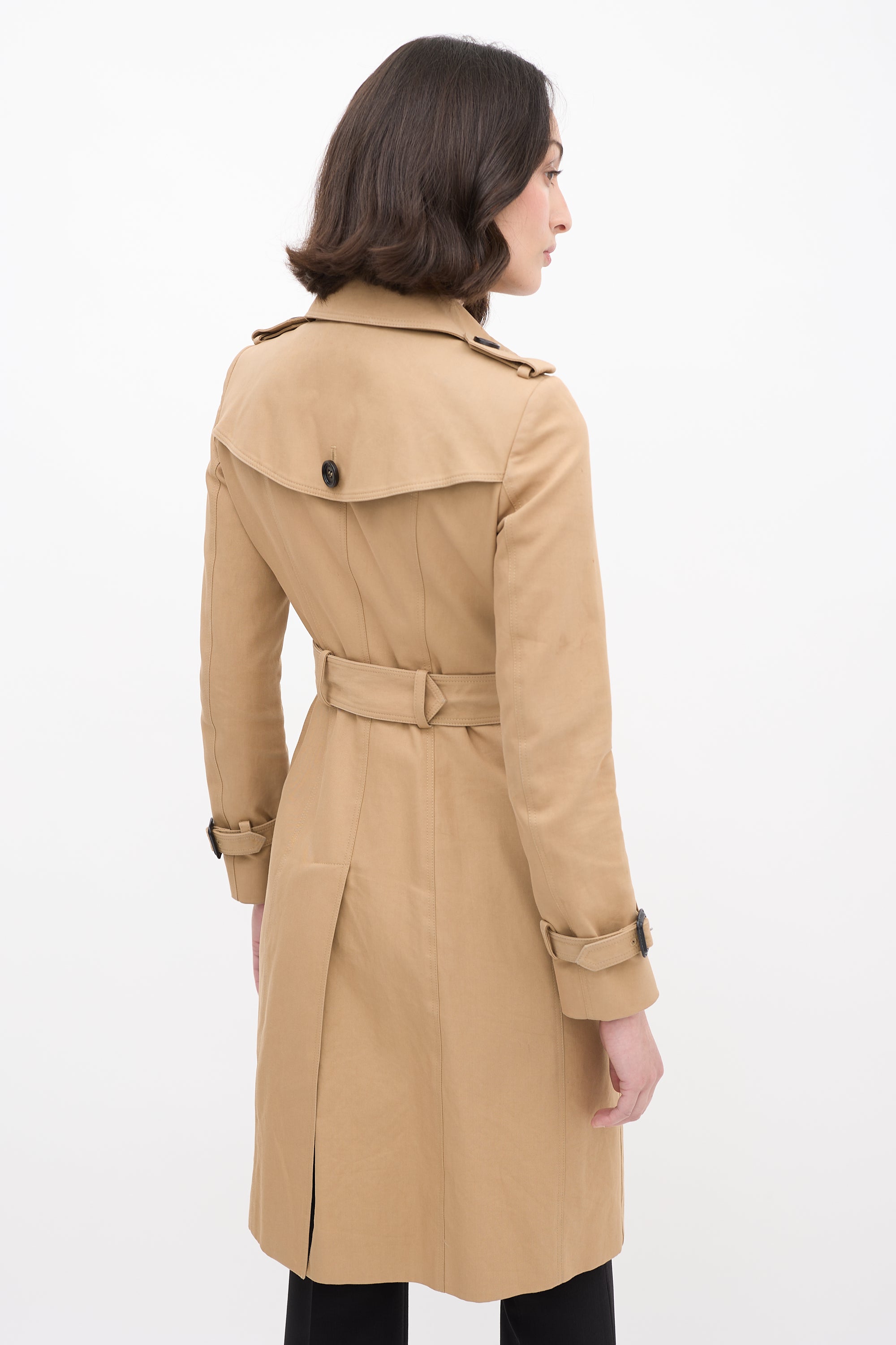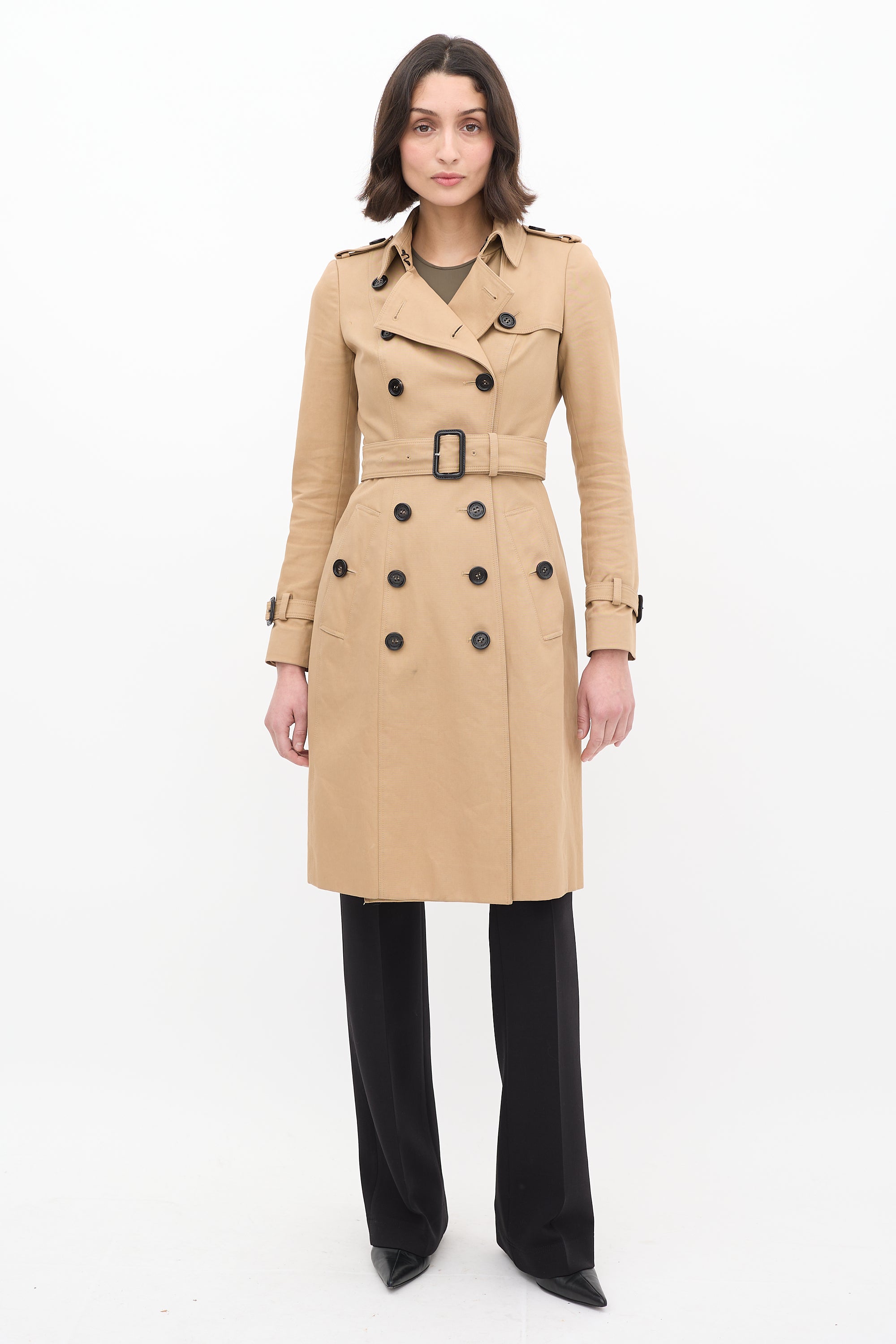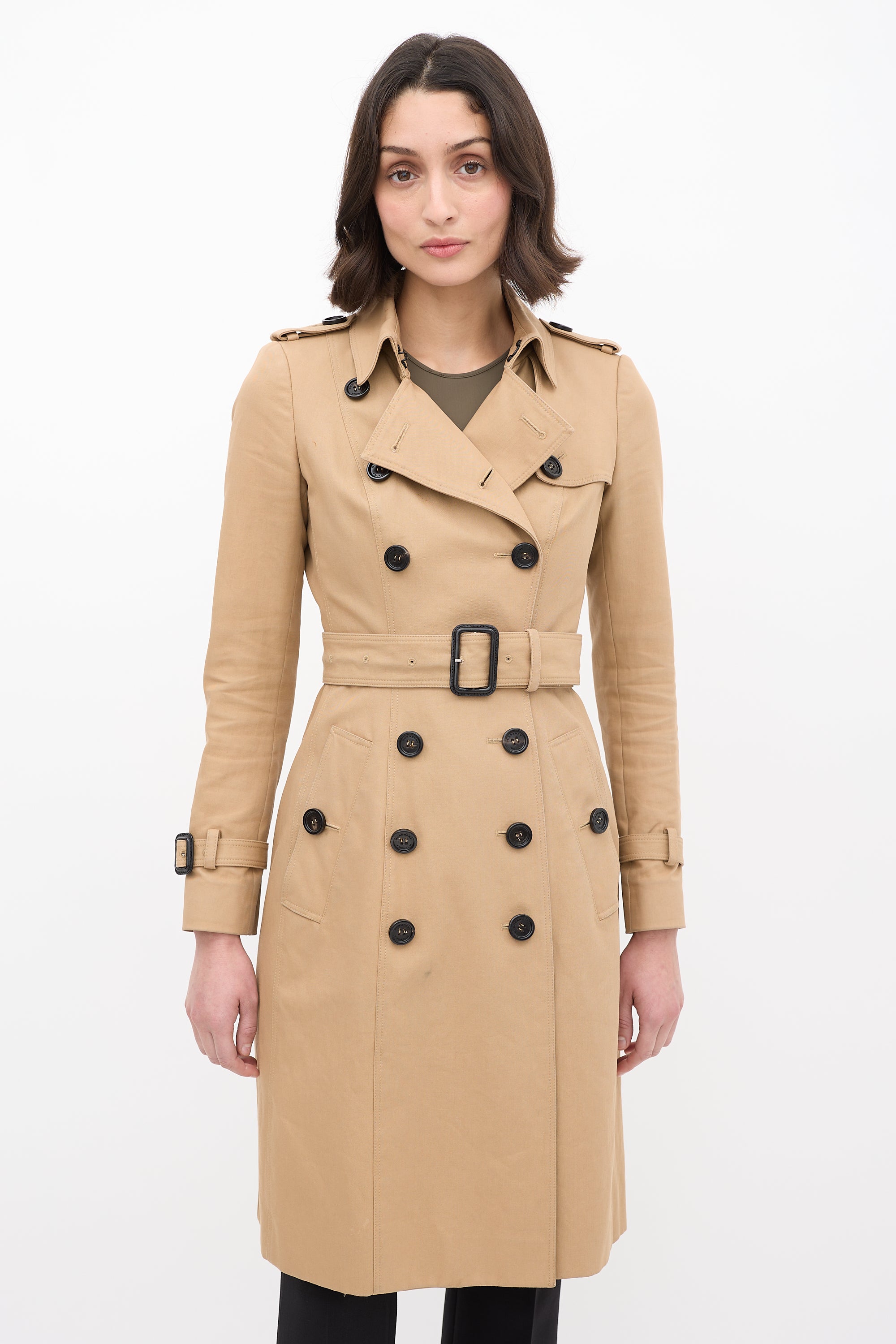 Pre-owned Burberry Prorsum brown coat featuring classic collar, shoulder epaulettes, double breasted button up front, two buttoned hip pockets, back vent, belt loops, and matching belt. Lined.