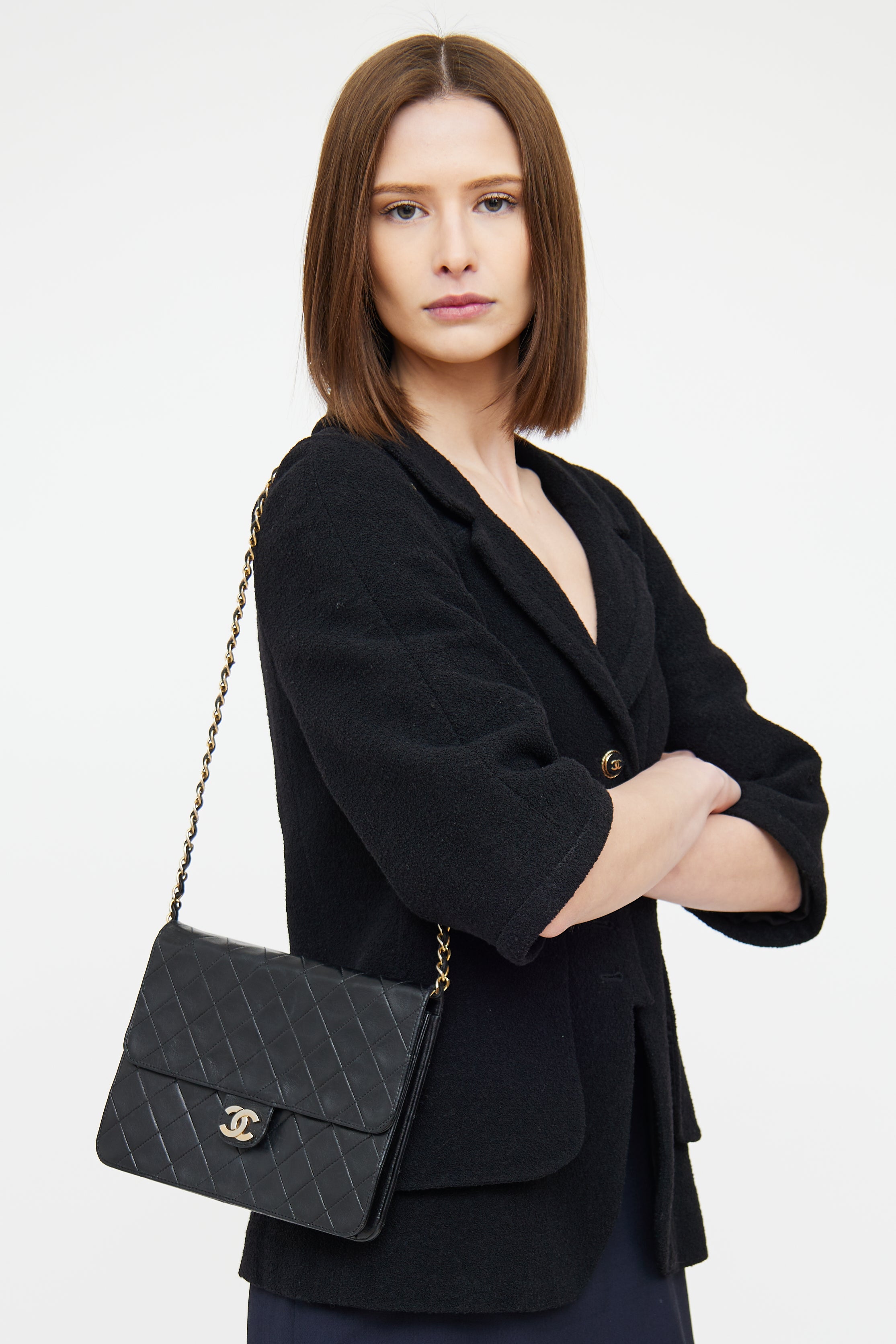 Vintage Black Quilted Classic Flap Bag