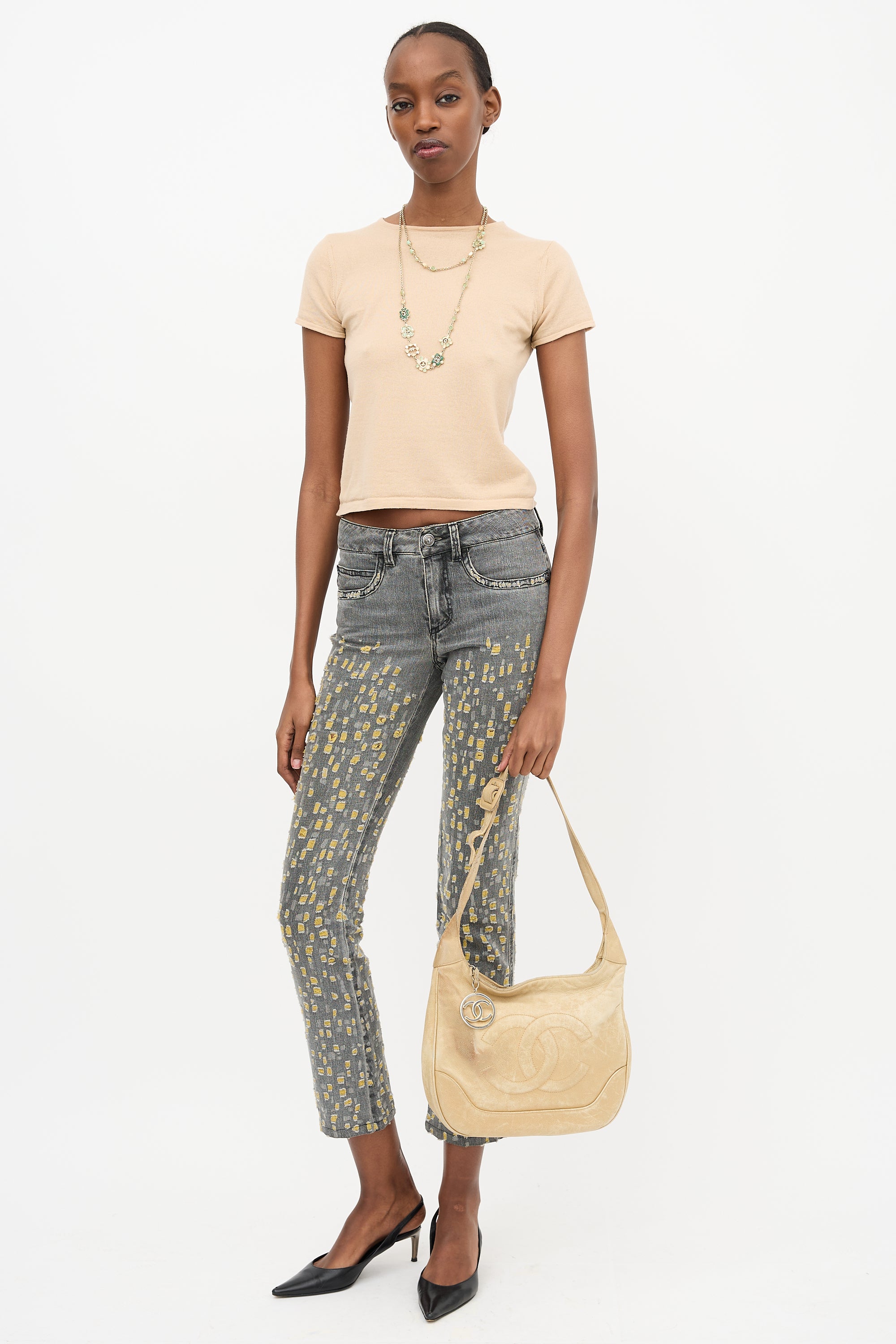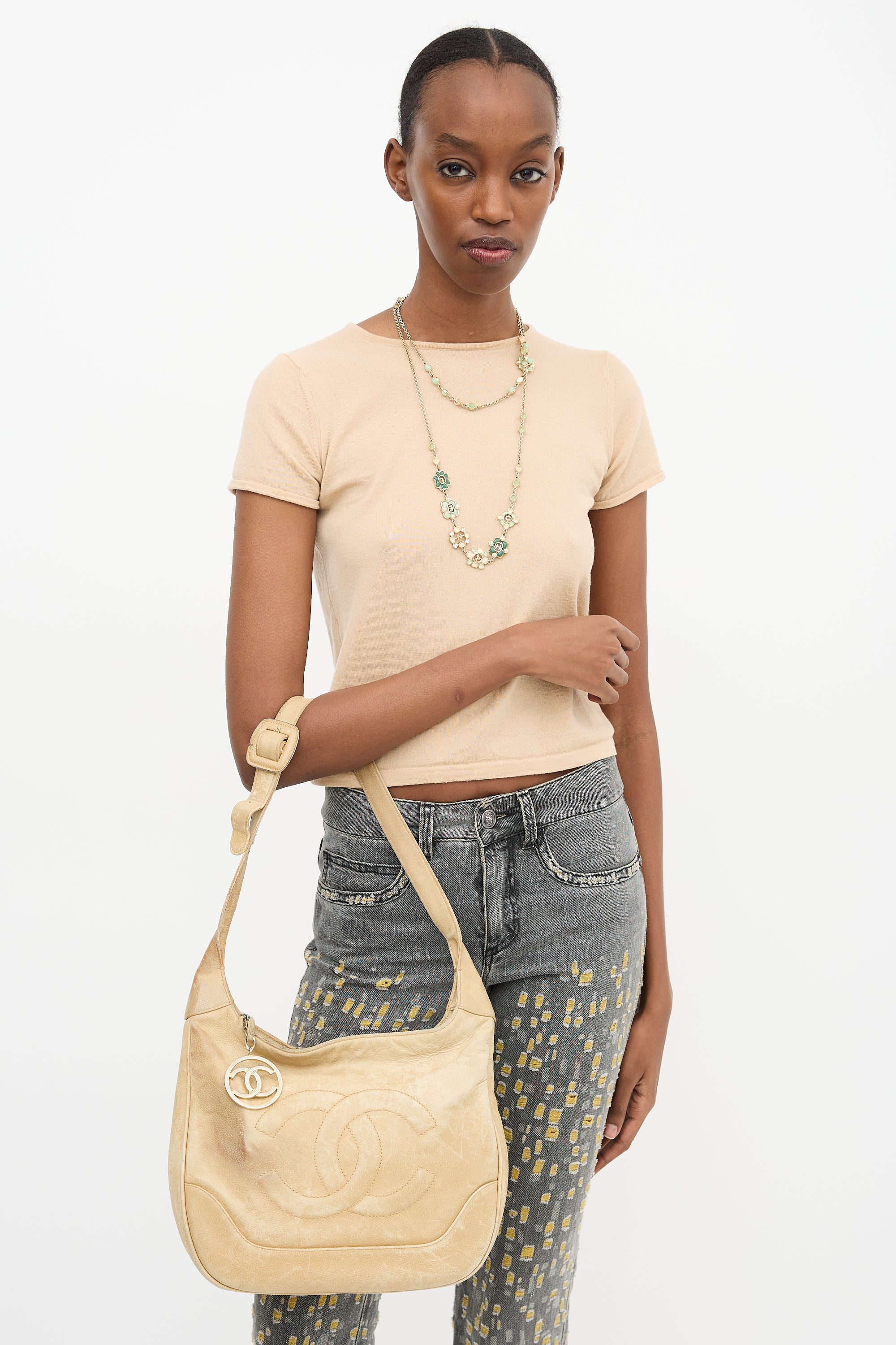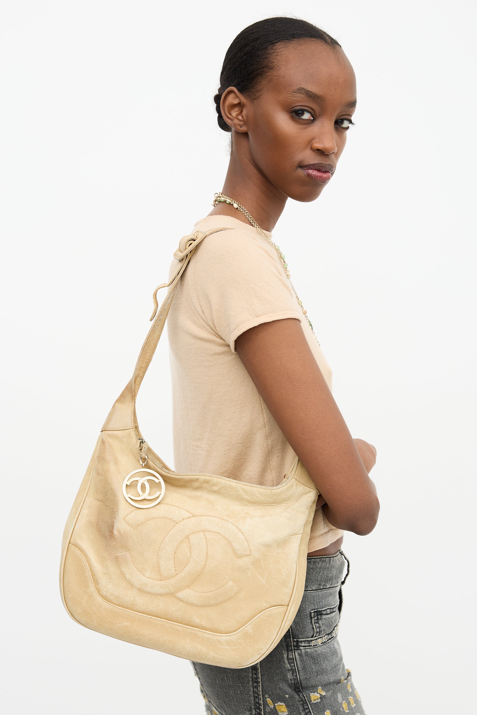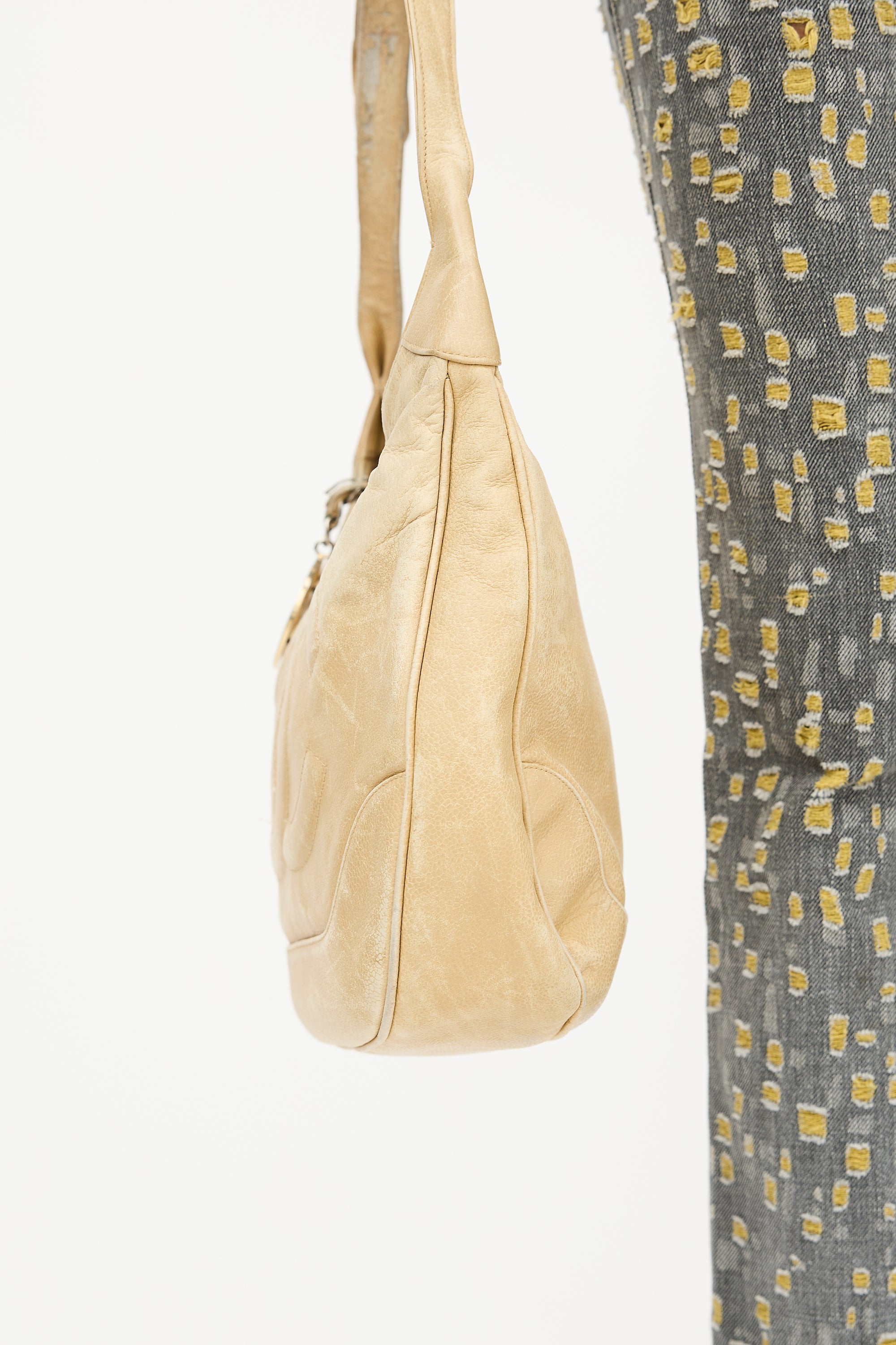 1990s Beige Caviar Timeless Shoulder Bag