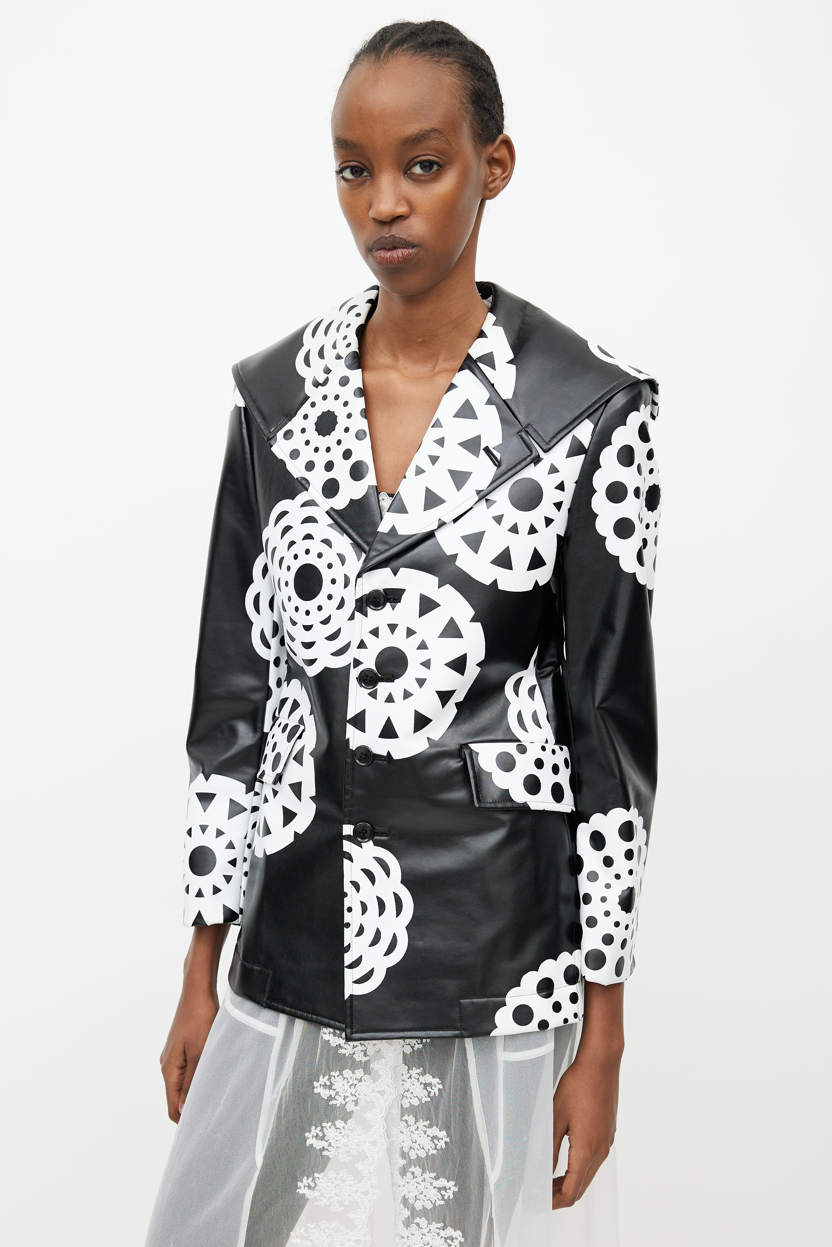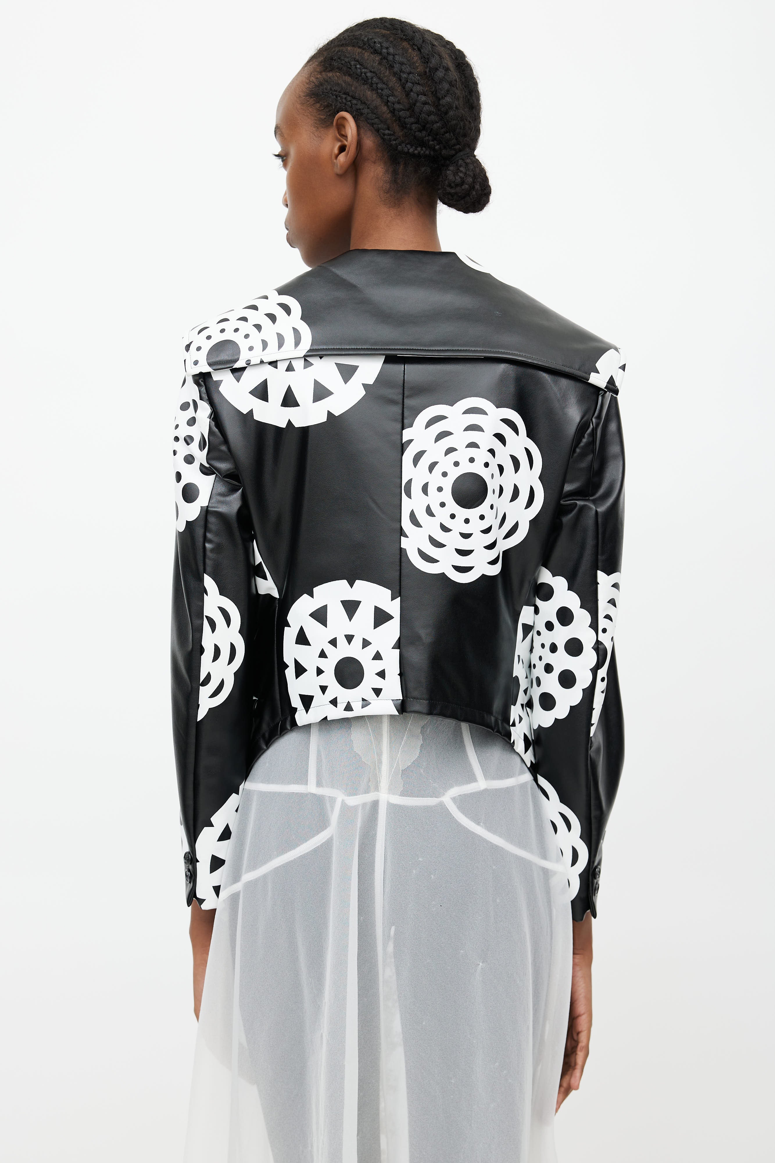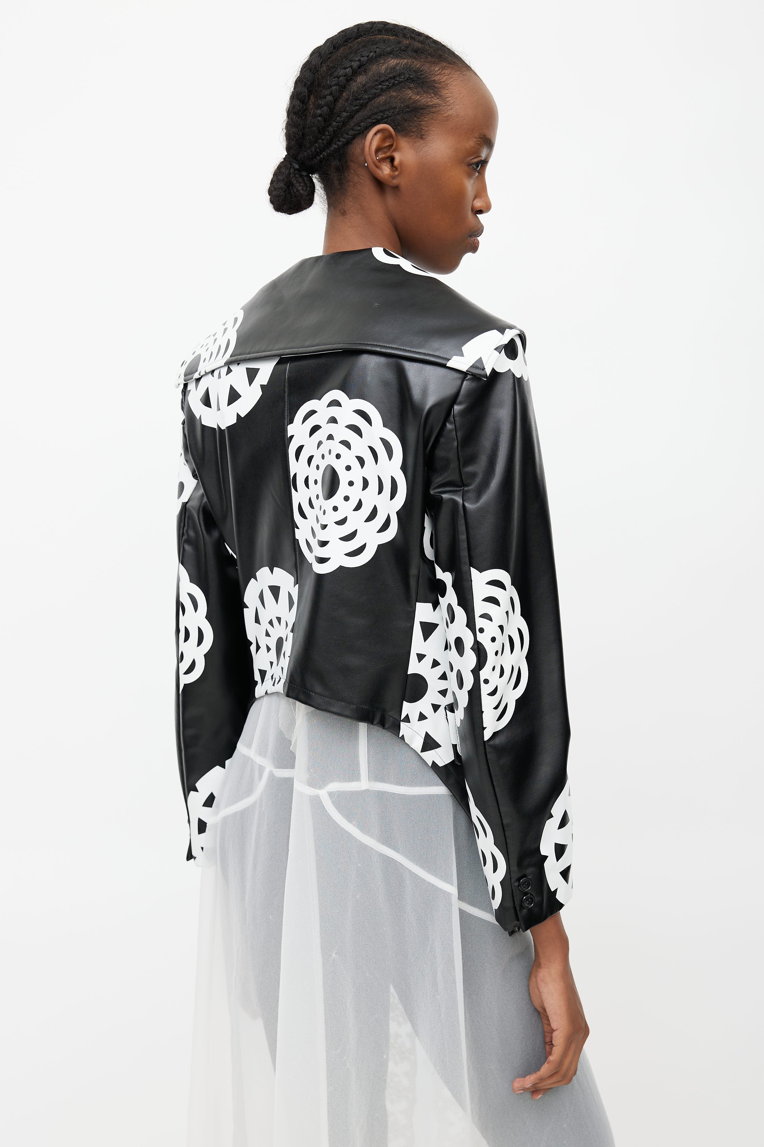 FW 2001 Black & White Print Faux Leather Jacket Small Size Guide