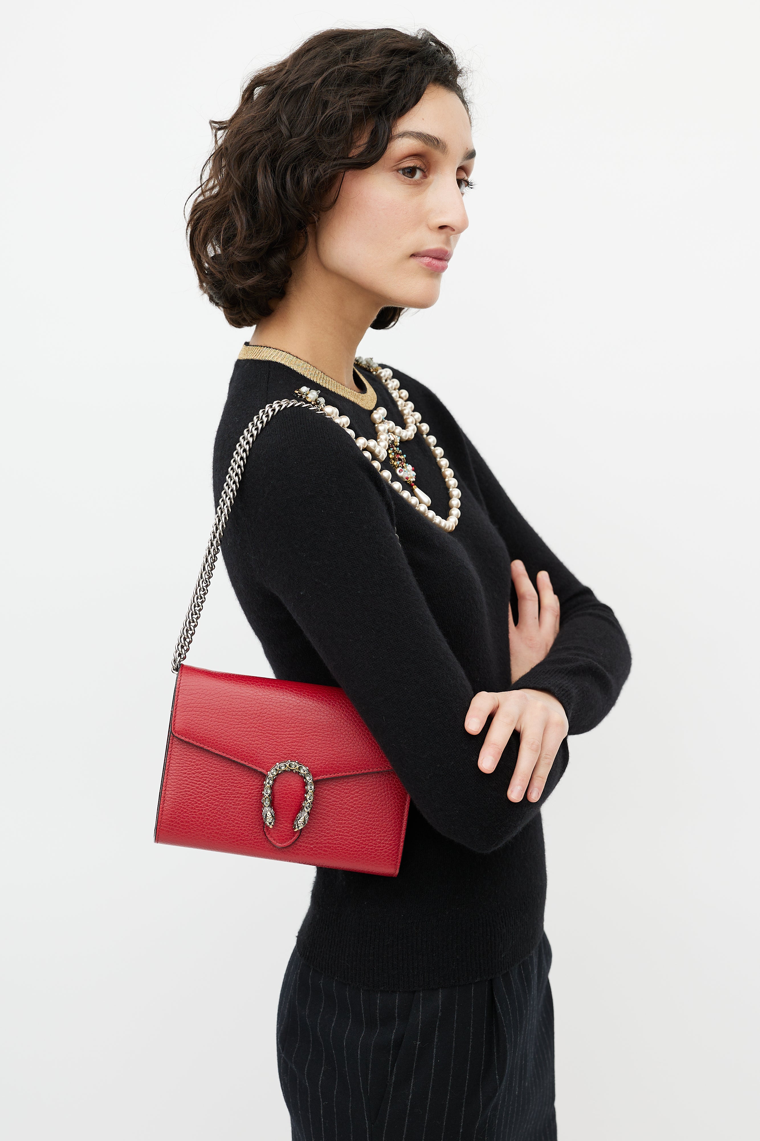 Red & Silver Leather Mini Dionysus Crossbody Bag