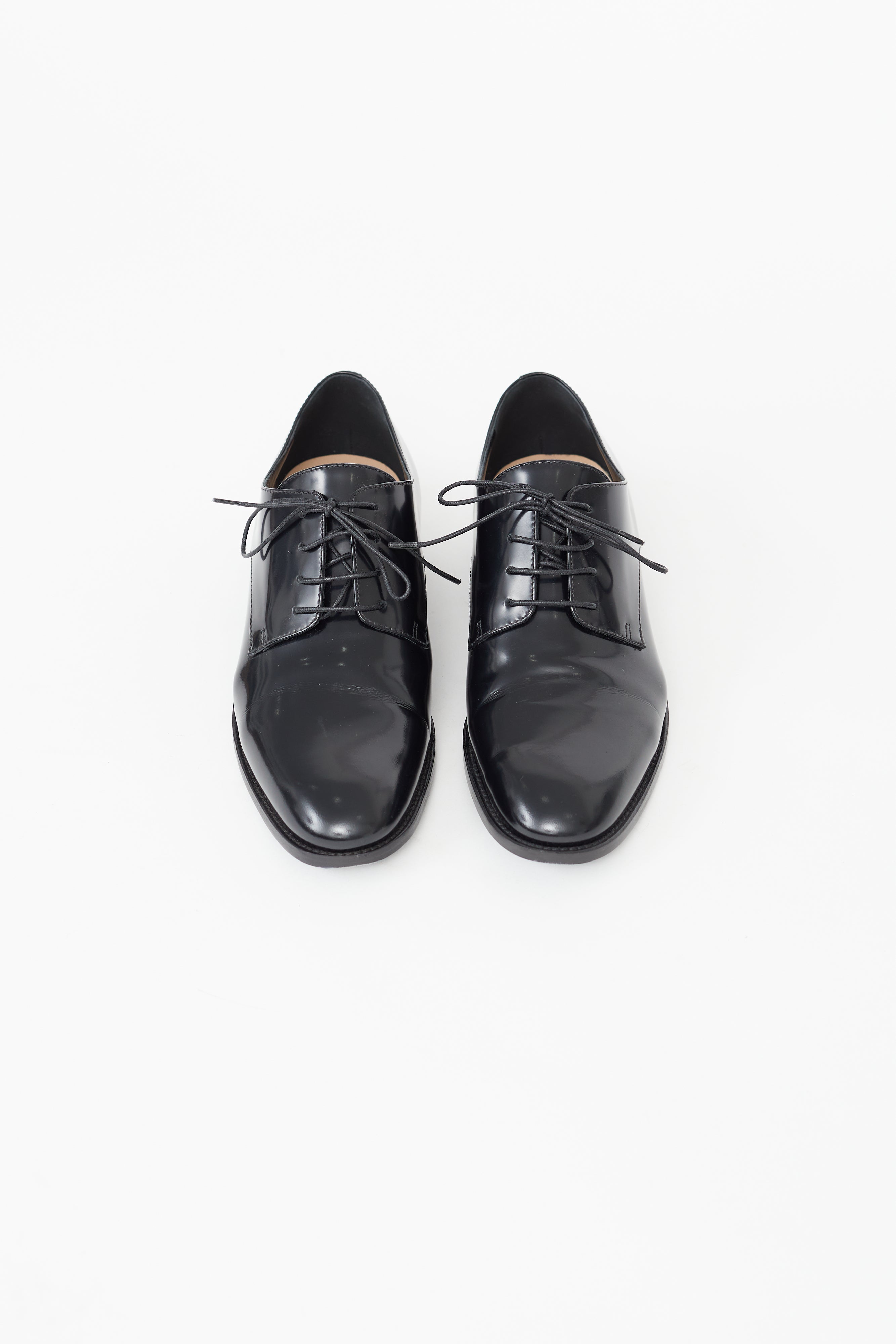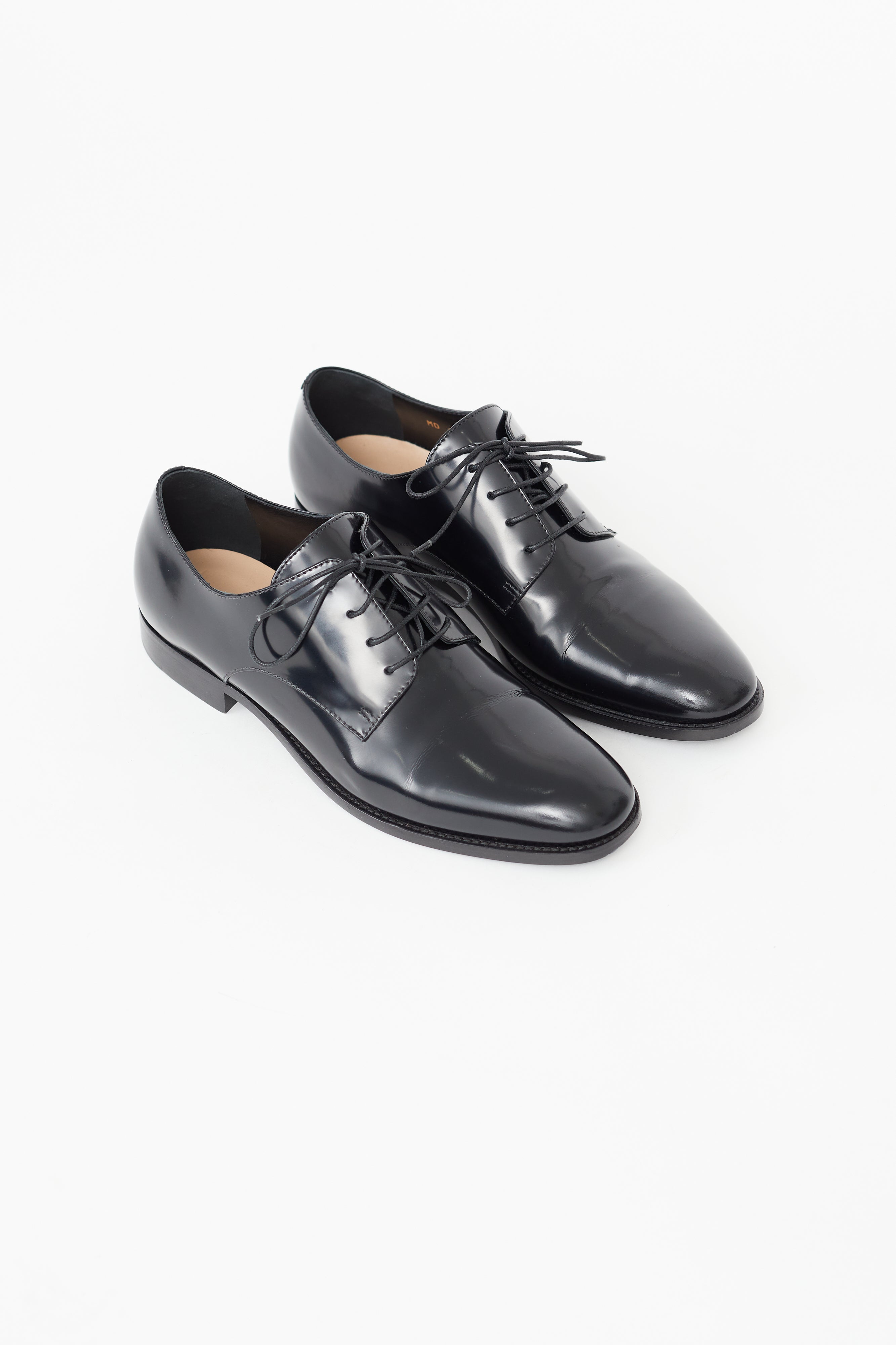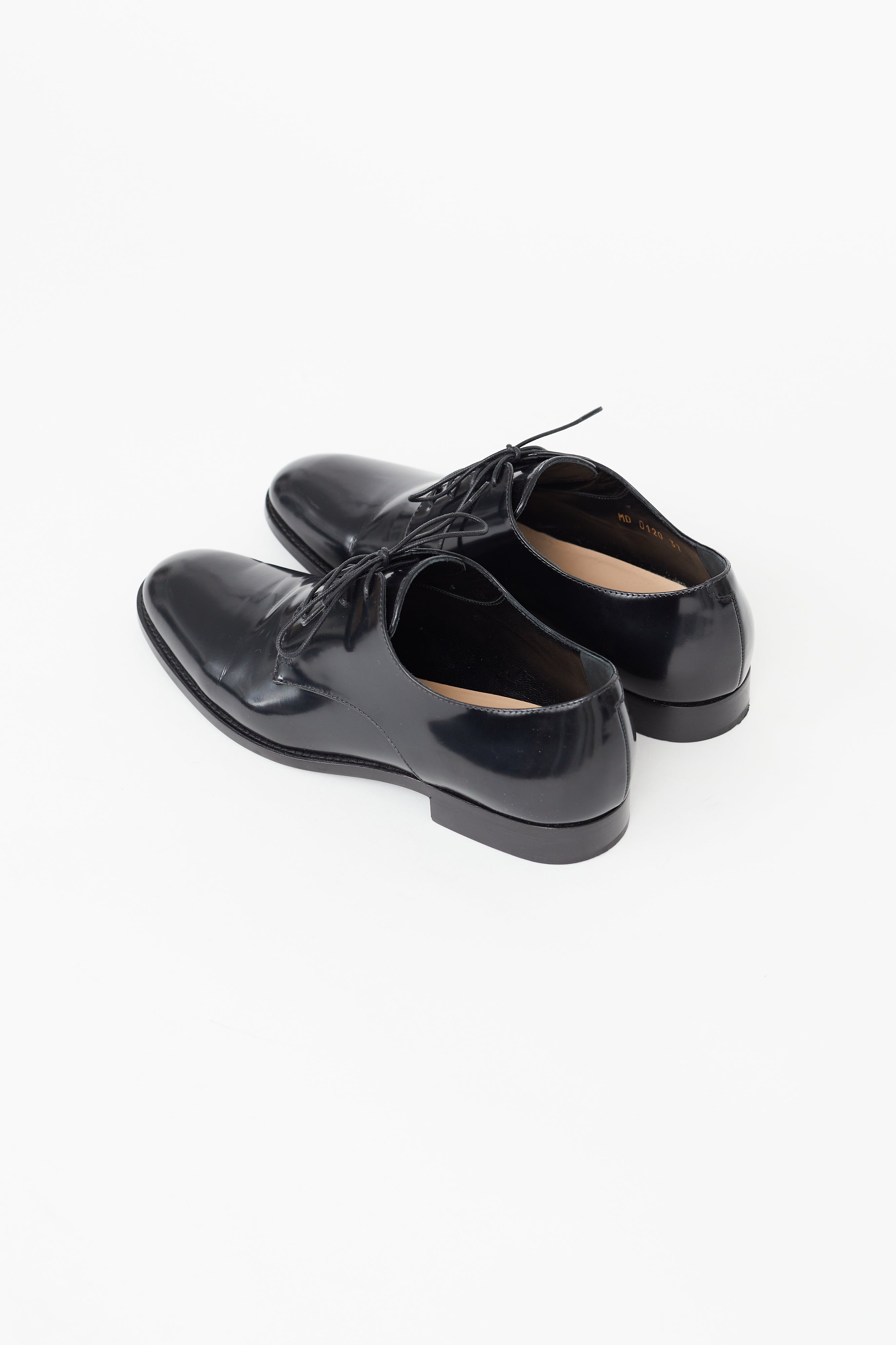 Pre-owned Dior black Uniform oxford featuring almond toe, lace up vamp, leather insole, and stacked heel. Comes with original box.
