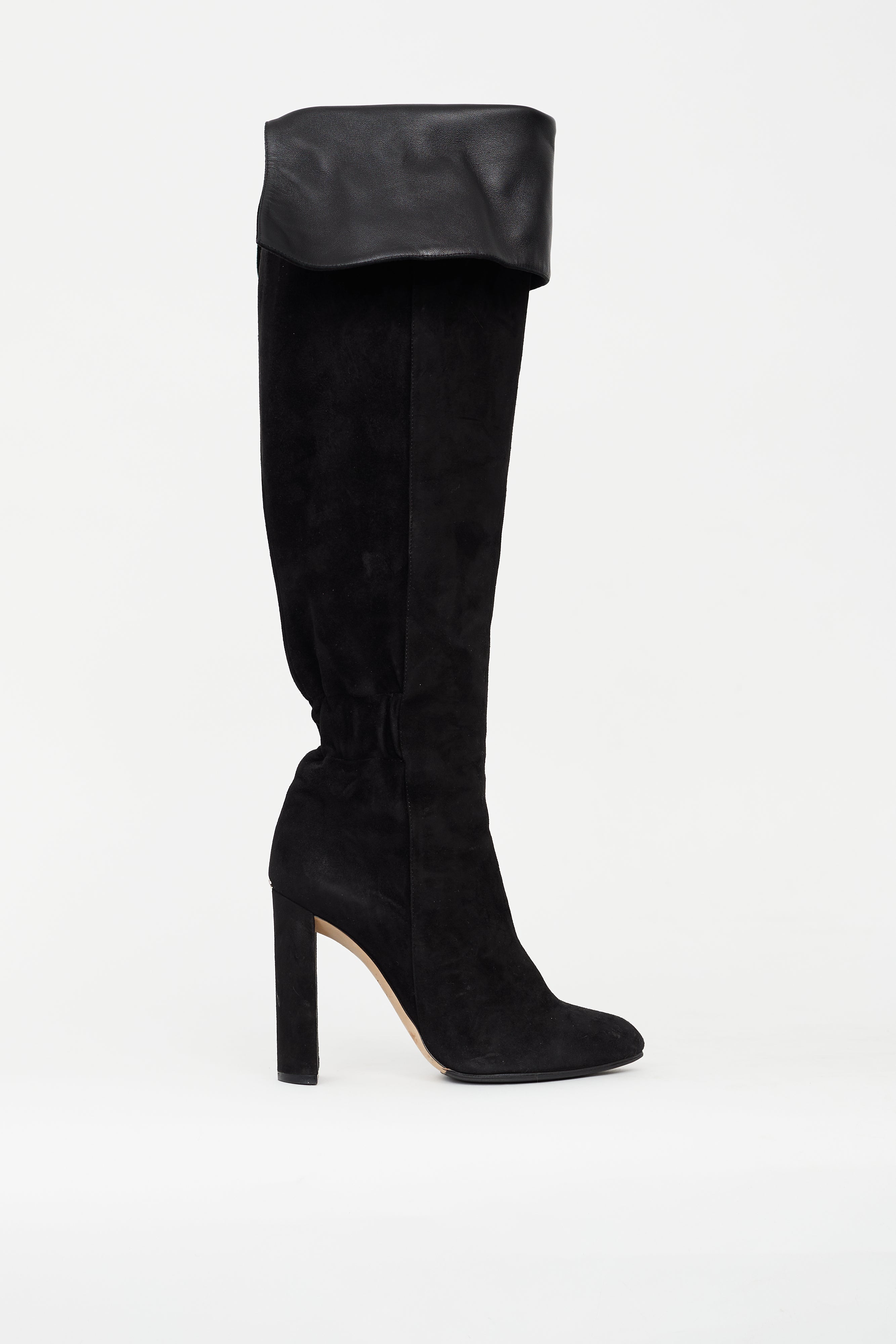 Black Suede Folded Knee High Boot IT 37 Size Guide