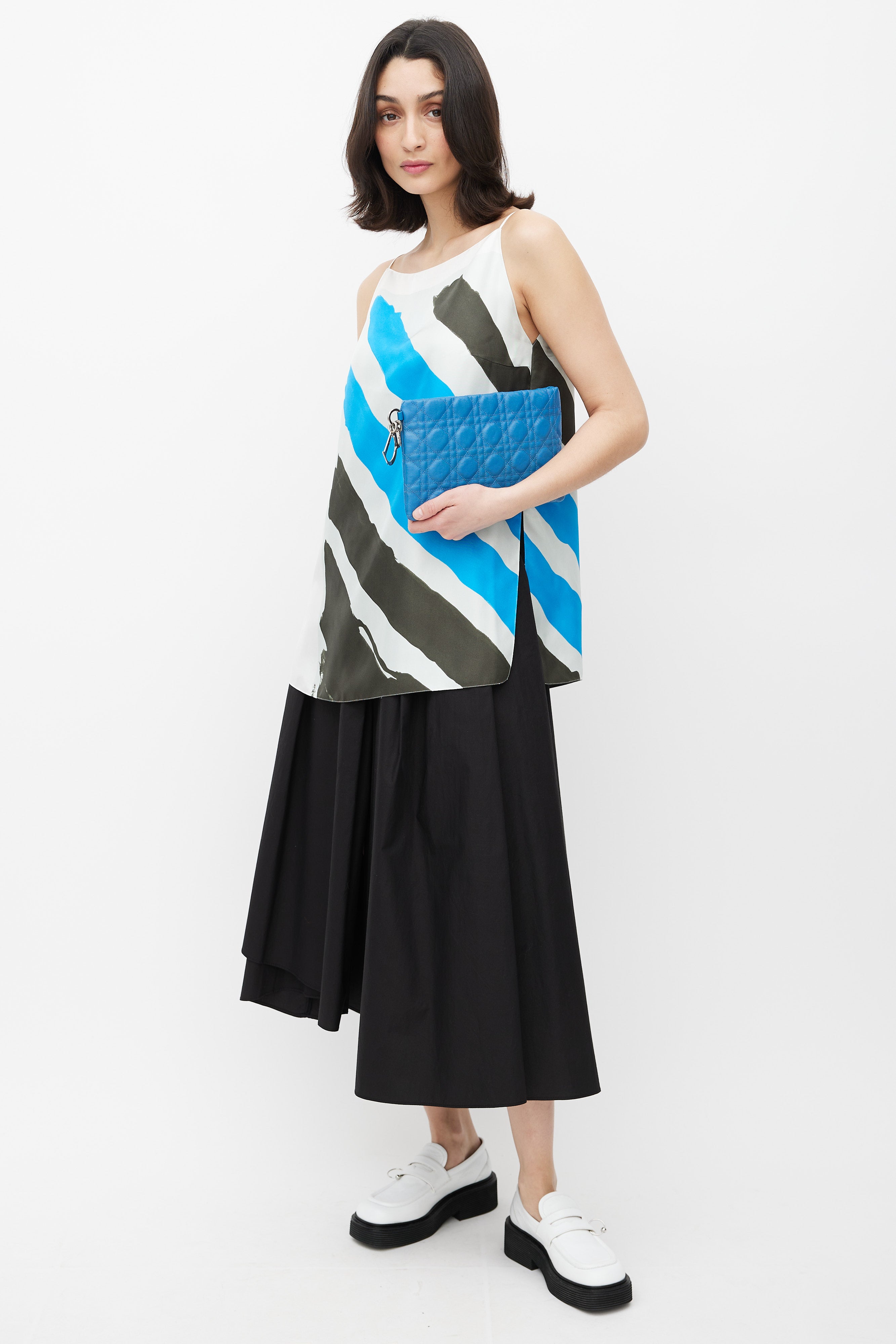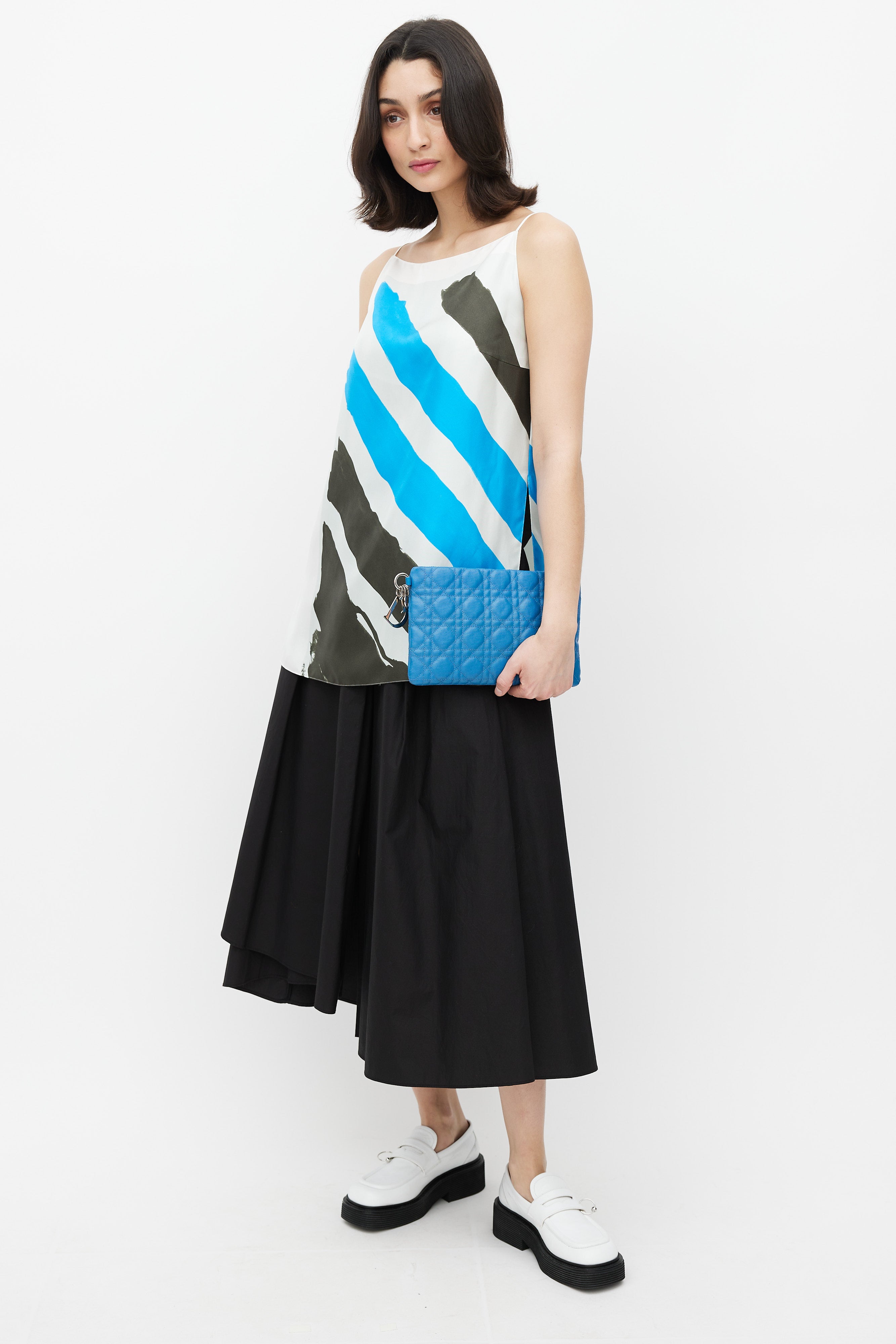 Blue Cannage Coated Canvas Pouch