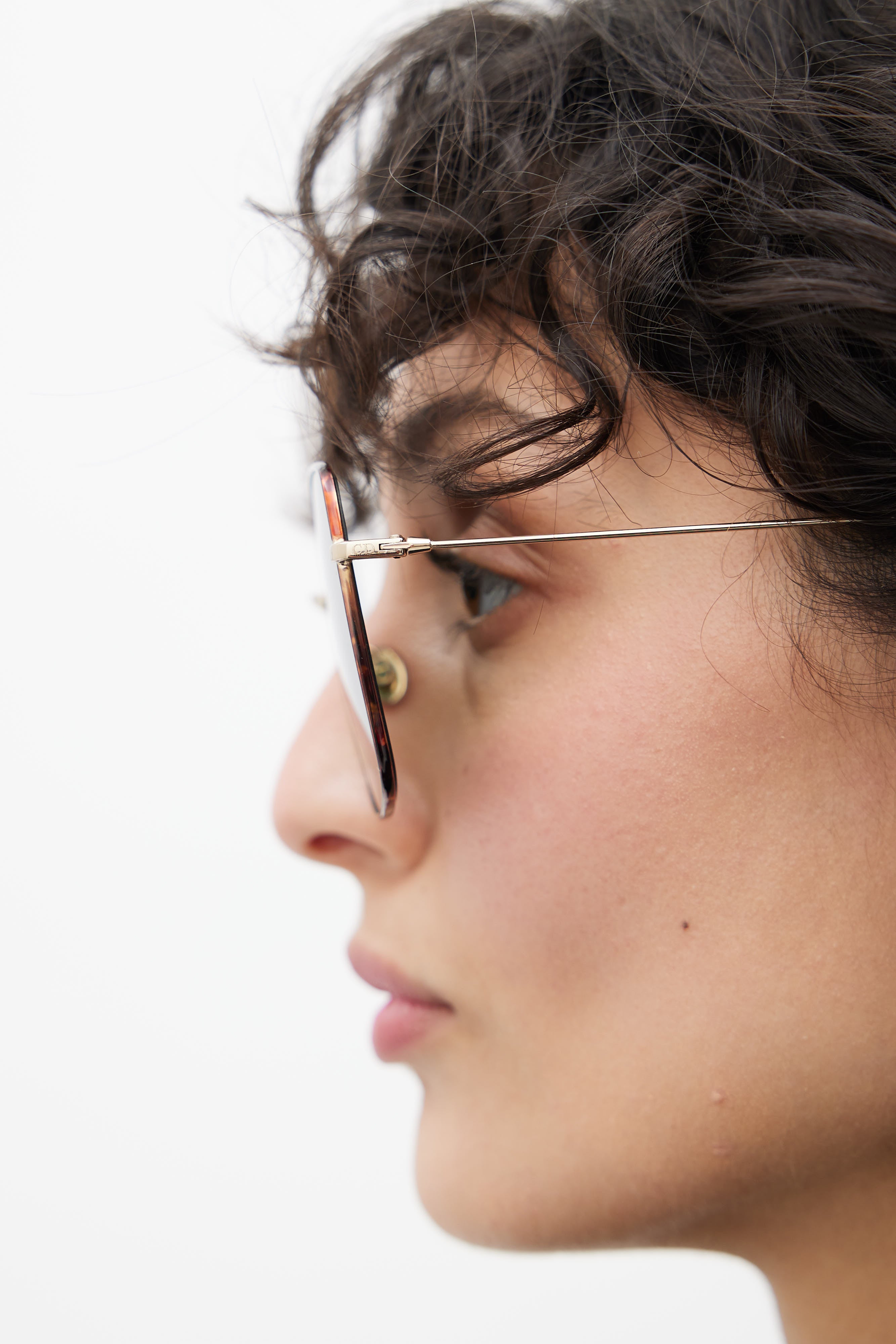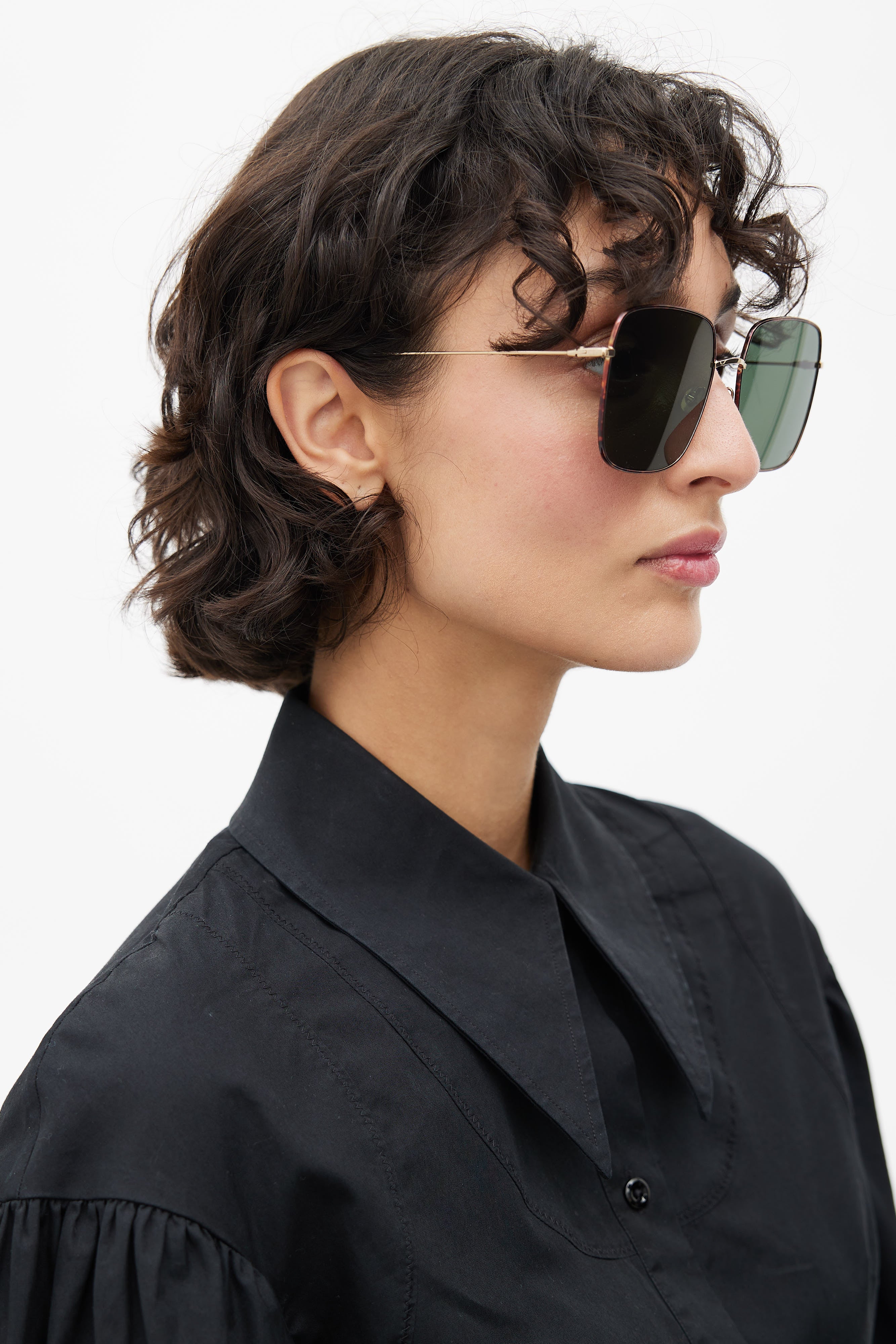 Pre-owned Dior brown Stellaire 1 J5G07 sunglasses featuring tortoiseshell frame, black oversized square lens, nose pads, and gold tone metal arms. Comes with original case.