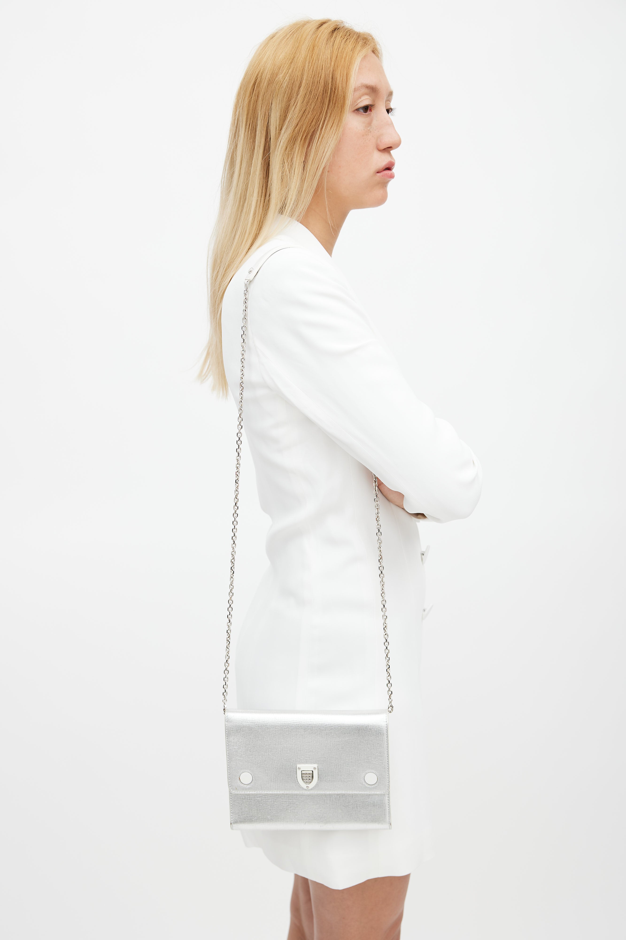 Silver & White Diorever Shoulder Bag