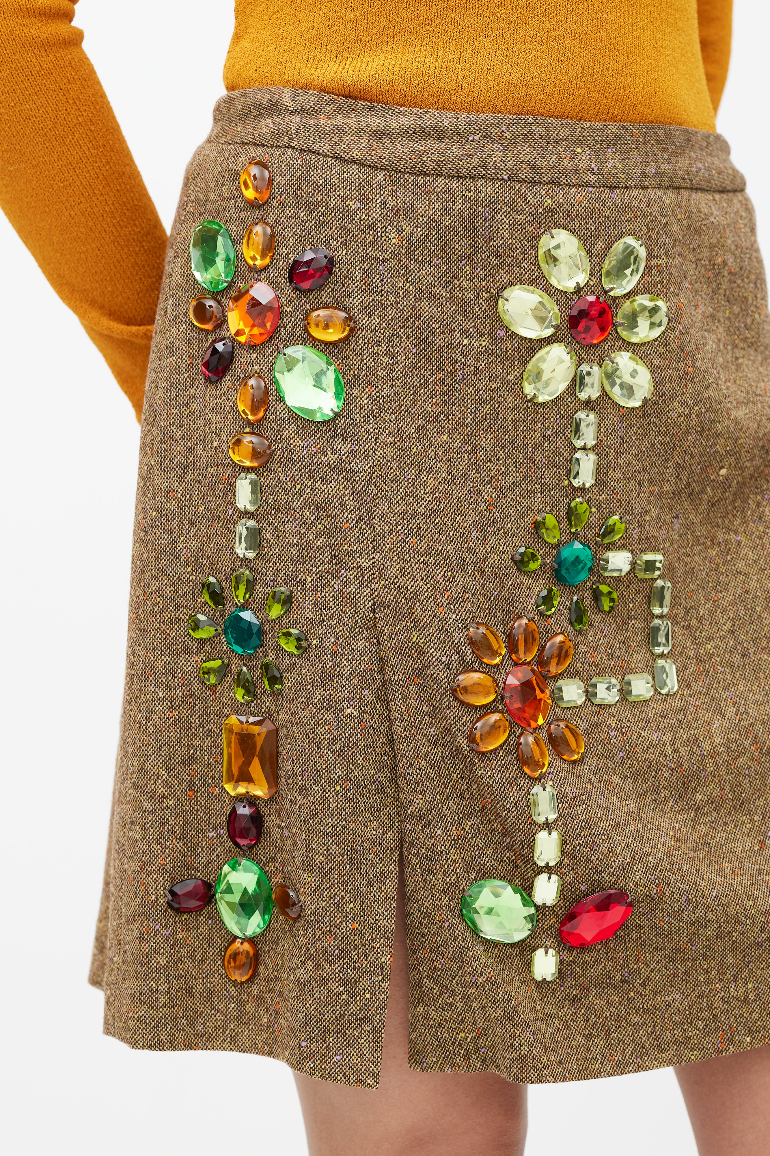 Brown & Multicolour Embellished Wool Skirt IT 44 Size Guide