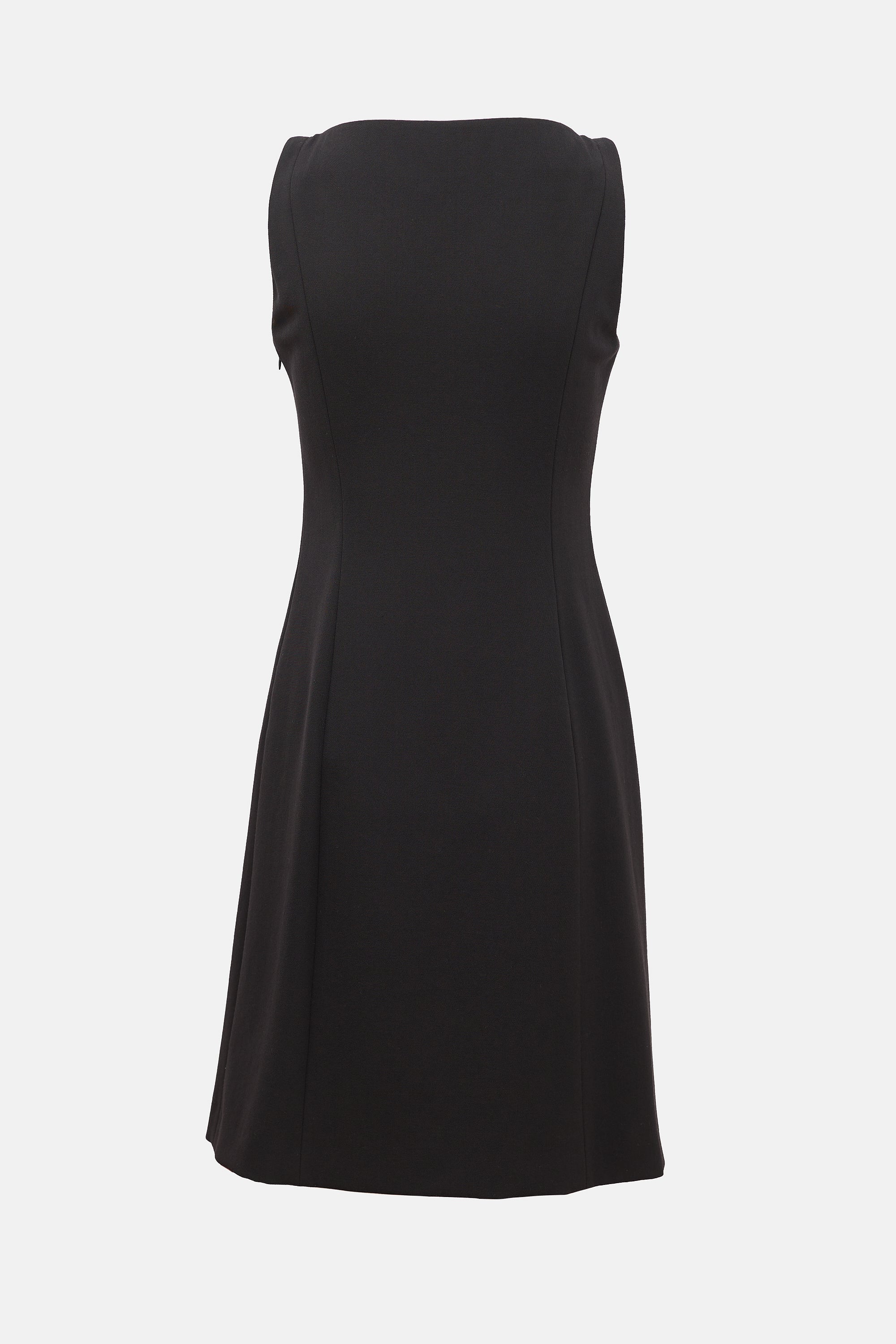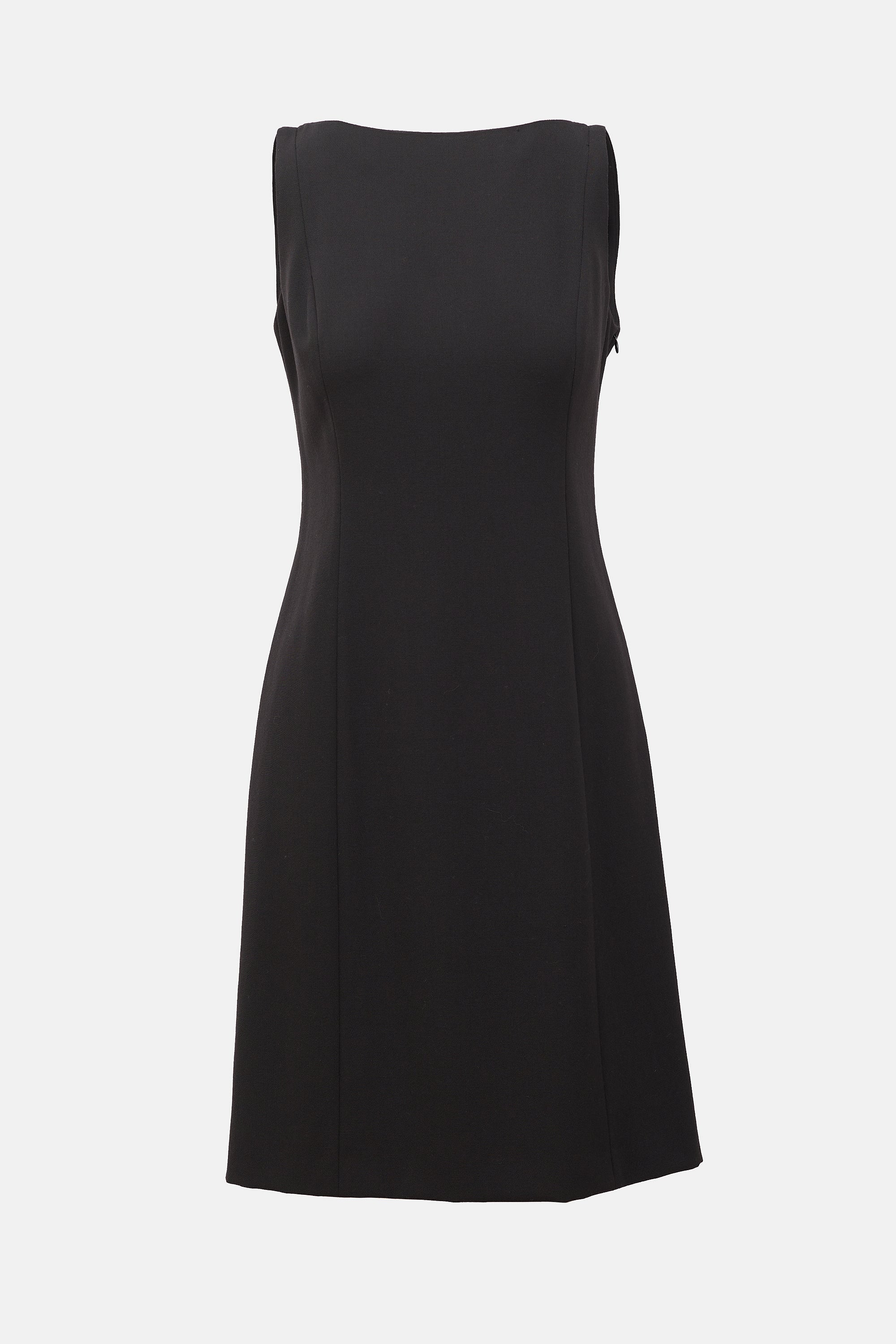 Pre-owned Emporio Armani black sheath dress featuring round neckline and zip closure at side.