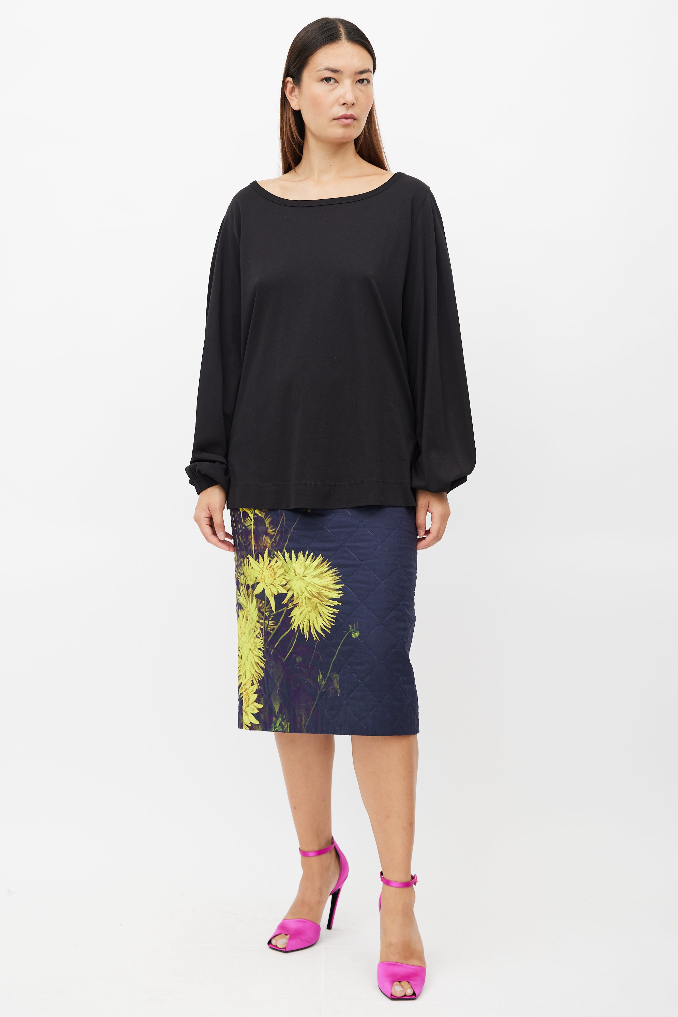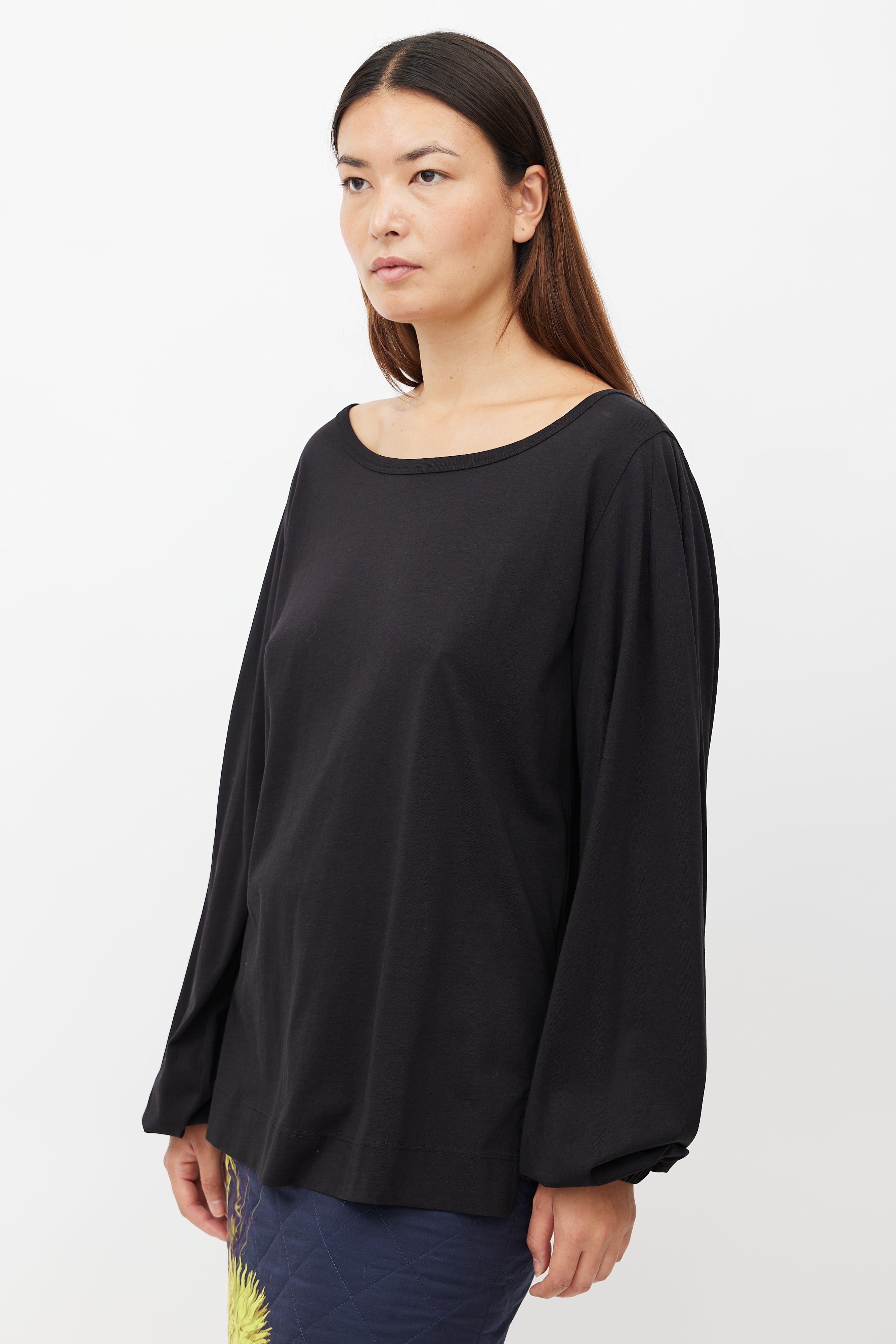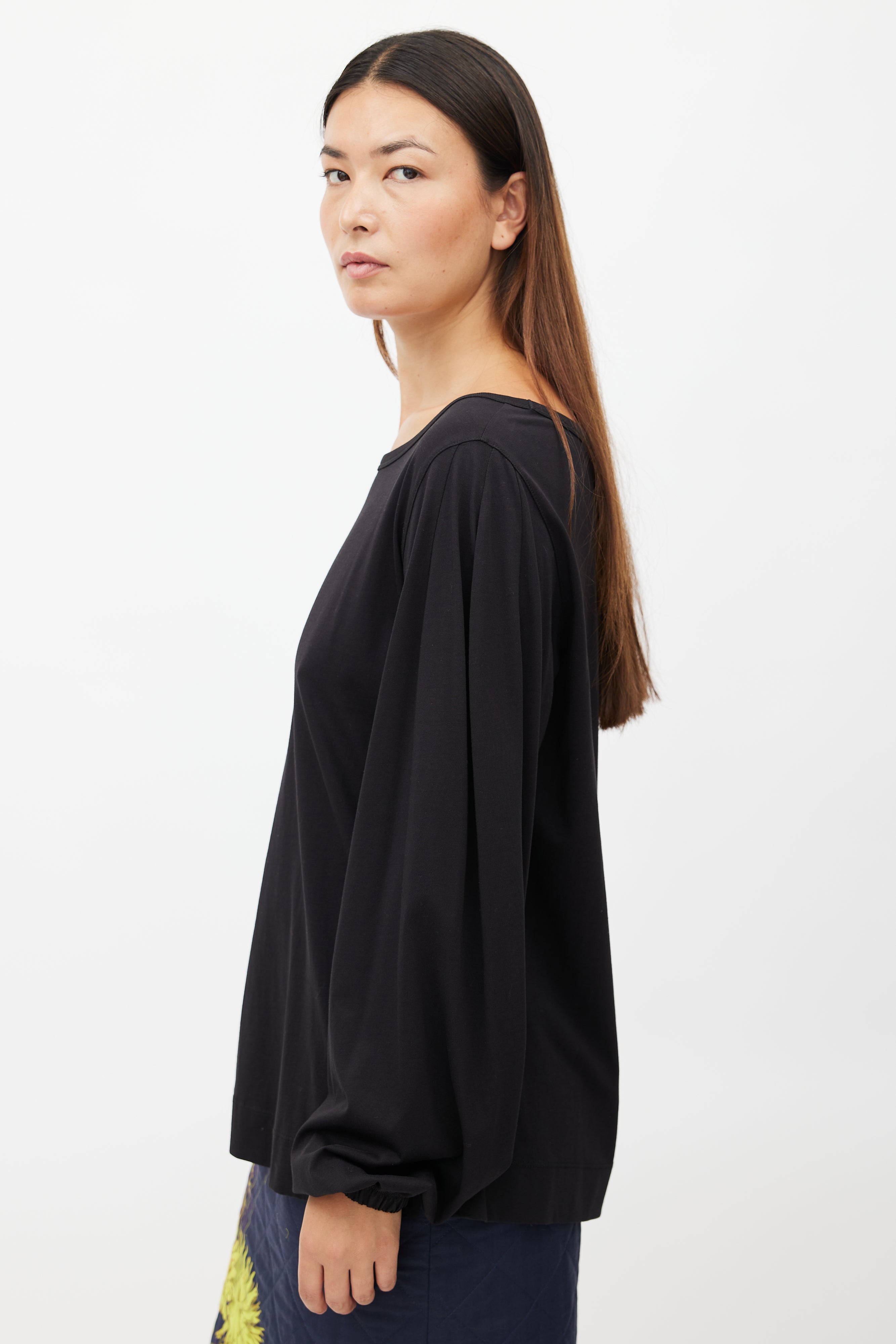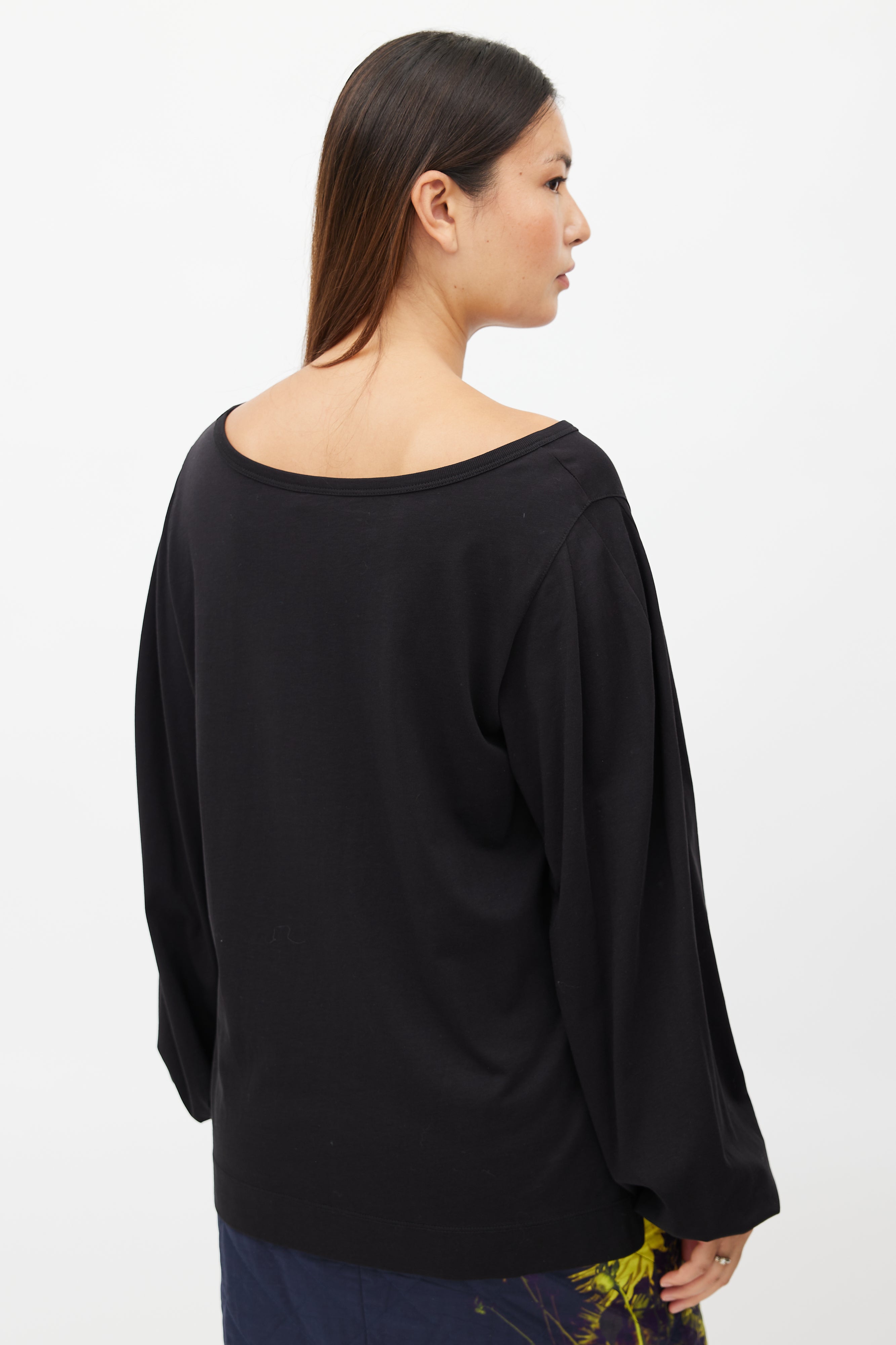 Pre-owned Dries Van Noten black top featuring a bateau neckline, and long sleeves with elasticized cuffs.