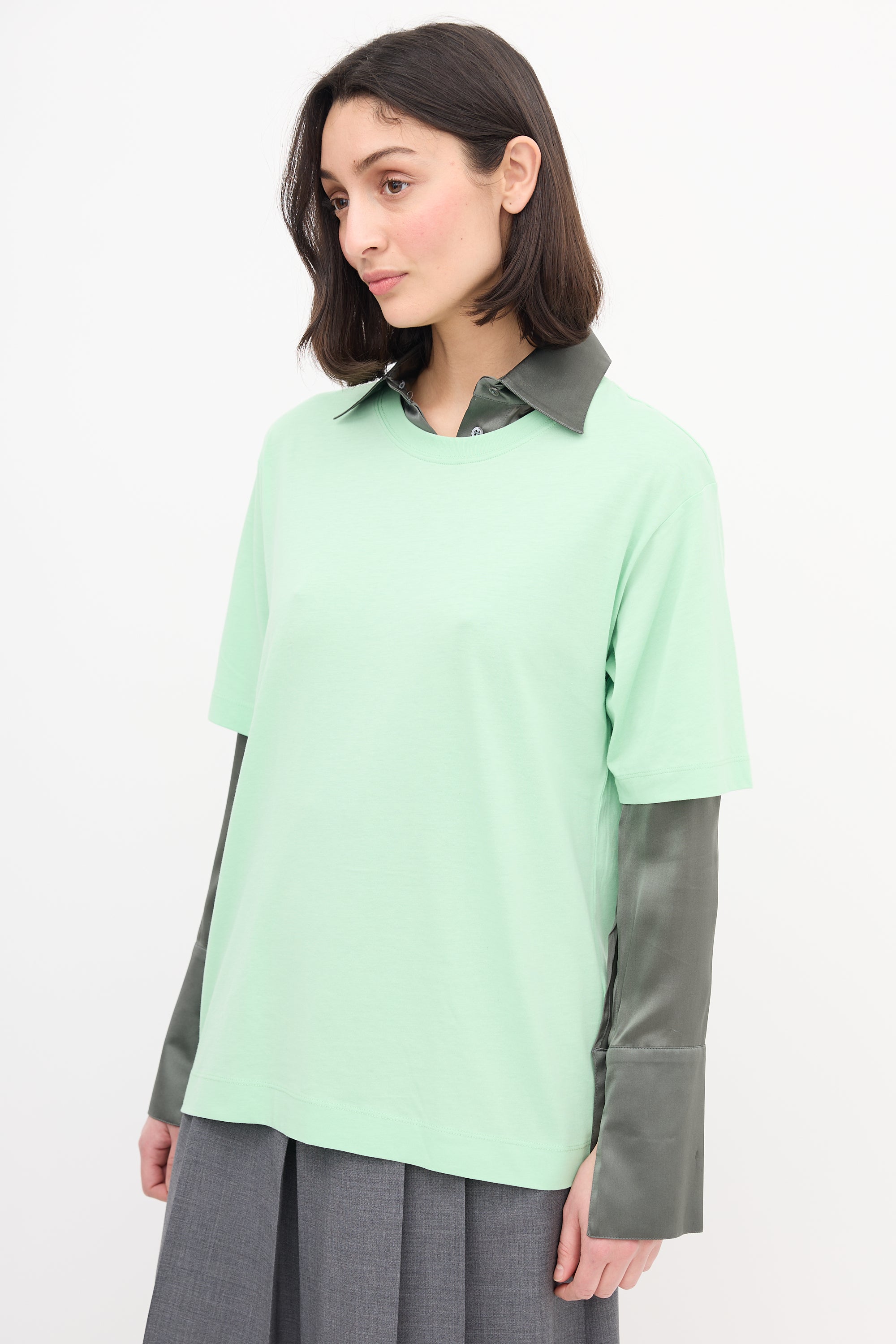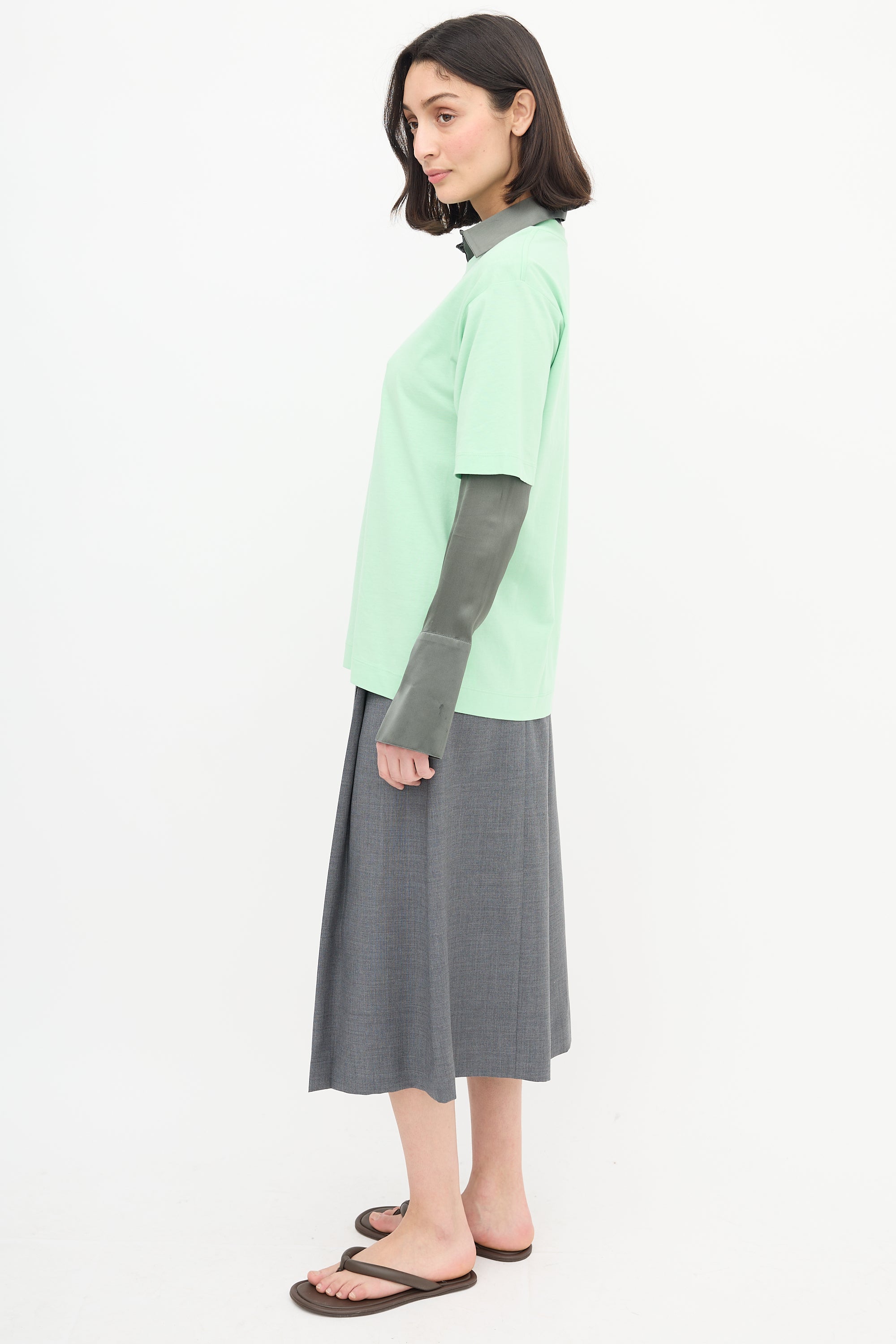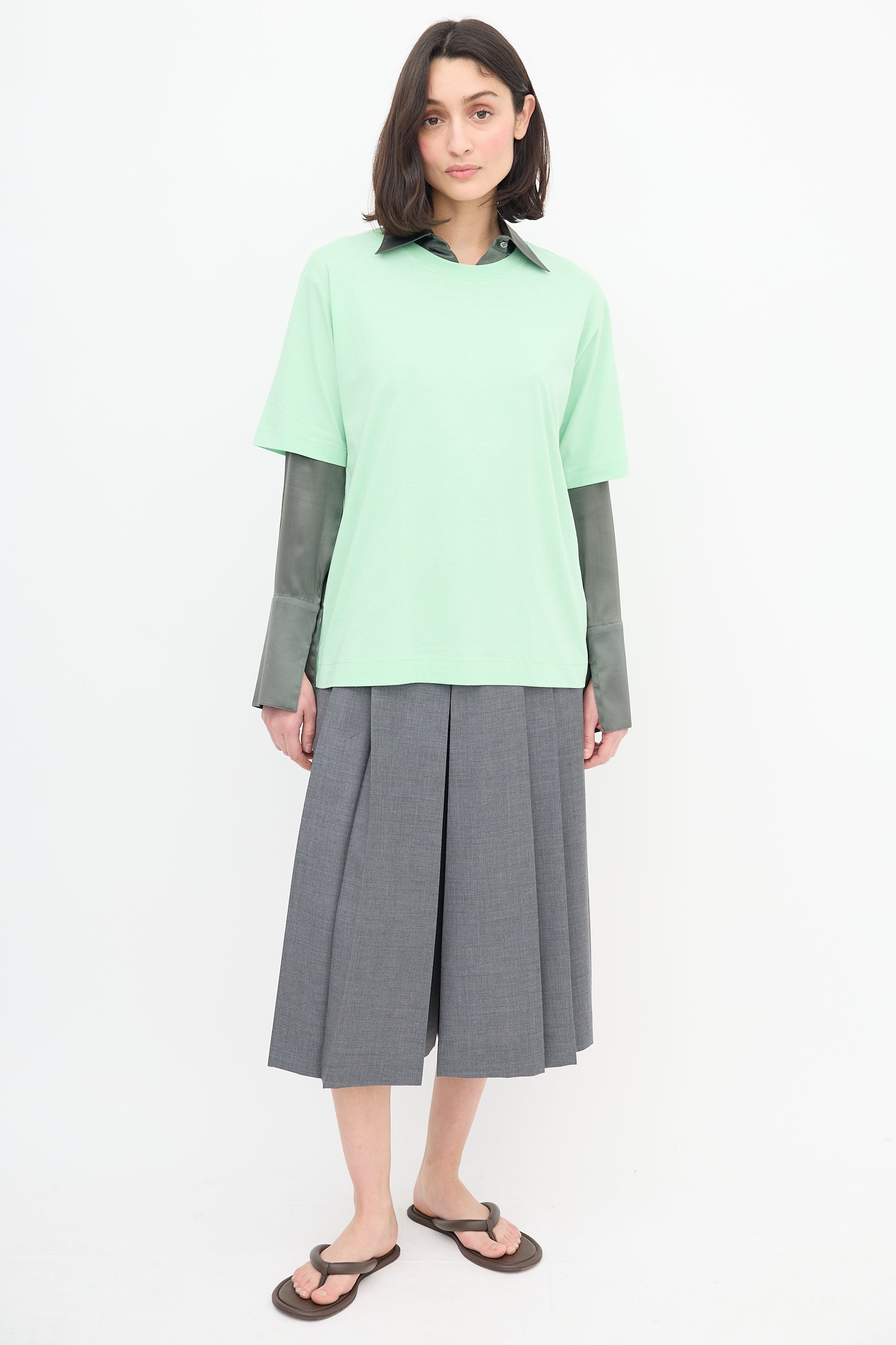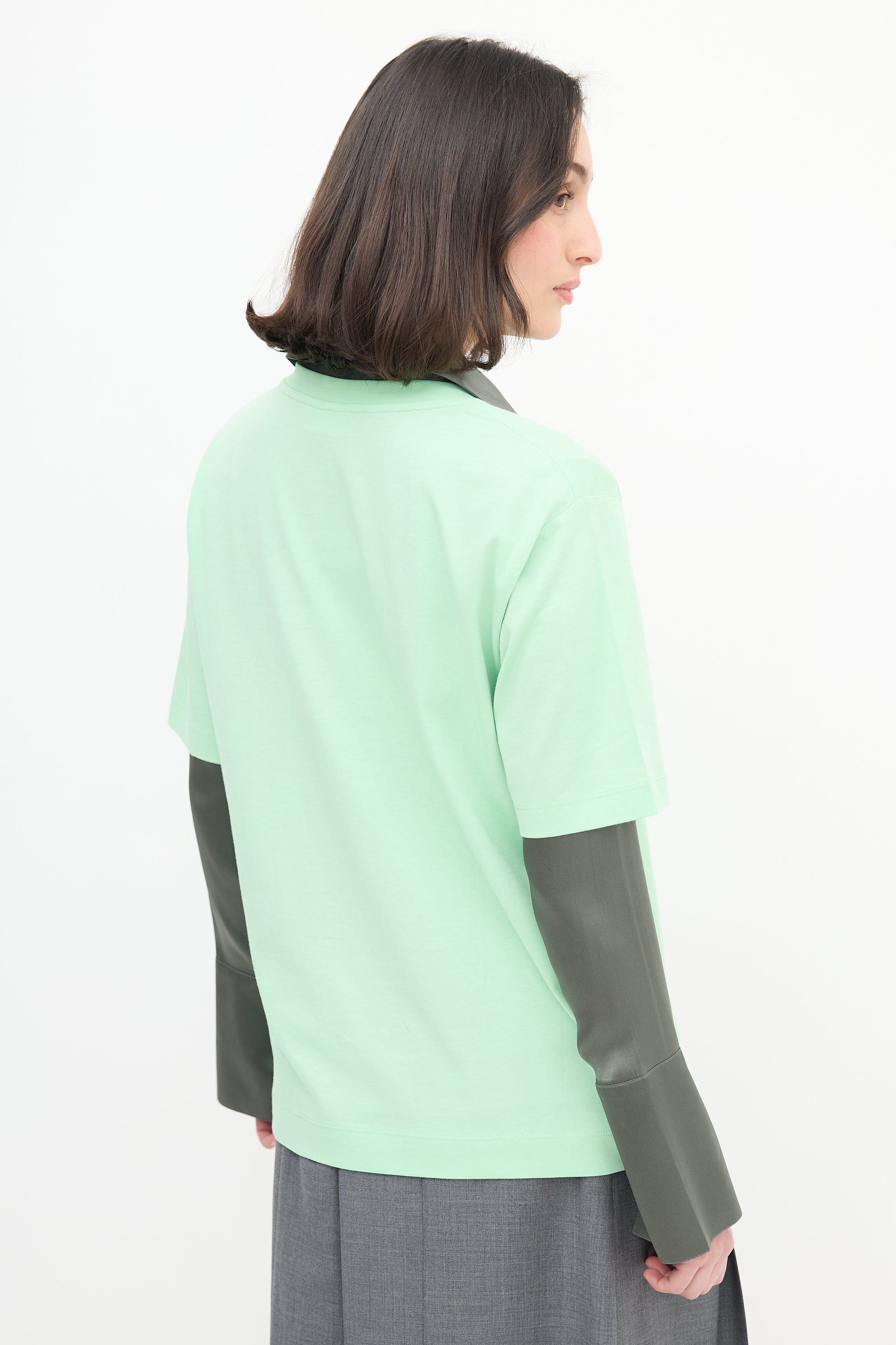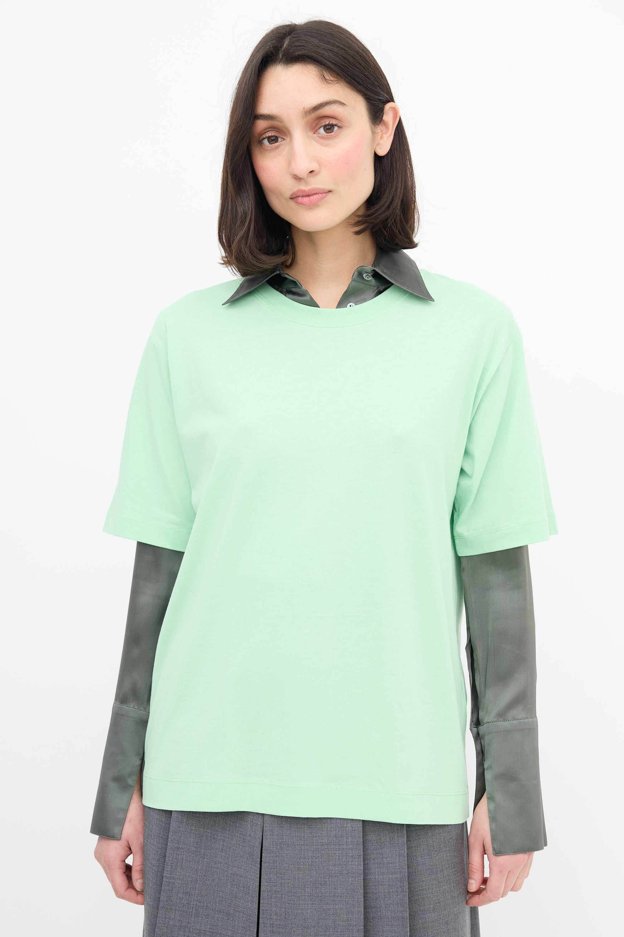 Pre-owned Dries Van Noten green T-shirt featuring a crew neckline and short sleeves. Styled with a shirt underneath.
